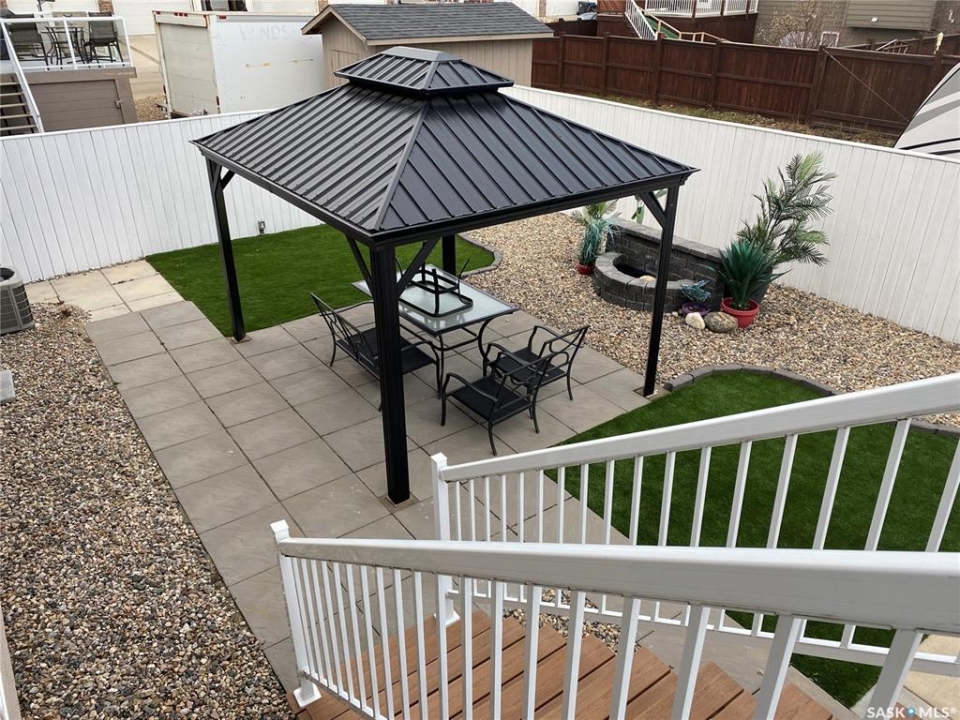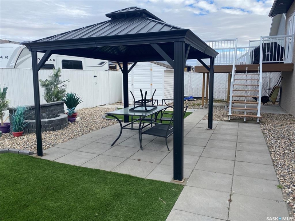 Welcome to this beautifully maintained, 1169sqft fully developed bungalow located at 404 Lyle Crescent in Warman. This home was custom-built by Warman homes with high-quality features like Stucco and stone exterior. Offering 4 bedrooms and 3 bathrooms, with 2 bedrooms up and 2 down, this home is perfect for downsizing or families looking for a move-in-ready property with thoughtful upgrades throughout. The spacious primary bedroom includes a 4-piece ensuite with an oversized soaker tub, creating a relaxing private retreat. The kitchen is both stylish and functional, featuring quartz countertops, a tile backsplash, and a pantry. The main floor boasts new luxury vinyl plank and tile flooring (2023), while the basement was completed with new carpet in 2023. Downstairs, you'll find a cozy family room, games area with wet bar, two additional bedrooms, a full bathroom, and a laundry/utility room—ideal for entertaining or everyday living. The exterior is designed for low maintenance and enjoyment, with a fully zeroscaped yard featuring artificial turf front and back. The backyard is an entertainer's dream with a Trex deck (2024), patio with gazebo (2024), natural gas BBQ hookup, and a stunning fountain with an illuminated waterfall feature. There is also massive RV parking off the alley, perfect for trailers or toys. The 26' x 22' detached garage is fully insulated, boarded, and heated with a 220V electric heater, and includes a subpanel, making it ideal for hobbyists or year-round use. Additional features include central air conditioning, central vacuum, Govee permanent exterior lighting with pot lights, and excellent curb appeal. This home shows exceptionally well and is ideally located close to schools, parks, and all amenities. A fantastic opportunity to own a beautifully upgraded bungalow in one of Warman's most desirable neighbourhoods.