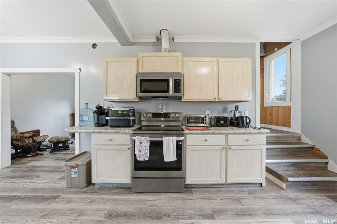 Welcome to 455 Andrew street located in Asquith. This one and a half story home is 1020 sqft with 3 spacious bedrooms & 2 full bathrooms. On the main floor you will find bright living room, newer open concept kitchen, dining room and 4pc bathroom. The basement has good size bedroom, living room, 4pc bathroom and kitchen has already been started for future suite. Backyard is fully fenced, firepit, garden area and deck. Triple detached garage with both front and rear access. Asquith has a K-12 school, smaller grocery store, other amenities and close to mines. It is a short 20 minute commute to Saskatoon
