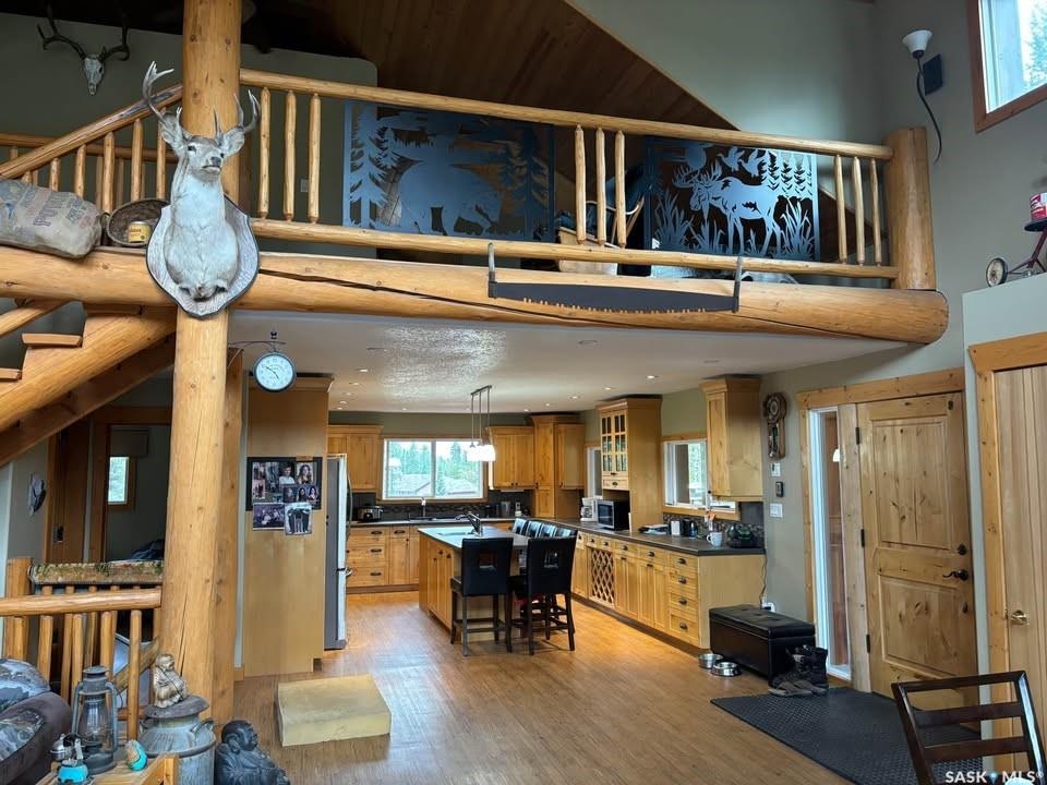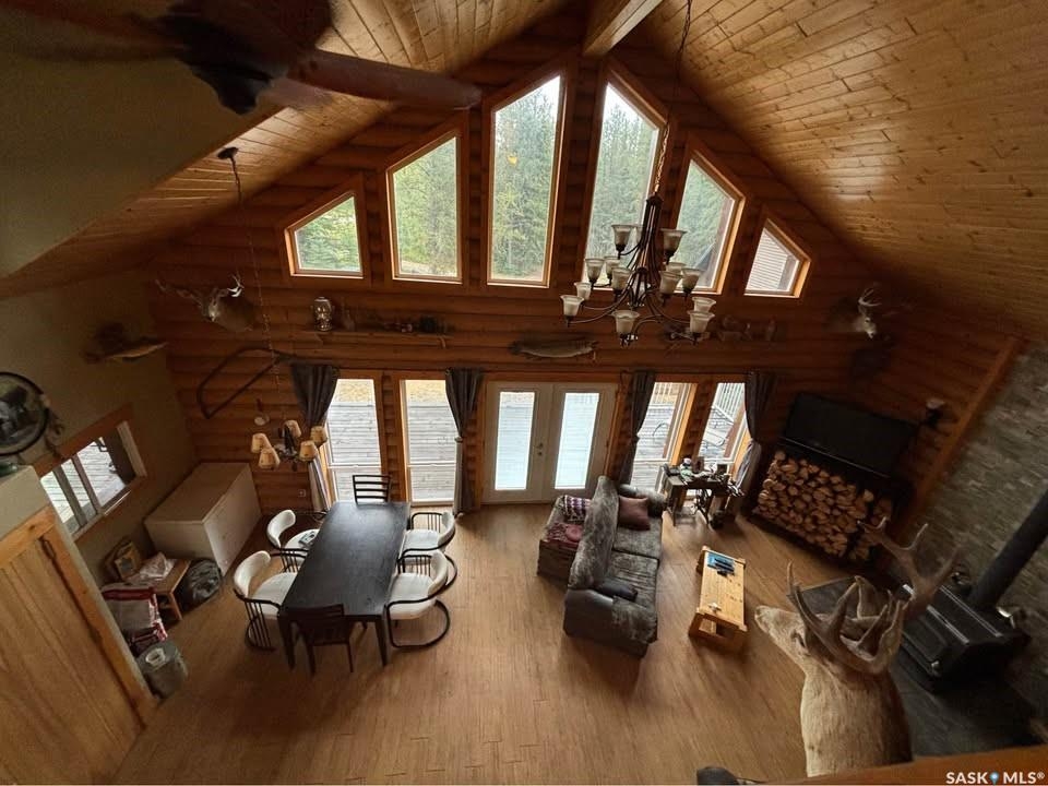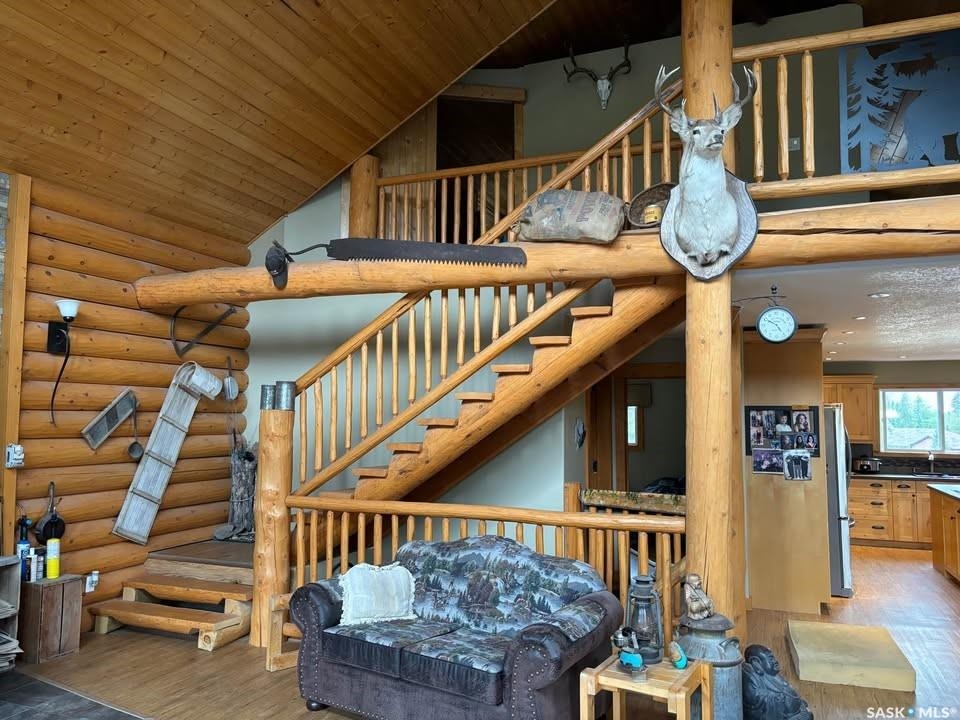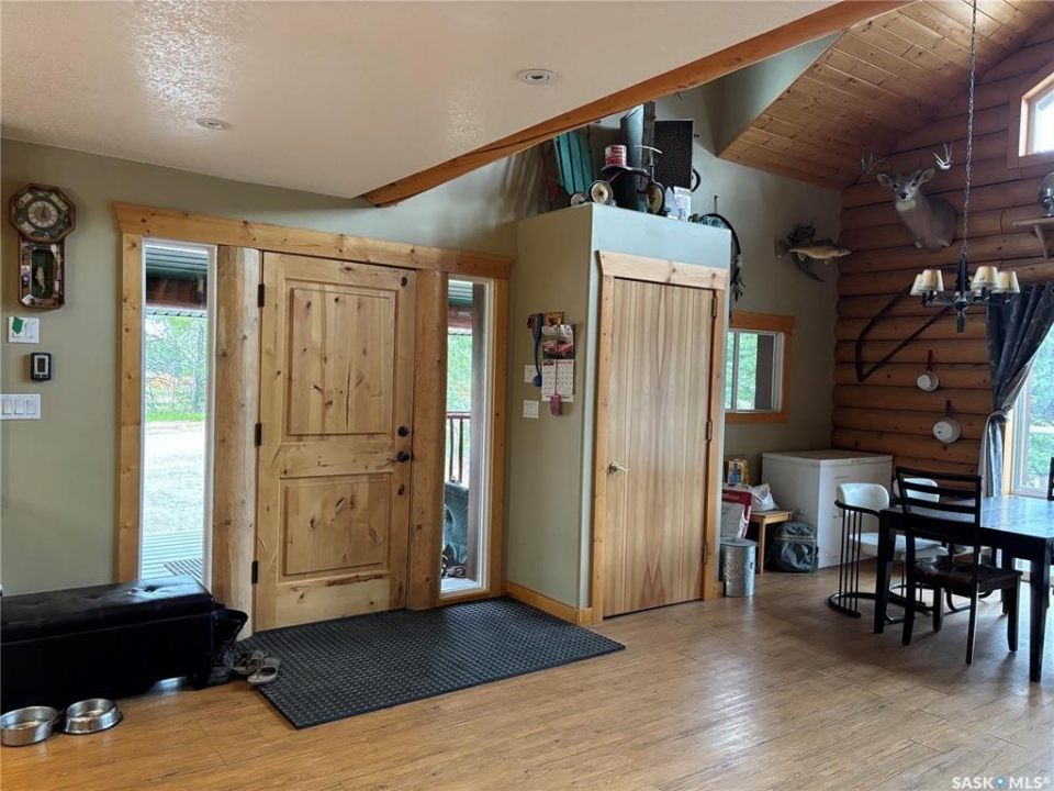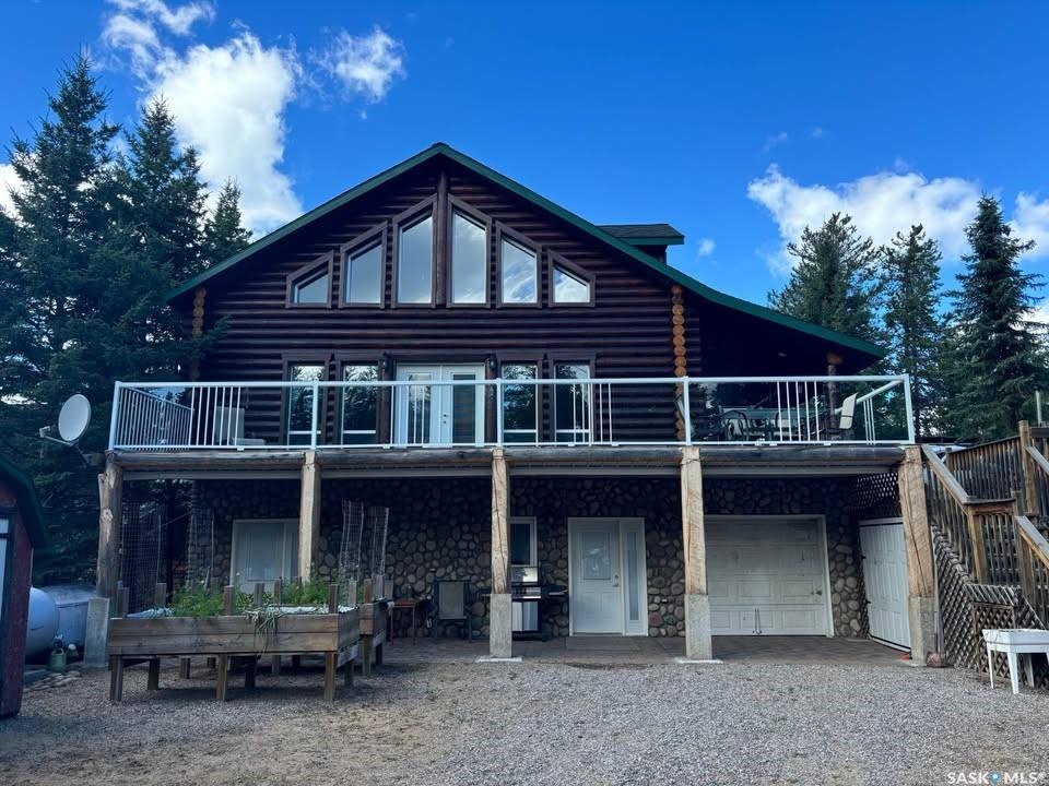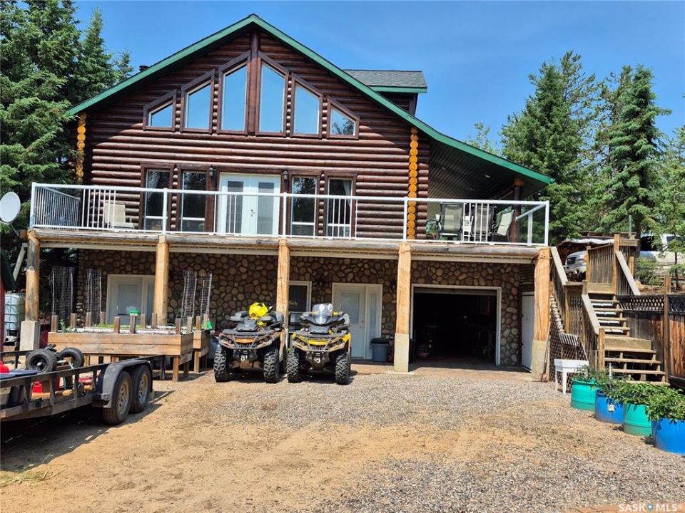 Charming Year-Round Retreat with Suite at Little Bear Lake Located on a quiet cul-de-sac and backing onto government land, this 1,974 sq ft home with a 900 sq ft walkout basement suite offers the perfect combination of relaxation, recreation, and income potential. Ideal for year-round living or vacation use, the self-contained lower suite is perfect for short-term rentals during peak summer and winter seasons. The property includes a 25' x 25' leased storage lot with two sheds (application and fee required), ideal for ATVs, sleds, and gear. The home features a spacious open-concept layout with a bright living room, dining area, and a large kitchen with island and gas stove. A full eastern wall of windows provides peaceful backyard views and natural light. The main level also includes a bedroom with two double beds and a 3-piece bathroom. Upstairs, the primary retreat boasts a 5-piece ensuite, walk-in closet, and loft-style views over the main floor and yard. The walkout basement suite includes its own kitchen, laundry, two large bedrooms, and space to sleep up to eight—perfect for guests or renters. Additional / other features include : in-floor heating, a wood-burning stove, a newer boiler system, reverse osmosis, a 24 ft sand point well, an 11' x 40' attached garage, extra parking near the walkout, durable log-and-stone siding, 280 gal water holding tank hooked up to a sand point well, 1000 gal septic holding tank, 3 storage sheds in back yard, additional off site storage lot ( needs to be applied for and is a small fee associated with it) - Owner is willing to leave property fully furnished except for his personal belongings and antiques. Little Bear Lake is one of the few Saskatchewan spots where you can ride your ATV directly from your property to the trails. Properties here are rarely available—this is a rare chance to own in a sought-after location.--