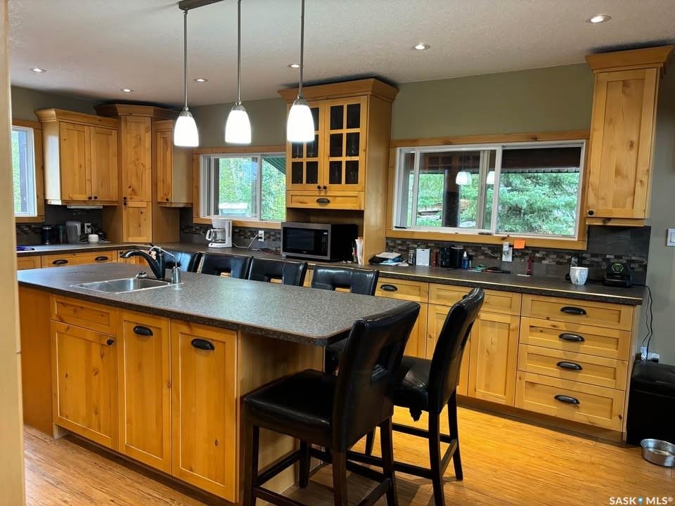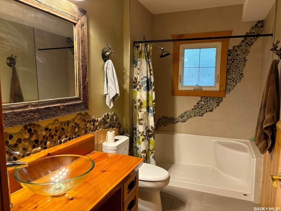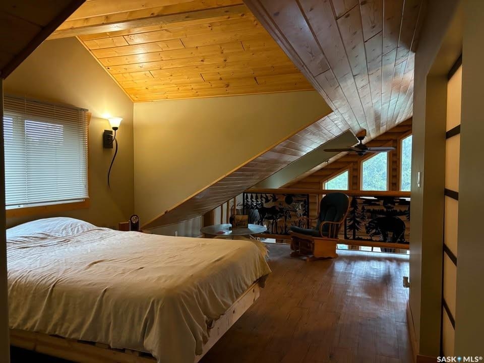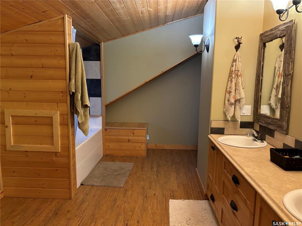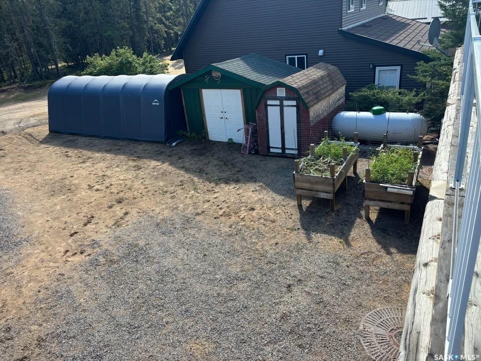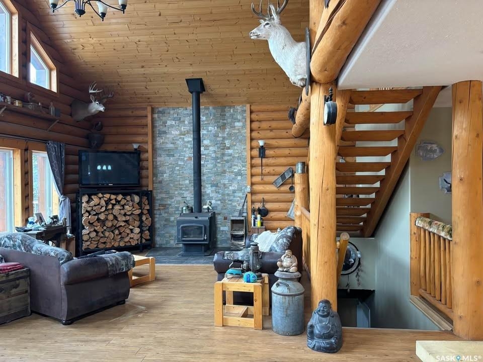 Charming Year-Round Retreat with Suite at Little Bear Lake Located on a quiet cul-de-sac and backing onto government land, this 1,974 sq ft home with a 900 sq ft walkout basement suite offers the perfect combination of relaxation, recreation, and income potential. Ideal for year-round living or vacation use, the self-contained lower suite is perfect for short-term rentals during peak summer and winter seasons. The property includes a 25' x 25' leased storage lot with two sheds (application and fee required), ideal for ATVs, sleds, and gear. The home features a spacious open-concept layout with a bright living room, dining area, and a large kitchen with island and gas stove. A full eastern wall of windows provides peaceful backyard views and natural light. The main level also includes a bedroom with two double beds and a 3-piece bathroom. Upstairs, the primary retreat boasts a 5-piece ensuite, walk-in closet, and loft-style views over the main floor and yard. The walkout basement suite includes its own kitchen, laundry, two large bedrooms, and space to sleep up to eight—perfect for guests or renters. Additional / other features include : in-floor heating, a wood-burning stove, a newer boiler system, reverse osmosis, a 24 ft sand point well, an 11' x 40' attached garage, extra parking near the walkout, durable log-and-stone siding, 280 gal water holding tank hooked up to a sand point well, 1000 gal septic holding tank, 3 storage sheds in back yard, additional off site storage lot ( needs to be applied for and is a small fee associated with it) - Owner is willing to leave property fully furnished except for his personal belongings and antiques. Little Bear Lake is one of the few Saskatchewan spots where you can ride your ATV directly from your property to the trails. Properties here are rarely available—this is a rare chance to own in a sought-after location.--