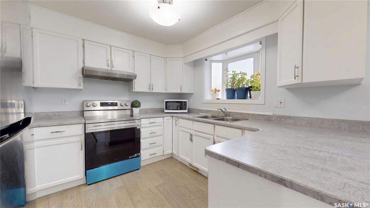 Welcome home to this beautifully updated 1,070 sq. ft. bungalow in desirable Lakewood! Offering 5 bedrooms and a double detached garage, this move-in-ready home provides space, comfort, and thoughtful updates throughout. The exterior has undergone excellent upgrades, including new stucco, a concrete driveway, and doors (2021), which have given the home fantastic curb appeal. Step inside to a bright, spacious living room where beautiful hardwood floors flow seamlessly into the dining area and kitchen, creating an ideal layout for both everyday living and entertaining. The updated kitchen features modern appliances, new countertops, and a convenient pantry for extra storage. From the dining room, French doors lead to your deck and a generous backyard perfect for summer BBQs. Down the hall, you'll find three well-sized bedrooms, including a primary bedroom with its own 2-piece ensuite. The main bathroom has also been recently renovated, adding a fresh, modern touch. The fully developed basement (remodelled in 2005) provides additional living space, including a large family room, two additional bedrooms, a 3-piece bathroom, and a laundry room with ample storage. Additional updates include new windows, shingles (2015), air conditioning (2015), and a furnace (2022), providing peace of mind for years to come. This is a fantastic, updated home in a great neighbourhood, ready for the next family to call it home.
