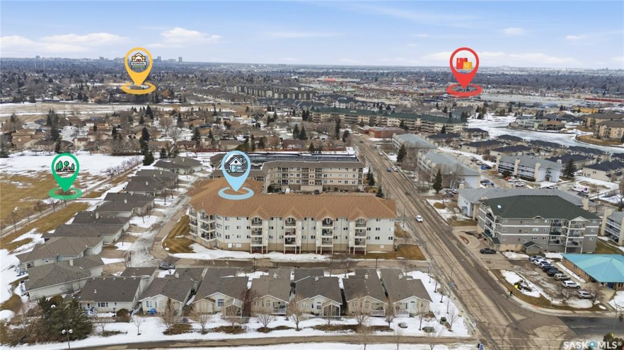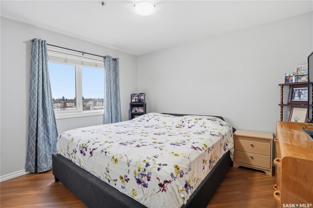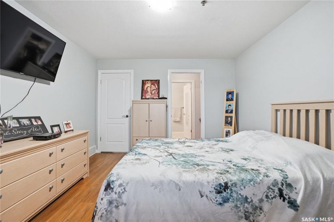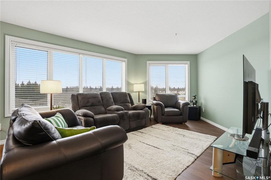 Schools, recreation, leisure and services surround Meadow Park Place in Regina's east end. If you're looking for a secure, well-cared-for home that offers a lifestyle of ease, this 3rd-floor condo is a must-see. It's open-concept, move-in ready, and designed for comfortable living. The modern kitchen is a standout, featuring plenty of counter and cupboard space, updated appliances, a built-in pantry, and a large sit-up island. The living and dining areas flow seamlessly with modern flooring, leading out to a covered, southeast facing balcony through a garden door. In the primary bedroom, you'll find a convenient walk-through closet leading to a 3-piece ensuite with a sit-down shower. The unit also includes a second good-sized bedroom, a 4-piece main bathroom, and a laundry/storage room. You'll love the convenience of your own parking stall in the underground parking garage. The building offers a common room with a kitchen, pool table, and shuffleboard that is rentable for gatherings. Condo Fees include common area insurance, maintenance, garbage, lawn care, snow removal, water, sewer, and reserve fund. This might be the right home for you, call your agent today to view.