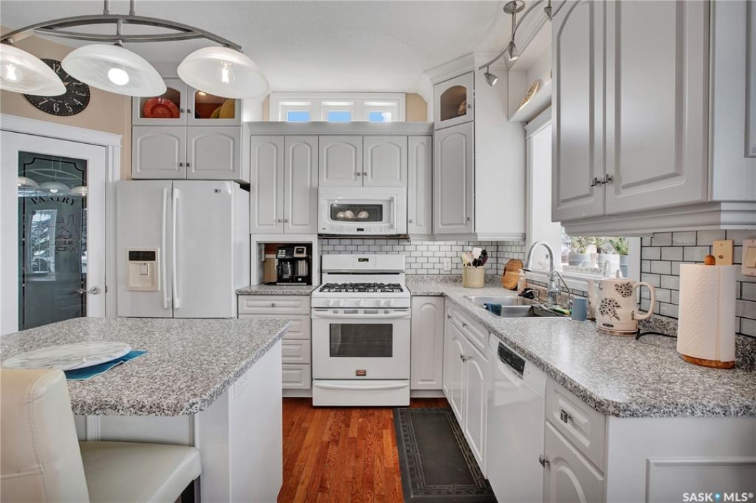 Welcome to this impressive 1,500-square-foot bungalow in Rosthern, thoughtfully designed for comfort, function, and style. This walkout home offers an elevated living experience with exceptional flow and natural light throughout. The main floor features two spacious bedrooms plus a dedicated office that easily adapts to your needs. A refined gas fireplace anchors the living area, creating warmth and atmosphere without overpowering the space. The well-appointed kitchen includes a gas stove, generous storage, and seamless connection to the dining area. Main-floor laundry adds everyday convenience and practicality to the layout. The attached 26x26 garage provides ample space for vehicles, storage, and hobbies. Downstairs, the walkout basement expands your living options with two additional bedrooms. A separate craft room offers flexibility for creative projects, work, or extra storage. The large family room is ideal for relaxing, entertaining, or accommodating guests. Step out to a beautifully treed and landscaped yard that feels both private and inviting. A dedicated firepit area enhances outdoor living and evening enjoyment. The covered west-facing deck backs onto wide-open spaces, delivering stunning prairie sunsets and peaceful views. Recent upgrades include a new boiler and air exchanger within the last year, ensuring efficiency and peace of mind. Located in a diverse and growing community, Rosthern offers a new composite school, 18-hole golf course, upgraded arena, swimming pool, vibrant downtown, and a new hospital in development, along with twin highway access to Saskatoon and Prince Albert.