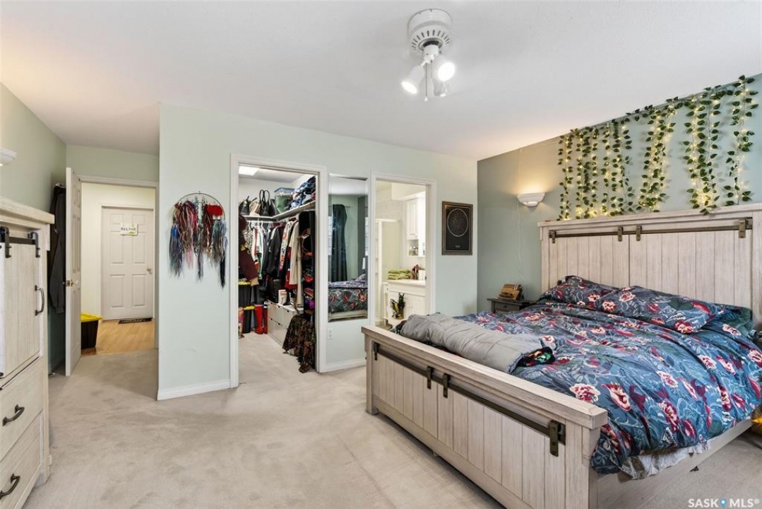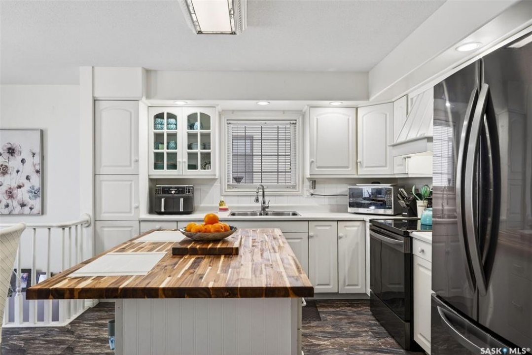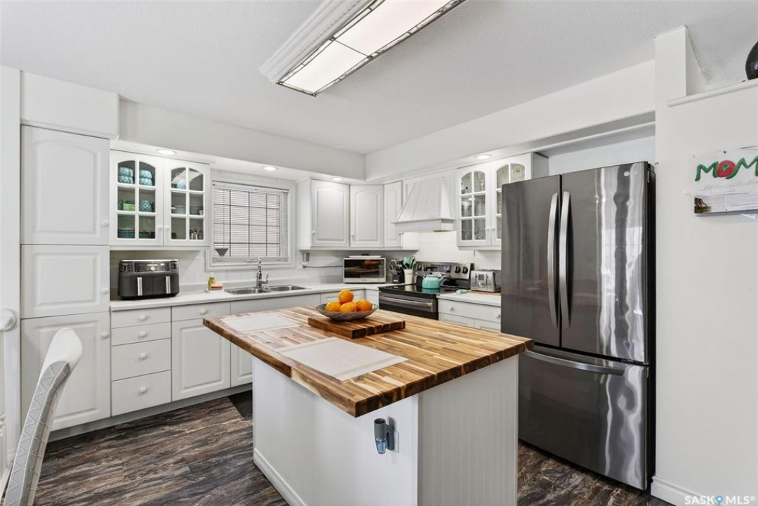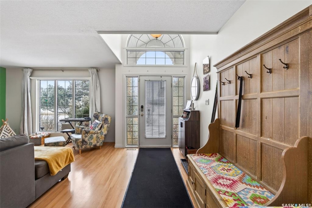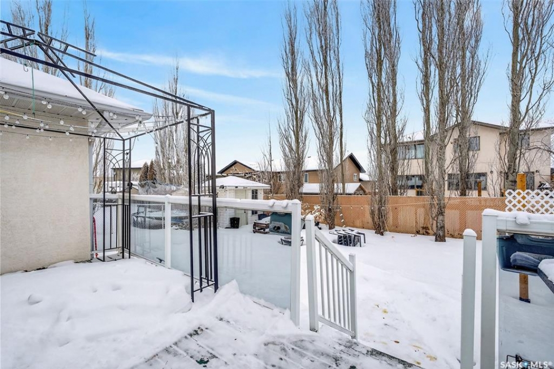 Exceptional family home in Crescent Acres offering 4 bedrooms, 3 bathrooms and a fantastic location. With charming curb appeal highlighted by a grand arched front entry and mature landscaping, this home makes a lasting first impression from the moment you arrive. Step inside to a spacious foyer that opens into a bright south facing living room filled with natural light and anchored by a cozy gas fireplace. The eat-in kitchen is both stylish and functional and features a large island with a butcher block counter top, crisp white cabinetry, white tile backsplash, stainless steel appliances and patio doors leading directly to the back deck. A generous primary bedroom complete with a walk-in closet and 3 piece ensuite, two additional spacious bedrooms and convenient main floor laundry complete the main floor. The fully developed lower level expands your living space with a large family room, an additional bedroom, a versatile den ideal for a home office or gym, a 3 piece bathroom and a utility room with a substantial crawl space providing excellent storage options. Additional features include central air conditioning, central vacuum and a double attached insulated garage. The fully fenced and beautifully landscaped yard features mature trees and shrubs, along with a large deck finished with metal railings and tempered glass. Ideally located across the street from the Rotary Trail, Crescent Acres Park, St. Francis School and Vickers School, this exceptional home offers space, functionality and a prime location. Schedule a viewing today!
