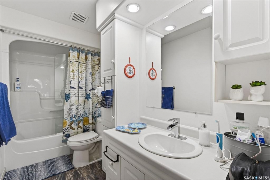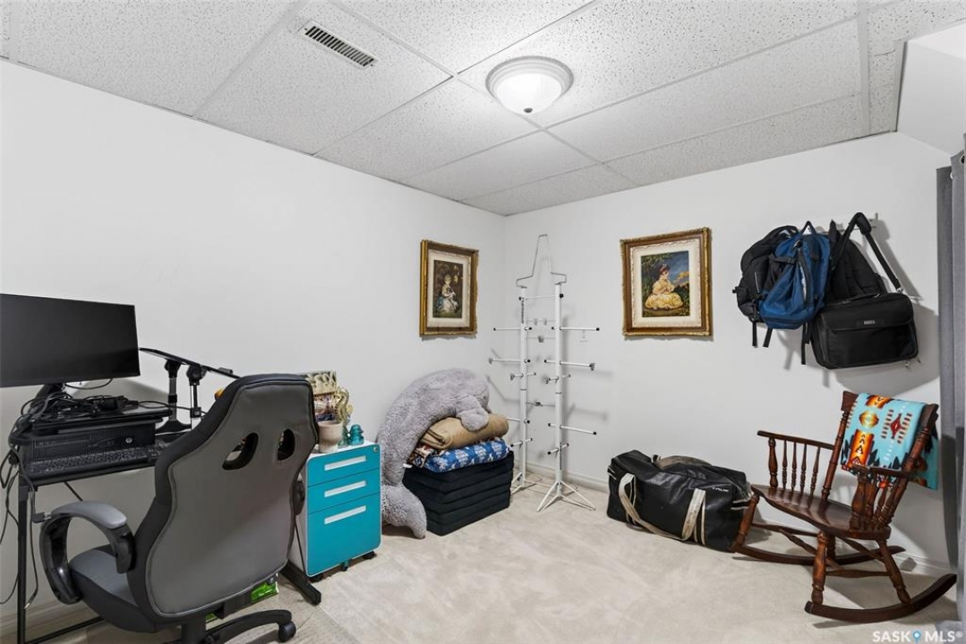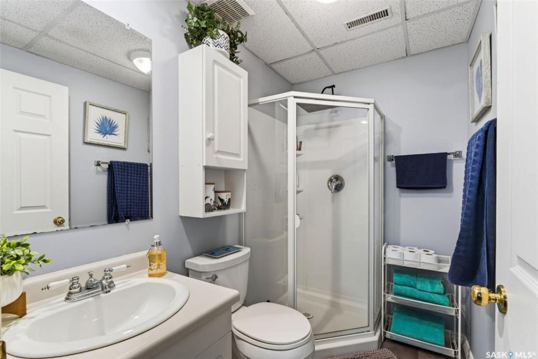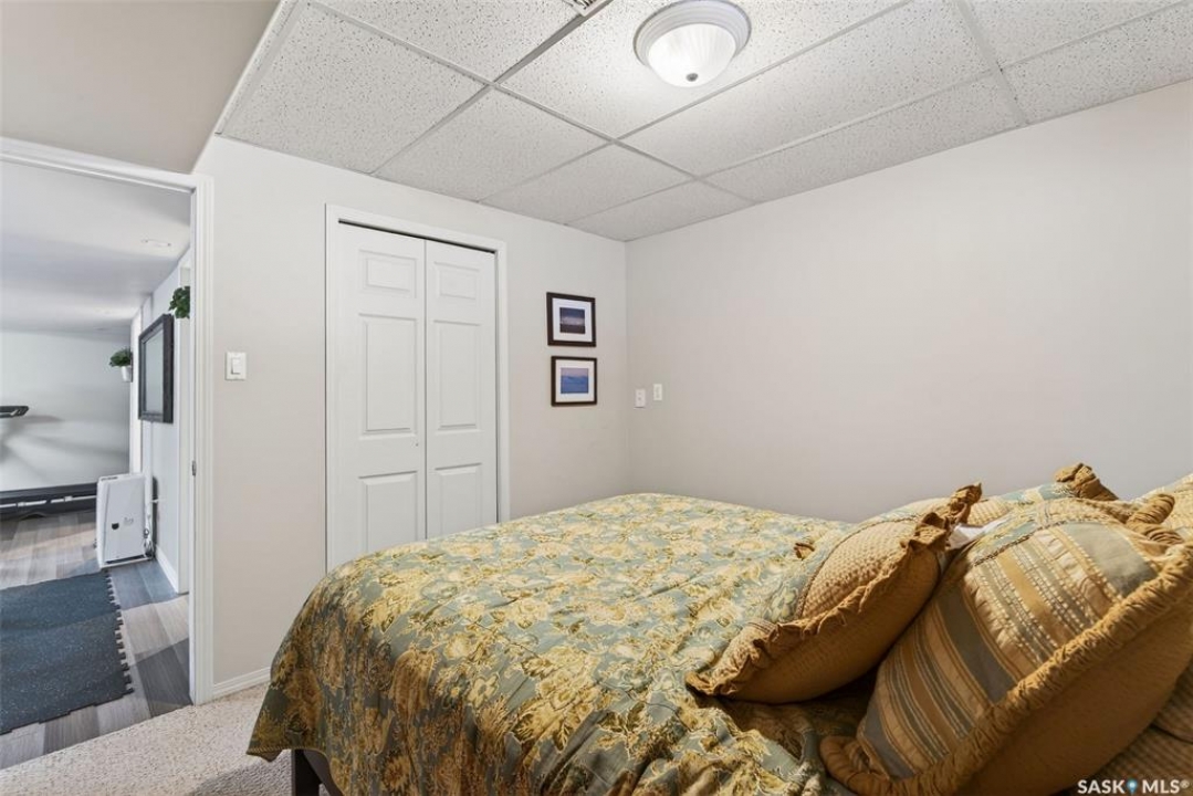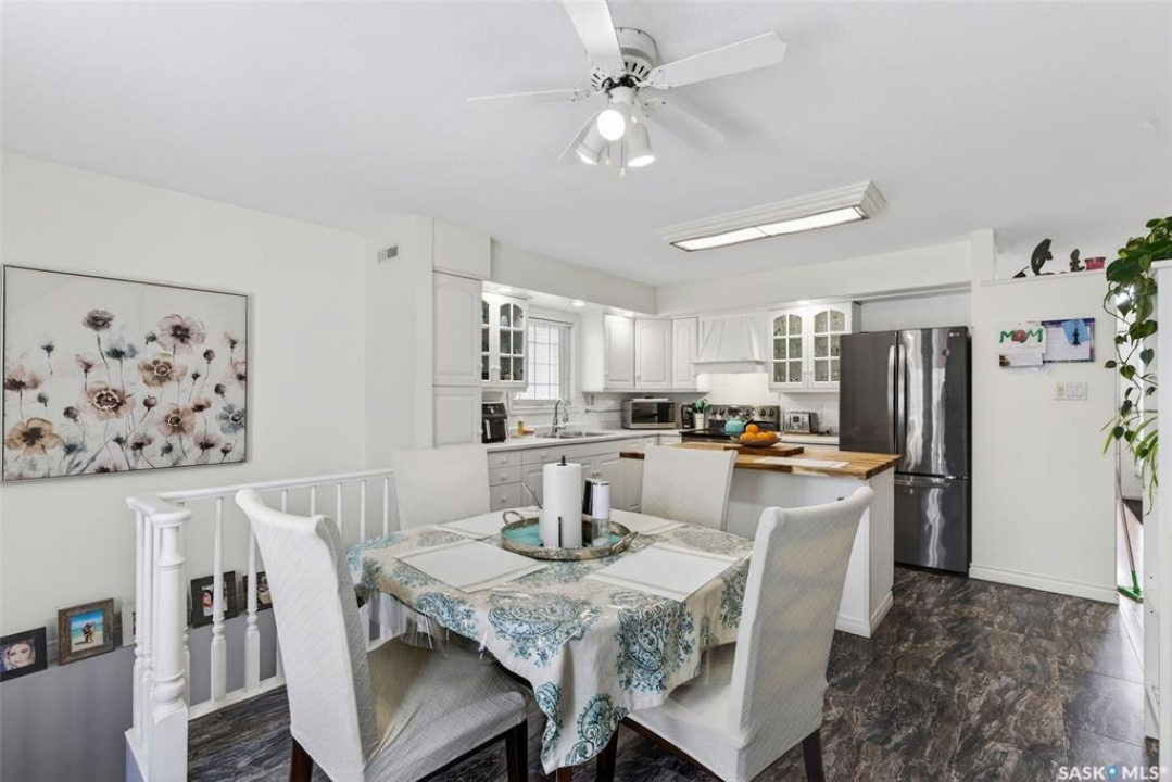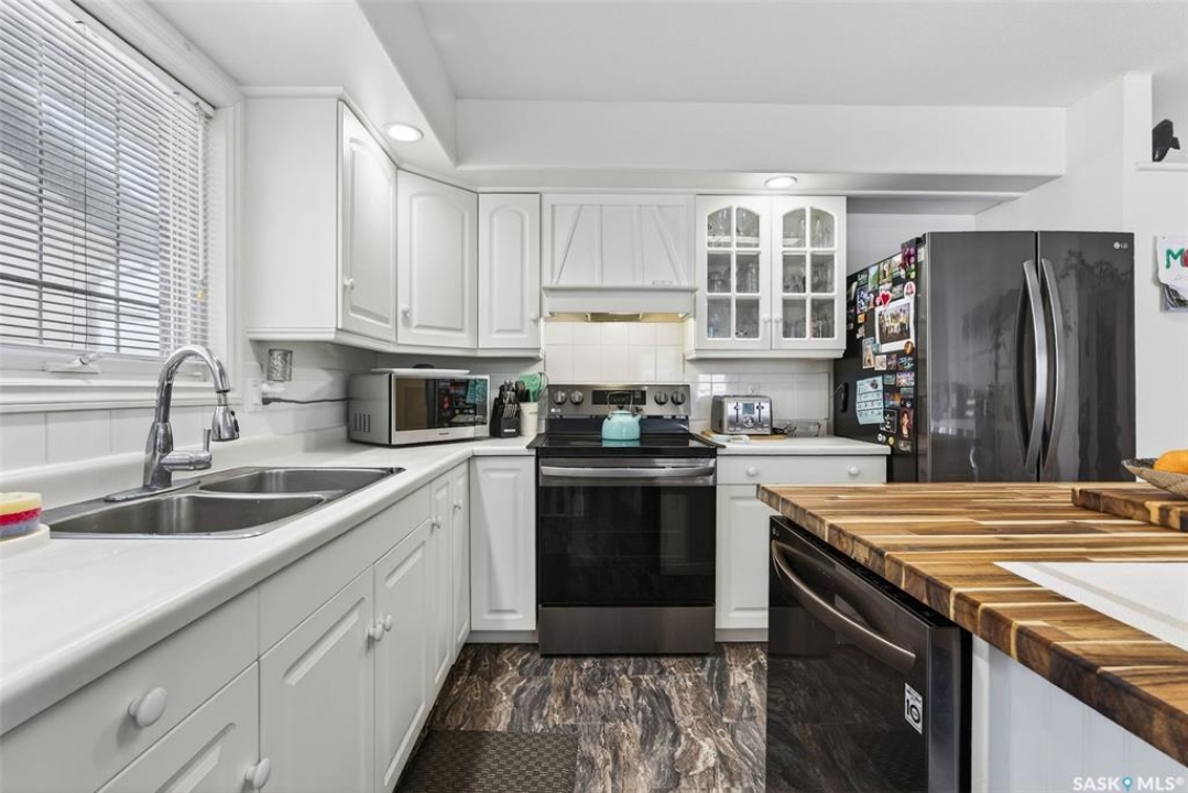 Exceptional family home in Crescent Acres offering 4 bedrooms, 3 bathrooms and a fantastic location. With charming curb appeal highlighted by a grand arched front entry and mature landscaping, this home makes a lasting first impression from the moment you arrive. Step inside to a spacious foyer that opens into a bright south facing living room filled with natural light and anchored by a cozy gas fireplace. The eat-in kitchen is both stylish and functional and features a large island with a butcher block counter top, crisp white cabinetry, white tile backsplash, stainless steel appliances and patio doors leading directly to the back deck. A generous primary bedroom complete with a walk-in closet and 3 piece ensuite, two additional spacious bedrooms and convenient main floor laundry complete the main floor. The fully developed lower level expands your living space with a large family room, an additional bedroom, a versatile den ideal for a home office or gym, a 3 piece bathroom and a utility room with a substantial crawl space providing excellent storage options. Additional features include central air conditioning, central vacuum and a double attached insulated garage. The fully fenced and beautifully landscaped yard features mature trees and shrubs, along with a large deck finished with metal railings and tempered glass. Ideally located across the street from the Rotary Trail, Crescent Acres Park, St. Francis School and Vickers School, this exceptional home offers space, functionality and a prime location. Schedule a viewing today!