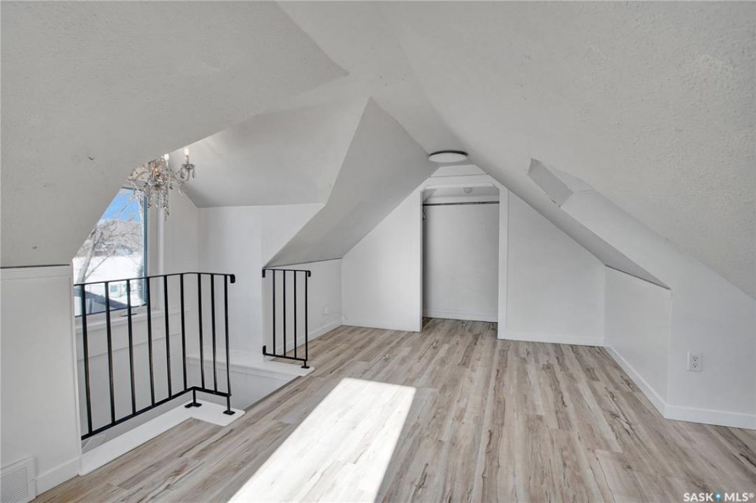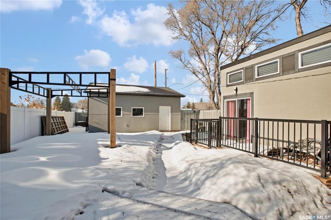 Wow — check out this extensively renovated, move-in-ready home in Hudson Bay Park. There is truly nothing left to do here but move in & enjoy. Set on a corner lot backing a park & dog park, this property offers privacy, functionality, & a level of finish that's hard to come by. Your huge dream kitchen awaits, designed for both everyday living & entertaining. It features designer cabinetry w full ceiling-height uppers, tile backsplash, built-in pantry, high-end appliances, & tons of counter space. The eat-up island flows into a spacious dining or lounging area, ideal for hosting family & friends. This approx. 900 sq. ft. 1.5-storey, 2 bedroom, 1 bath home is incredibly unique & tastefully updated throughout. Upstairs is a loft-style primary bedroom filled w natural light. The main floor also offers a second bedroom w large closet & custom built-in shelving. The renovated 4-pce bath features a granite countertop & 12x24 tile tub surround. Downstairs you'll find a great family or theatre space plus a dedicated laundry area. The home is set up for summer entertaining w patio doors leading to a large composite side deck & pergola. Man-cavers & mechanics will love the 24x24 heated garage w 10' ceilings. An additional heated flex building adds even more versatility — ideal as a home office, studio, or nail/salon space w vaulted ceilings & its own private deck. Extensive upgrades over the last 3-8 years include: 2” foam acrylic stucco, air conditioning, shingles, new garage, full kitchen reno w Superior Cabinets, updated electrical, insulation, drywall, plumbing & flooring on main level, renovated bathroom w Superior Cabinets, vinyl fencing, new driveway, heated flex building, composite deck, & newer doors & windows (excluding front bay window). You won't find many homes offering this level of quality & extensive renovations at this price point. Located close to parks, schools, & everyday amenities, this is a fantastic turn-key opportunity in an established neighbourhood.