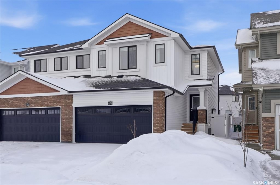 Welcome to this stunning, turn-key 1,489 sq. ft. semi-detached home offering luxury living in the heart of Brighton. Thoughtfully designed with both style and functionality in mind, the main floor features a sleek, practical kitchen complete with quartz countertops, walk-through pantry, and stainless steel appliances. The open-concept living room is perfect for entertaining, highlighted by a beautiful fireplace, along with a convenient 2-piece powder room. Upstairs, you'll find three spacious bedrooms, including a primary suite with a walk-in closet, two full bathrooms, a second-floor laundry room with additional storage, and a versatile bonus/flex room. Oversized windows throughout the home flood the space with an abundance of natural light. Additional features include central air conditioning, washer and dryer, and a front double attached garage, partially insulated. The property is fully landscaped with a fenced backyard, rear deck, and a double concrete driveway. Best of all—no condo fees! This gorgeous home truly has it all: quality craftsmanship, modern style, and a flawless layout. Located in Brighton—Saskatoon's fastest-growing neighbourhood—you'll enjoy close proximity to fantastic amenities including restaurants, convenience stores, Landmark Cinemas, Wilson's Greenhouse, Stoked Kitchen & Bar, Motion Fitness, Save-On-Foods, Shoppers Drug Mart, and more.