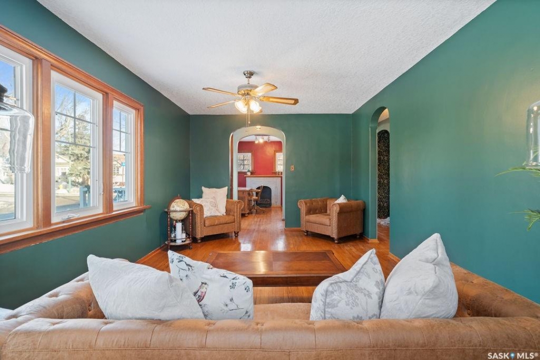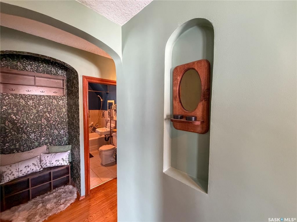 Located in the heart of Cathedral Village, this charming character home is just steps from the Devononian Pathway, as well as the local shops, cafés, and restaurants that make the neighbourhood so special—not to mention nearby schools and the Neil Balkwill Art Centre. Situated on a large corner lot, with only one neighbouring property backing the yard, this home offers rare space and privacy. The generous yard creates a true urban oasis, making it easy to forget you're in the city at all. From the moment you arrive, the fresh exterior paint and new front porch set the tone for the character found throughout the home. Inside, you're welcomed by original charm paired with thoughtful updates, including a fresh coat of paint in all above-grade rooms. The main floor features a versatile den with a decorative fireplace—ideal as a home office or dining room—along with a spacious living room perfect for hosting and entertaining. You'll also find a main-floor primary bedroom and a beautifully updated bathroom that retains its classic character, highlighted by eye-catching ceiling details. At the end of the hallway, a cozy nook provides a convenient space for coats, along with a bench for sitting down to remove and store your shoes. Upstairs, a hidden storage area currently used as a reading nook adds even more personality to the home, alongside two generously sized bedrooms. The kitchen remains true to the home's original charm and is complemented by a brand-new refrigerator that fits the aesthetic perfectly. The finished basement offers a large recreation room ready for your personal touch and the home is equipped with air conditioning for comfort during the summer months. Outside, you'll find a single detached garage with two additional parking spaces on either side. With the size of the yard, there is excellent potential to add an oversized double garage. Altogether, this is the perfect home for anyone who appreciates Cathedral Village charm and an unbeatable location.