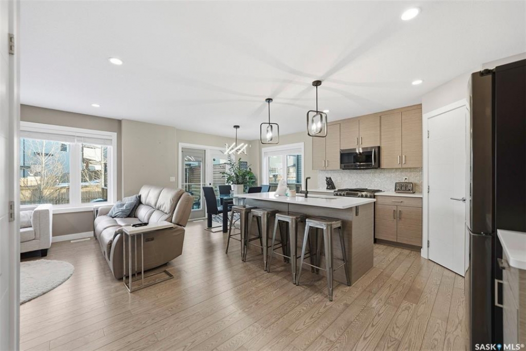Welcome to this beautifully maintained two-storey home in the highly desirable neighbourhood of Brighton. Built in 2017, this fully developed and landscaped property offers 4 bedrooms, 4 bathrooms, and 1,472 sq.ft. of thoughtfully designed living space—perfect for families or those who love to entertain. The main floor features a bright, open layout with a modern kitchen complete with all appliances included, central air conditioning, and central vacuum for added comfort and convenience. There is a separate side door entry also adds flexibility and future potential. Upstairs, enjoy the convenience of second-floor laundry with a stackable washer and dryer included. The primary bedroom features a 4pc en-suite bathroom and walk-in closet. The fully developed basement expands your living space with a cozy family room, wet bar area, an additional bedroom, and a full bathroom—ideal for guests or a private retreat. Outside, the backyard is fully fenced and landscaped, featuring a two-tiered deck and lush lawn—perfect for summer evenings. The front yard offers zero maintenance living with durable rubber mulch and no grass to cut. Parking is a breeze with a concrete double driveway and a 22' x 22.6' double attached garage that is fully insulated and heated. This home is conveniently located close to numerous commercial amenities, shops, and services as well. This move-in-ready home checks all the boxes for comfort, convenience, and modern living!! Contact your Realtor today to set up your own private showing!