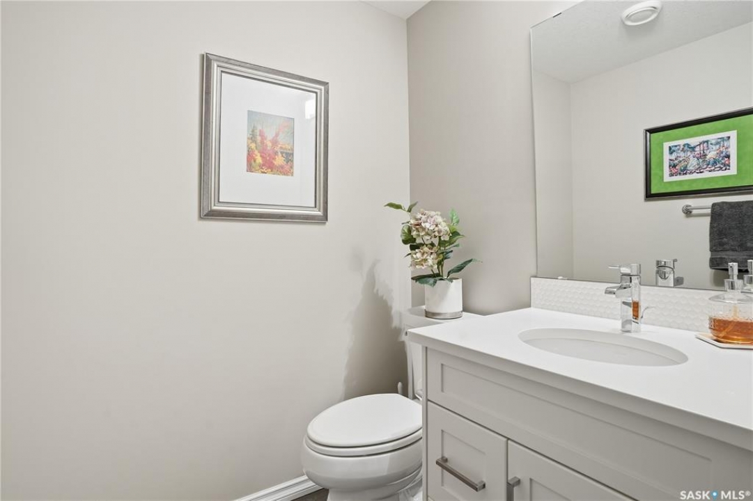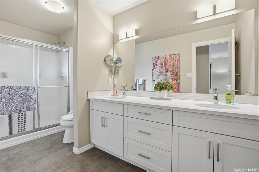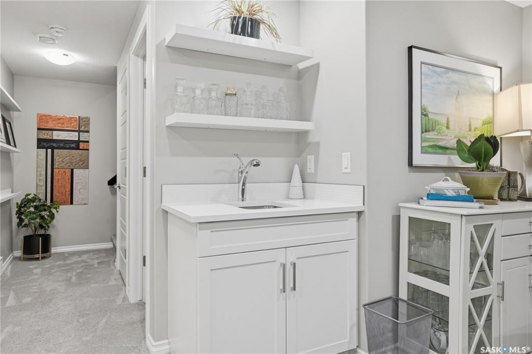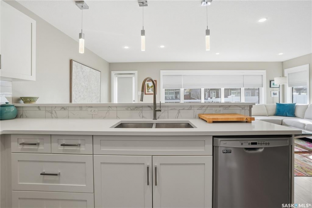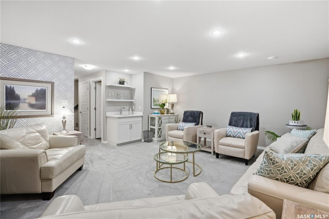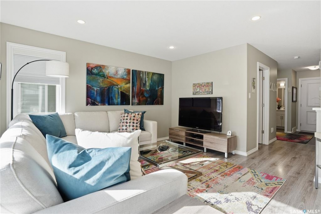 Welcome to 341-4000 Sandhill Cr. in the desirable & highly sought after Creeks neighborhood. This beautifully maintained townhouse features 1530 sq ft, was built in 2017, & it feels brand new & truly looks like a show suite. Immaculate throughout & an elegant entry welcomes you to this move-in-ready condo that has been meticulously cared for by original owners. Just off the entry, is a conveniently located 2 pc powder room, & large entry closet. The main level showcases a bright & inviting open-concept layout encompassing the kitchen, living, & dining area, complemented by stylish vinyl plank flooring throughout. The east-facing windows allow light to naturally illuminate the entire space. The dream kitchen with plenty of soft-close cabinets is complimented by an amazing walk-in pantry & is thoughtfully designed with crisp white cabinetry, quartz counters, undermount sink, gas range, SS appliances, & an eat-up bar easily allows for 4 bar stools. Direct access to a dbl att. garage is perfectly positioned & completes this level. Upstairs, 3 bedrooms, 2 bathrooms, & laundry room are all very generous in size. A primary suite easily accommodates a king-sized bed, features a walk-in closet with custom shelving, & 3pc ensuite w' dual sinks & quartz vanity. A spacious 2nd floor laundry adds to the home's practicality. A professionally developed basement offers a distinguished retreat perfect for relaxing & entertaining in a spacious rec room complete with a stylish wet bar, & 2 pc bath. Utility & storage rooms are impressive in size ( freezer incl). East facing backyard is fenced, with a patio, turf, & natural gas BBQ will stay. Note: Custom blinds & drapery, updated lights/fans, shelving & custom storage in garage are incl. Upgraded LED lighting enhances the contemporary elegance. Ideally located with easy access to amenities, Arcola Ave, & Regina Bypass, this stunning condo offers high levels of comfort & luxury in a premier setting. A must see in a quiet condo complex.