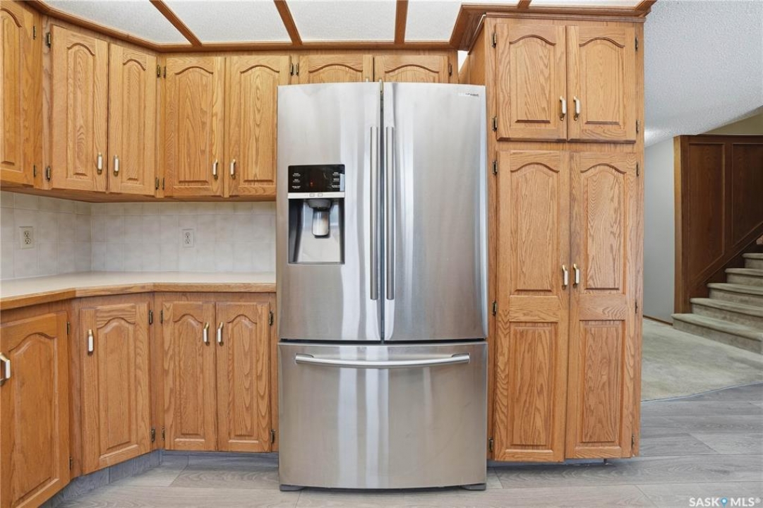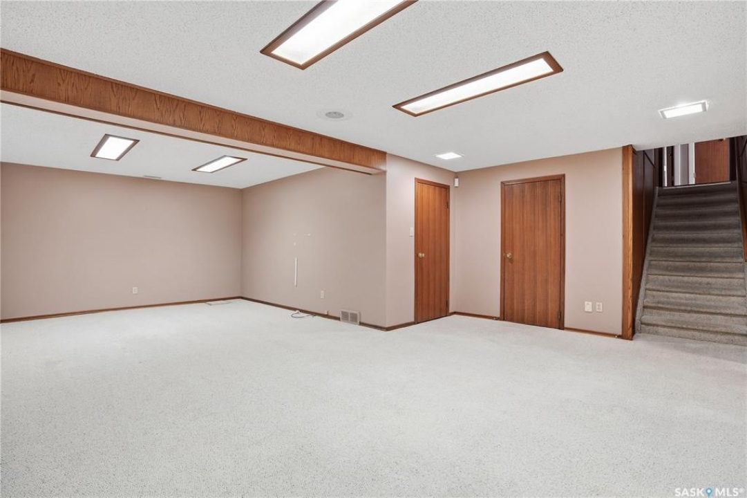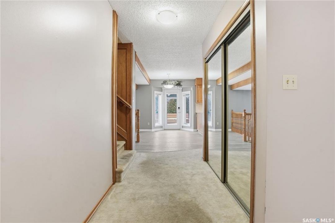 Have you been searching for a park-backing home in the desirable Varsity Park neighbourhood, just steps from Hawrylak Elementary School and scenic walking paths? Offering 2,260 sq. ft. of living space, this two-storey split features an incredible layout and the opportunity to transform it into the home of your dreams. The home welcomes you with excellent curb appeal and a spacious front entrance that opens to a bright formal living room and adjoining formal dining area. The U-shaped oak kitchen offers a pantry and a window overlooking the backyard, plus a second dining space with patio doors leading to the fully fenced yard backing the park. A few steps down, the cozy family room is anchored by a charming wood-burning fireplace—perfect for relaxing evenings and an additional set of patio doors to the backyard. The main floor also includes a versatile bedroom or office, a 2-piece bathroom with laundry, and direct access to the double attached garage. Upstairs you'll find four generously sized bedrooms and a full bathroom. The primary suite overlooks the backyard and features a 3-piece ensuite and a 6' x 6'9" walk-in closet. The fully developed basement provides even more space with a large rec room, a sixth bedroom (window does not meet egress), a 3-piece bathroom, cold storage, and an outstanding amount of additional storage in the utility room. A rare opportunity in a sought-after family neighbourhood—close to schools, parks, and amenities—this home is ready for its next chapter.