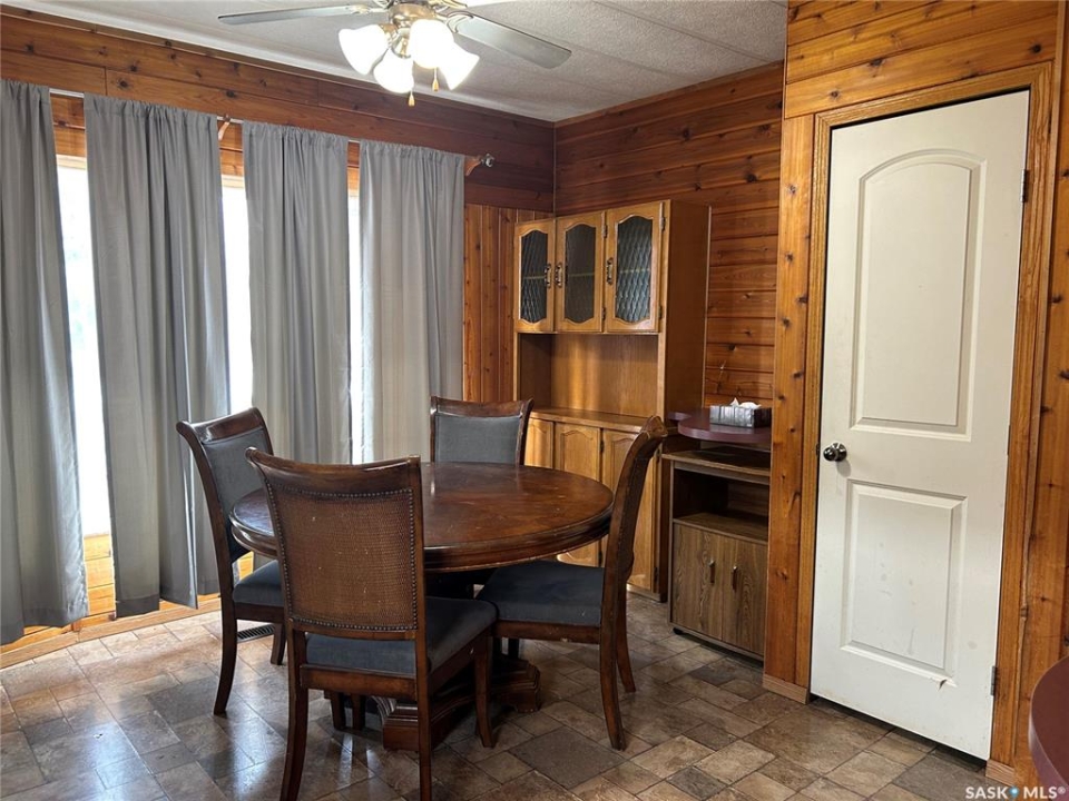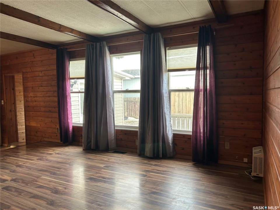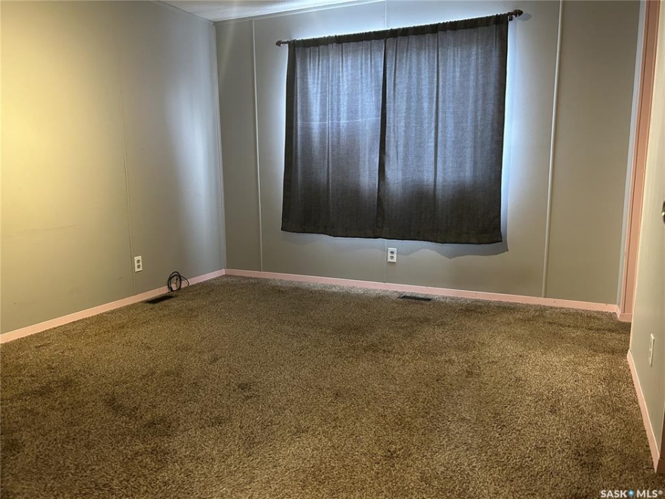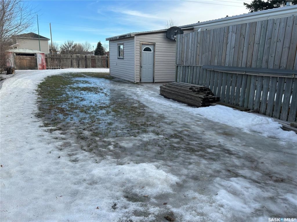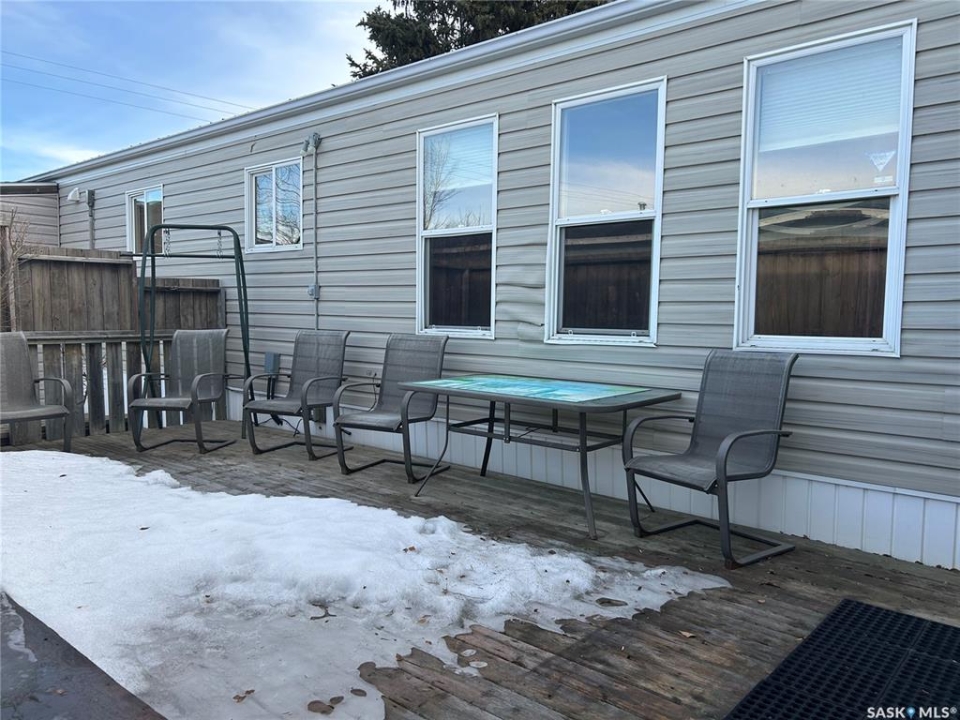 Located in the Royal Heights Mobile Home Park, this cozy home offers a warm, cabin-like atmosphere highlighted by wood panelling. Two thoughtful additions expand the living and storage space, including a versatile fourth bedroom or bonus room, as well as an electrified shed for extra storage. The welcoming entryway features a convenient storage closet and access to the bonus room/additional bedroom. The main living area includes an eat-in kitchen with ample cabinetry, a small pantry, and a built-in storage cabinet, flowing into a spacious living room filled with natural light from three large windows. Down the hallway you'll find main-floor laundry, a full bathroom, and three bedrooms. Outside, enjoy a deck, a nicely sized yard, and a detached storage shed—perfect for outdoor living and extra storage. An affordable opportunity to live comfortably in a well-maintained park setting.