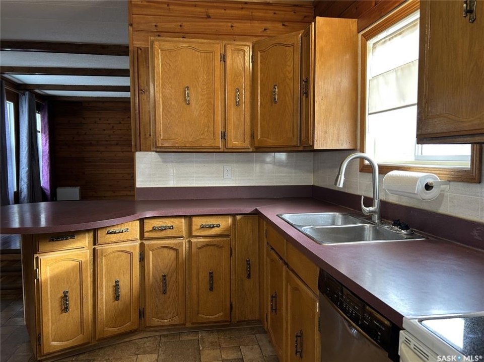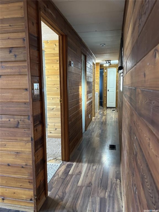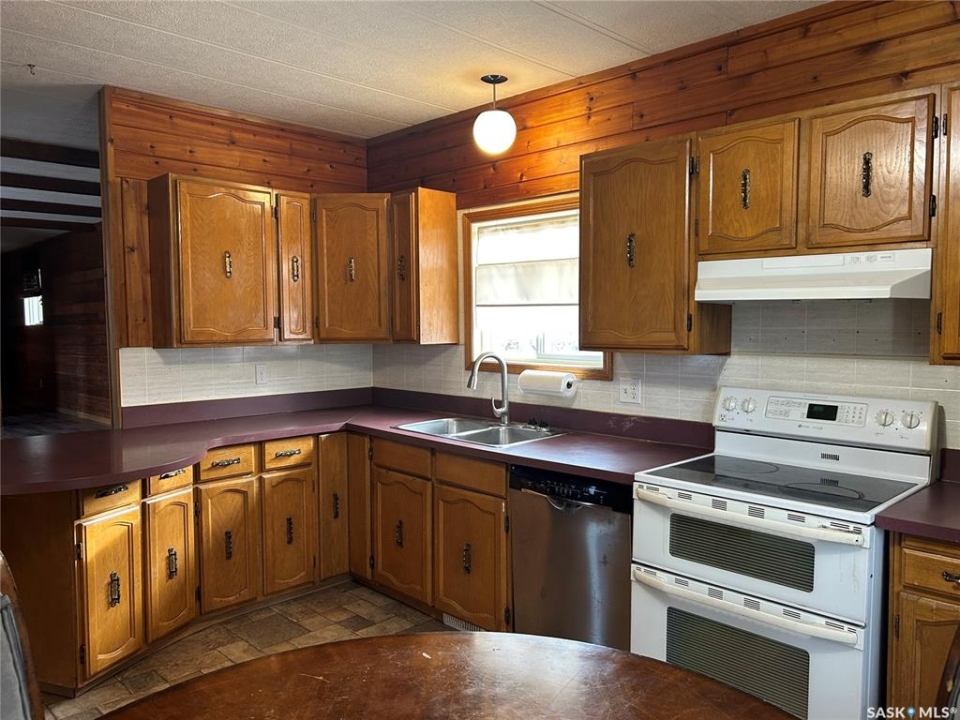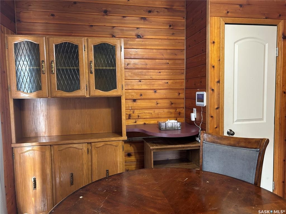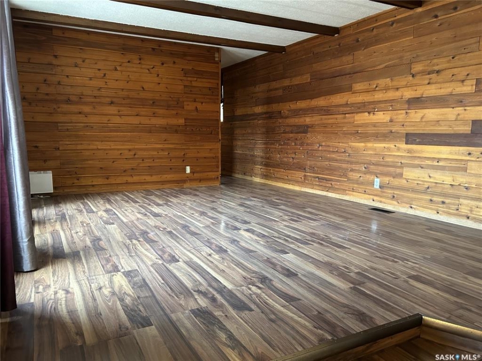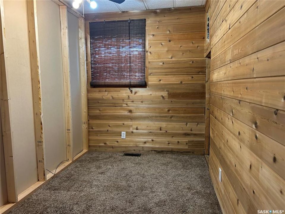 Located in the Royal Heights Mobile Home Park, this cozy home offers a warm, cabin-like atmosphere highlighted by wood panelling. Two thoughtful additions expand the living and storage space, including a versatile fourth bedroom or bonus room, as well as an electrified shed for extra storage. The welcoming entryway features a convenient storage closet and access to the bonus room/additional bedroom. The main living area includes an eat-in kitchen with ample cabinetry, a small pantry, and a built-in storage cabinet, flowing into a spacious living room filled with natural light from three large windows. Down the hallway you'll find main-floor laundry, a full bathroom, and three bedrooms. Outside, enjoy a deck, a nicely sized yard, and a detached storage shed—perfect for outdoor living and extra storage. An affordable opportunity to live comfortably in a well-maintained park setting.