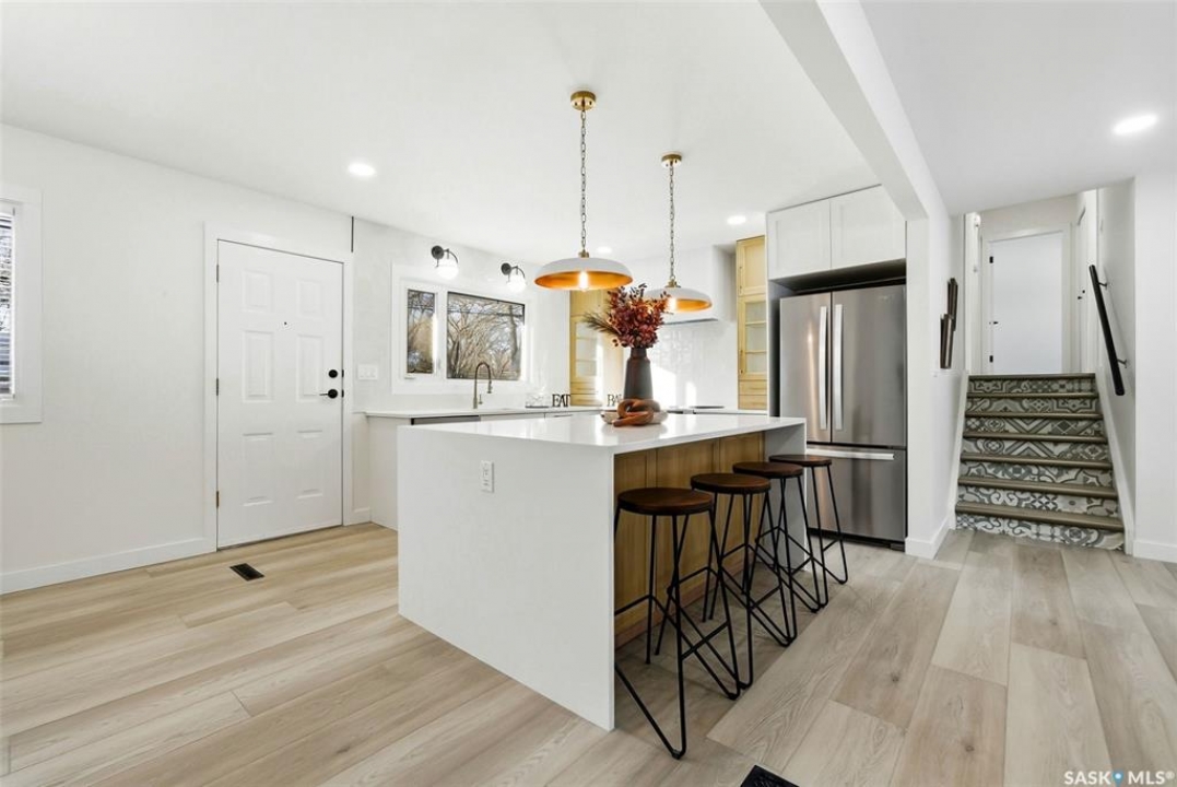 Welcome to 96 Bobolink Bay, a beautifully renovated family home tucked away on a quiet bay in desirable Whitmore Park. This move-in-ready property offers a thoughtful blend of modern design and functional living, with quality updates throughout. The main floor features a bright, open living space with large windows, durable vinyl plank flooring, and a stylish kitchen and dining area ideal for everyday living and entertaining. Three well-sized bedrooms and a fully updated 4-piece bathroom complete the upper level, showcasing clean finishes and contemporary fixtures. The lower level has been fully developed and offers an inviting rec room highlighted by a cozy electric fireplace, perfect for relaxing evenings. You'll also find an additional bedroom, a beautifully finished 3-piece bathroom with custom tile shower, and a functional laundry/utility area with front-load washer and dryer. Modern lighting, updated flooring, and eye-catching stair detailing add to the home's cohesive design. Situated on a generous lot with a spacious backyard, deck, and mature trees, this home offers plenty of room for outdoor enjoyment, gardening, or future garage potential. Located within walking distance to Massey School and Campbell Collegiate, this is an excellent opportunity to own a turnkey home in a well-established south Regina neighborhood.