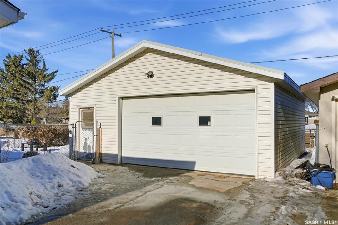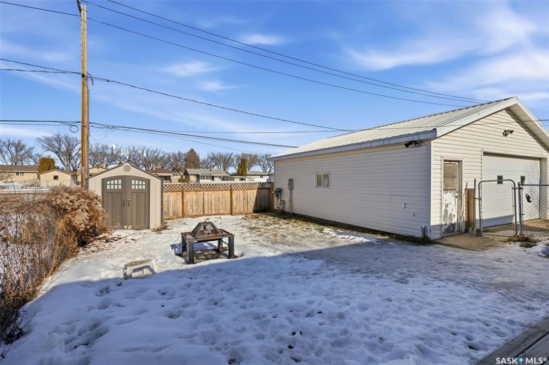 Welcome to 152 Woodward Avenue – a move-in ready bungalow offering space, functionality, with a over-sized double detached garage in the heart of Coronation Park. From the moment you step inside, you'll appreciate the warmth of the original hardwood flooring and the oversized front picture window that floods the living room with natural light. The main floor features three well-sized bedrooms and a full 4-piece bathroom, making it an ideal layout for families, first-time buyers, or downsizers wanting everything on one level. The kitchen showcases solid oak cabinetry with generous storage and prep space, stainless steel appliances, and a bright dining area. The fully developed basement is designed for entertaining and everyday living, featuring a massive recreation room anchored by a cozy wood-burning fireplace and a built-in wet bar—perfect for hosting game nights, movie marathons, or holiday gatherings. You'll also find a den and convenient 2-piece bathroom, offering flexible space for a home office, gym, or guest area. Step outside to your fully fenced 5,680 sq. ft. lot featuring patio space, firepit area, lawn, and mature trees—ready for summer entertaining. Car enthusiasts, hobbyists, or anyone needing serious storage will love the impressive 28' x 26' detached garage. Fully insulated and heated, it's a rare find and comfortably accommodates multiple vehicles, projects, and extra parking with a total of six off-street spaces. Don't miss out on this one! Additional features include natural gas forced air heating, central air conditioning, and a cozy wood-burning fireplace for Saskatchewan winters. Conveniently located near schools, parks, and all North Regina amenities, this home offers outstanding value and versatility in an established, family-friendly neighbourhood. Don't miss your opportunity to make it yours.