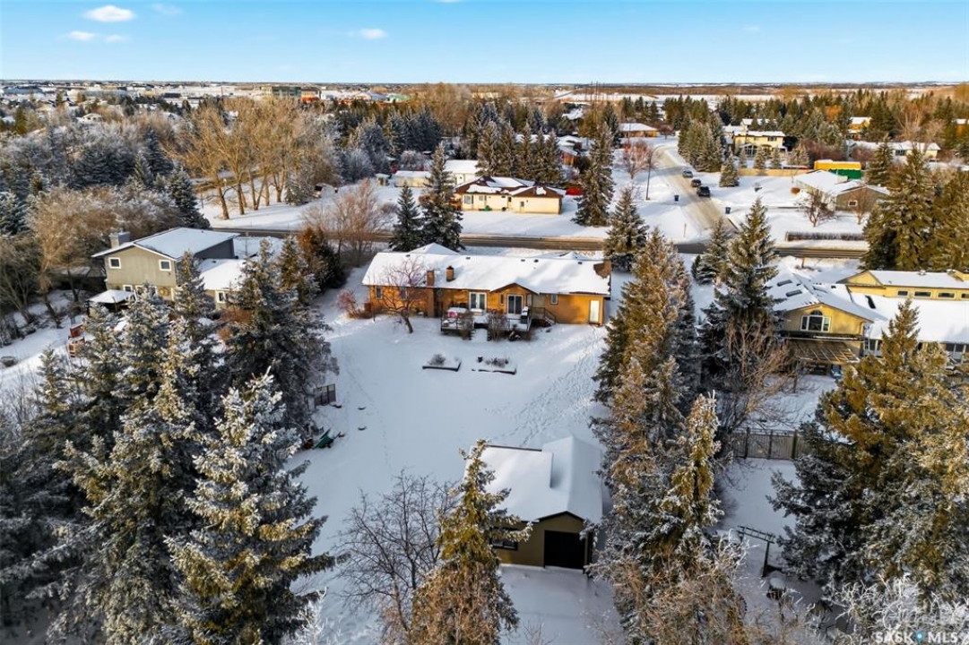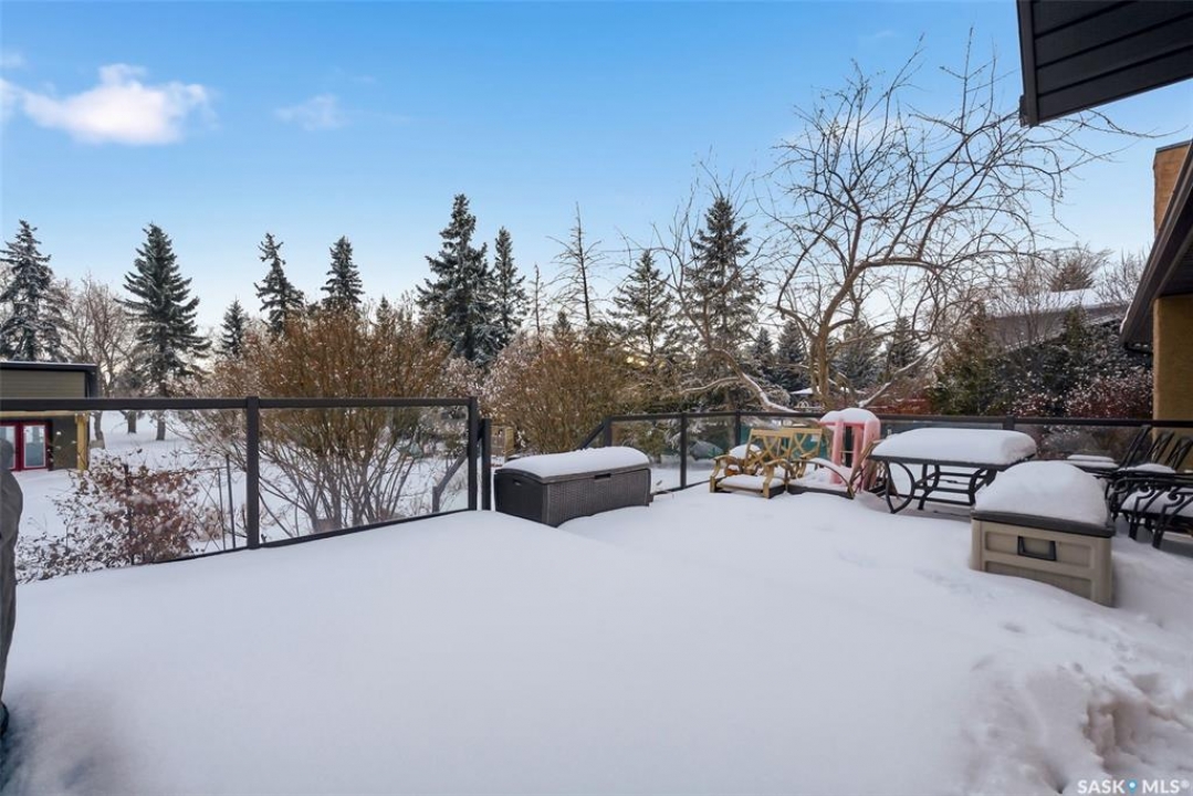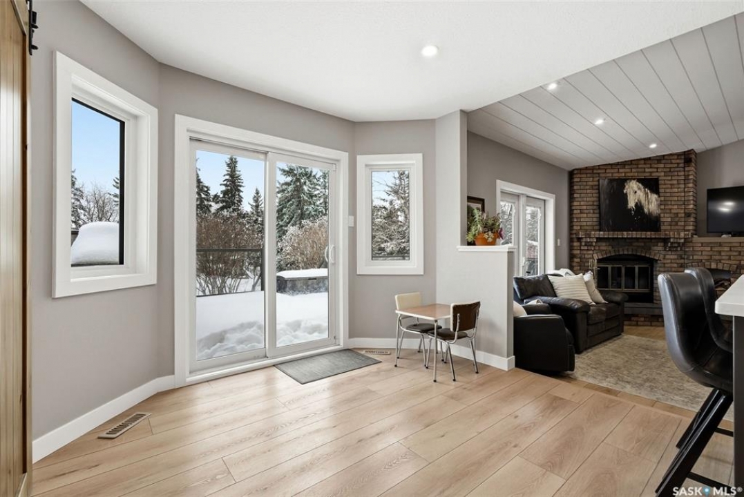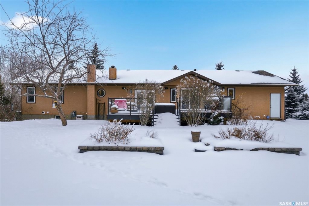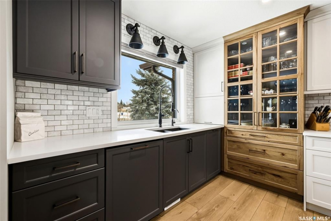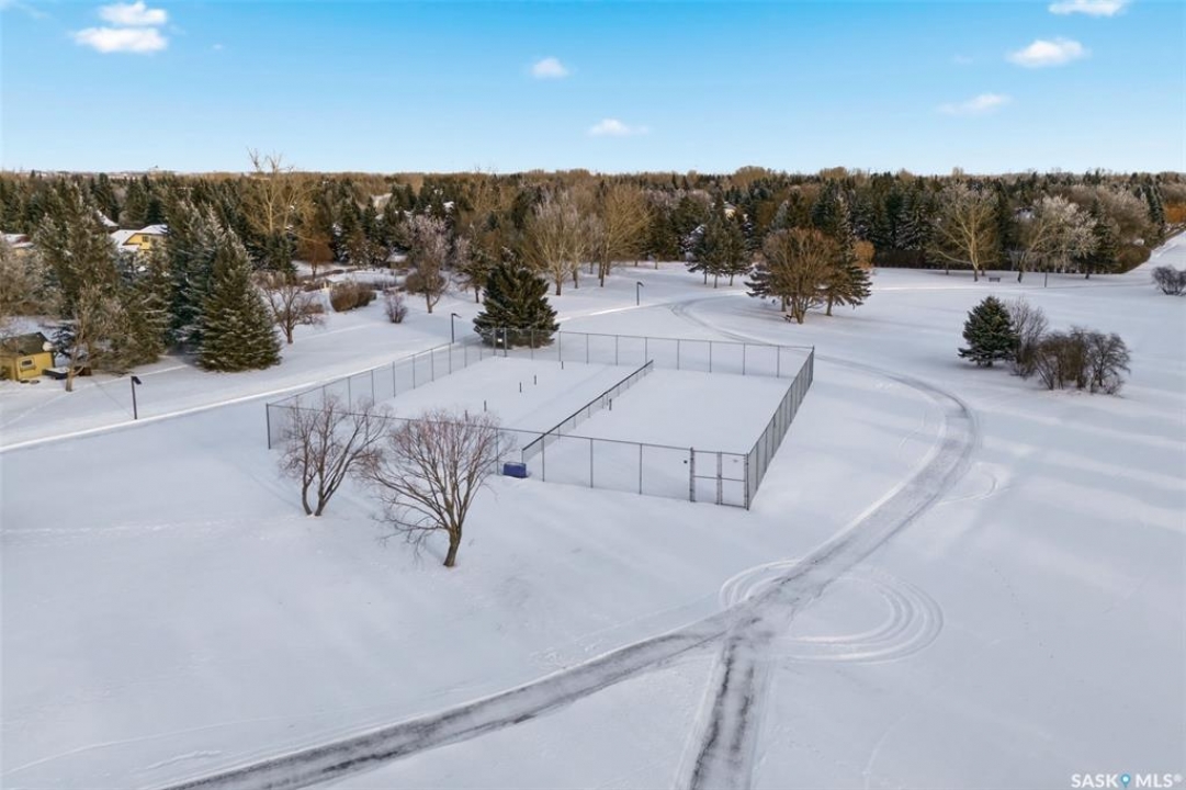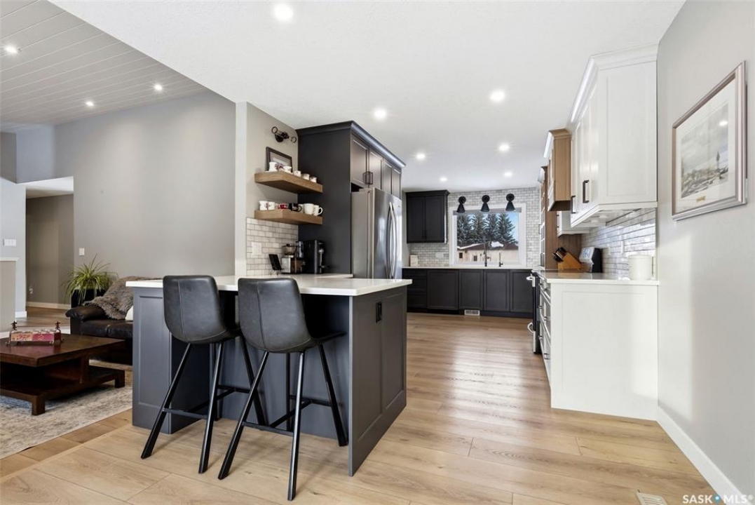 Welcome to this extensively renovated 1,468 sq. ft. bungalow in Emerald Park, situated on an impressive 30,000+ sq. ft. lot backing directly onto park space with tennis/pickleball courts and walking paths. The 2020 interior renovation completely transformed this home, featuring custom-built wood cabinetry with quartz countertops throughout, a striking two-tone kitchen with white perimeter cabinetry and contrasting dark eat-up island, marble backsplash, granite composite sink, induction range with exterior-vented hood, built-in microwave, and updated appliances. Wide vinyl plank flooring flows seamlessly through the main living areas, complemented by modern lighting and a clean, contemporary palette. The spacious dining area is filled with natural light from large picture windows, while the sunken living room showcases a beautiful brick wood-burning fireplace feature wall, creating a warm focal point. The primary bedroom offers a 3-piece ensuite, with two additional bedrooms and a 4-piece bath completing the main level, plus a convenient mudroom and 2-piece bath. The basement is partially finished with a massive recreation area, additional bedroom, 3-piece bath, and storage. Major updates and inclusions include windows, doors, shingles (2013), high-efficiency furnace, HRV, central A/C, on-demand water heater, security system, and central vac. Outside is a private retreat with mature landscaping, underground sprinklers, composite deck with glass railings (2020), brick firepit patio, and a custom-built outdoor structure with stamped concrete patio, cedar pergola, electrical, ethernet, and wiring for 220 radiant heat and overhead door opener. Double attached 22x20 garage plus double driveway offers parking for six. Well water. Patio furniture, BBQ and play structures included and riding lawnmower negotiable. This is turnkey Emerald Park living with luxury finishes and exceptional indoor-outdoor space, truly one of a kind!