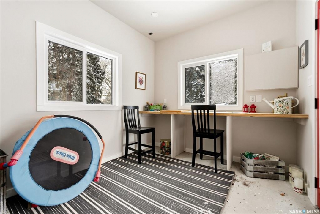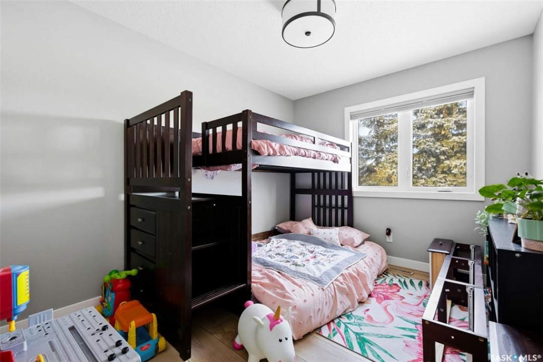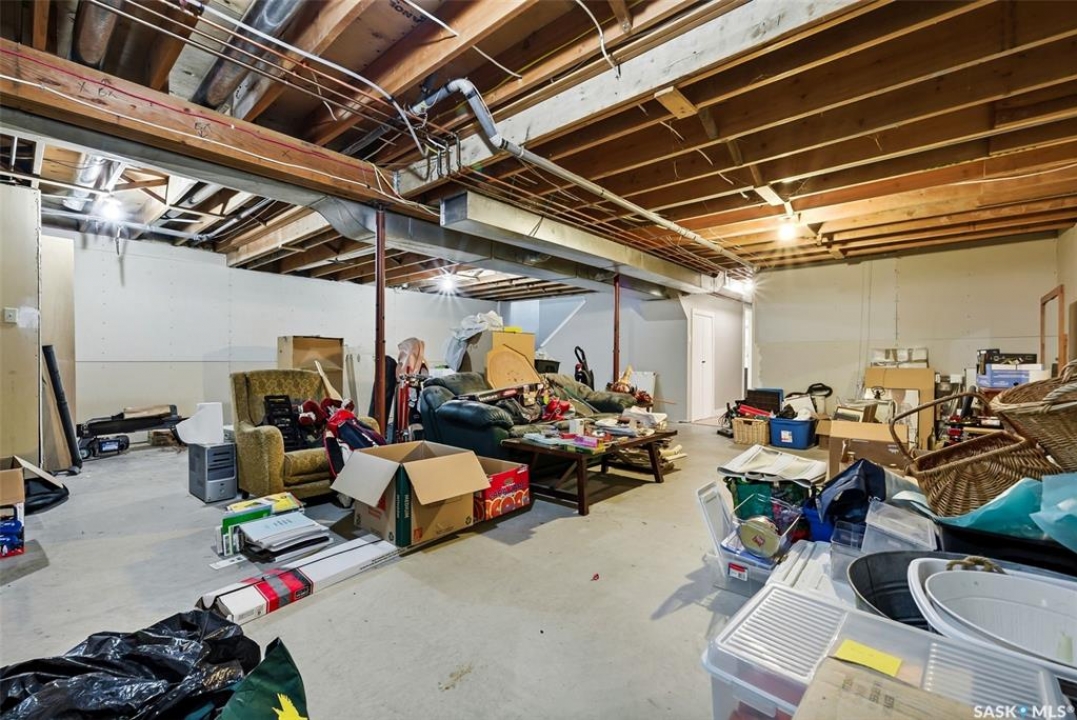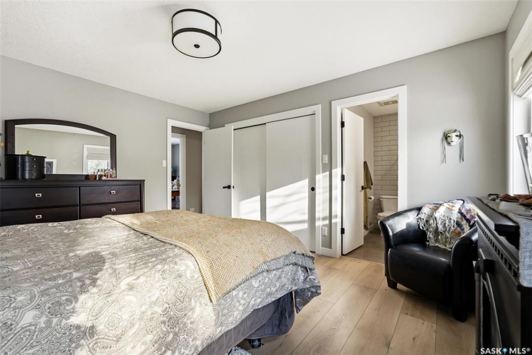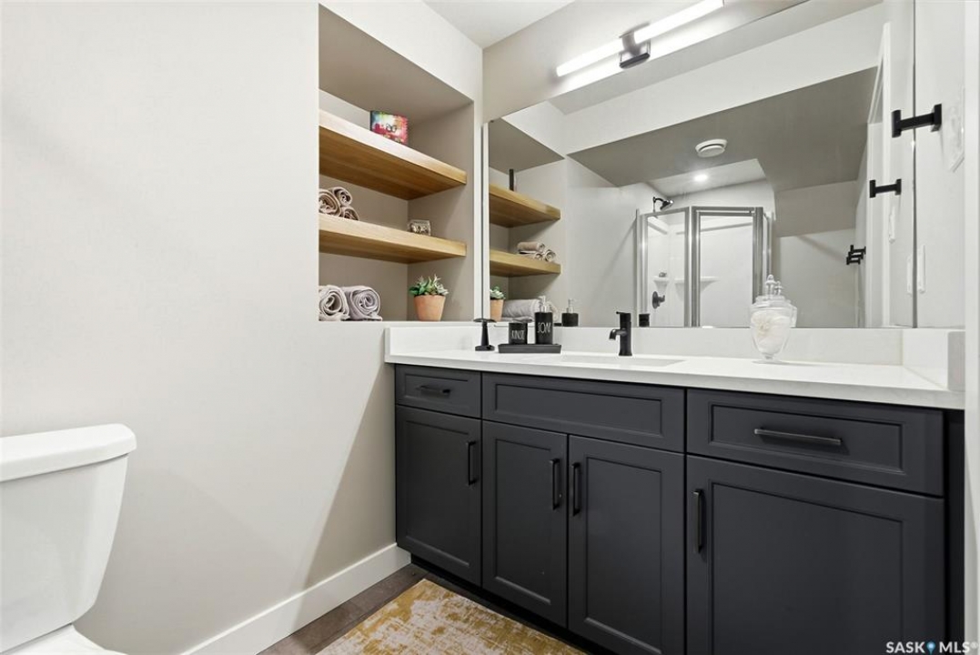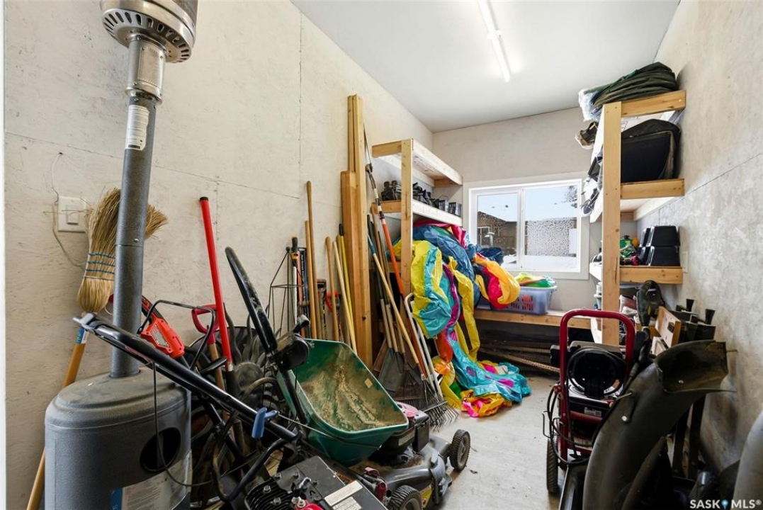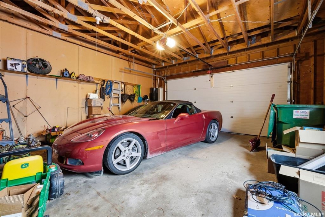 Welcome to this extensively renovated 1,468 sq. ft. bungalow in Emerald Park, situated on an impressive 30,000+ sq. ft. lot backing directly onto park space with tennis/pickleball courts and walking paths. The 2020 interior renovation completely transformed this home, featuring custom-built wood cabinetry with quartz countertops throughout, a striking two-tone kitchen with white perimeter cabinetry and contrasting dark eat-up island, marble backsplash, granite composite sink, induction range with exterior-vented hood, built-in microwave, and updated appliances. Wide vinyl plank flooring flows seamlessly through the main living areas, complemented by modern lighting and a clean, contemporary palette. The spacious dining area is filled with natural light from large picture windows, while the sunken living room showcases a beautiful brick wood-burning fireplace feature wall, creating a warm focal point. The primary bedroom offers a 3-piece ensuite, with two additional bedrooms and a 4-piece bath completing the main level, plus a convenient mudroom and 2-piece bath. The basement is partially finished with a massive recreation area, additional bedroom, 3-piece bath, and storage. Major updates and inclusions include windows, doors, shingles (2013), high-efficiency furnace, HRV, central A/C, on-demand water heater, security system, and central vac. Outside is a private retreat with mature landscaping, underground sprinklers, composite deck with glass railings (2020), brick firepit patio, and a custom-built outdoor structure with stamped concrete patio, cedar pergola, electrical, ethernet, and wiring for 220 radiant heat and overhead door opener. Double attached 22x20 garage plus double driveway offers parking for six. Well water. Patio furniture, BBQ and play structures included and riding lawnmower negotiable. This is turnkey Emerald Park living with luxury finishes and exceptional indoor-outdoor space, truly one of a kind!