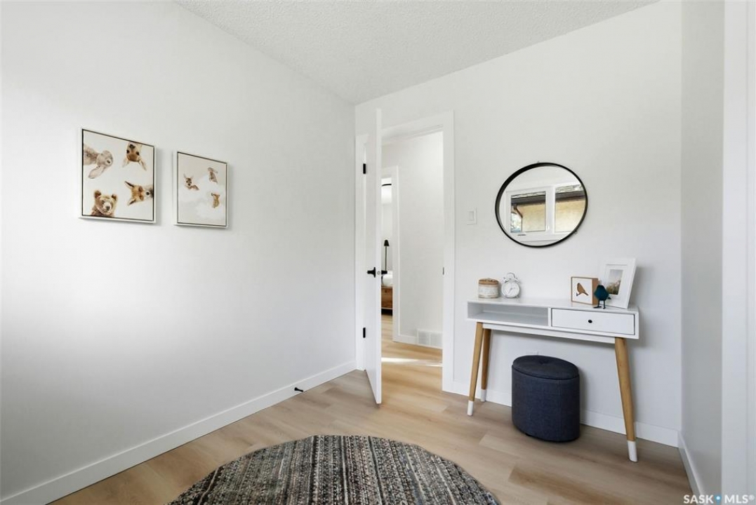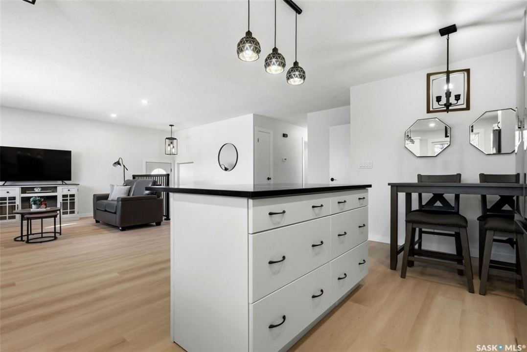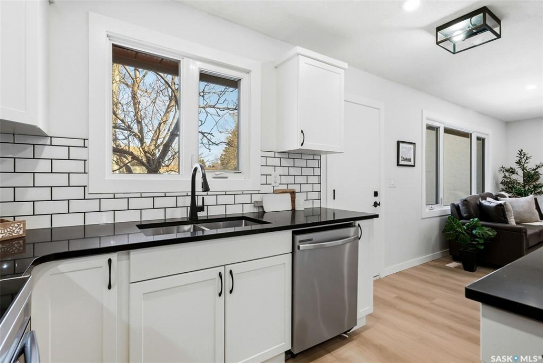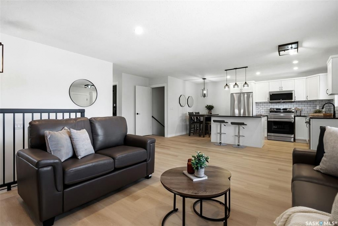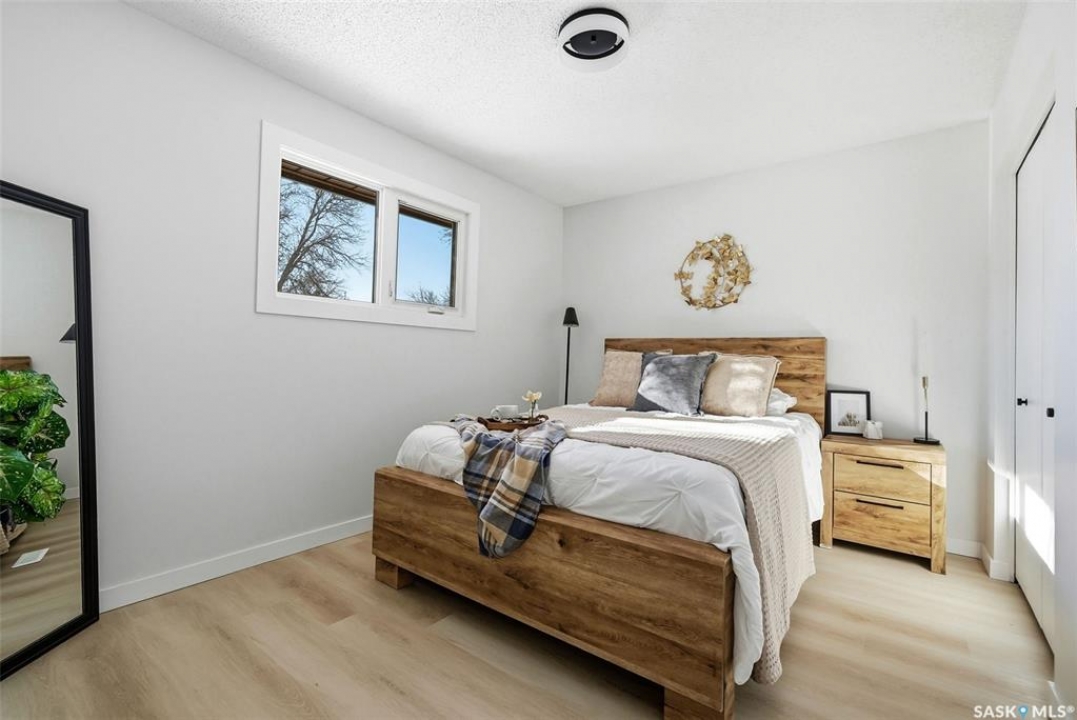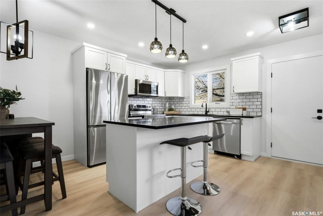 Welcome to 915 Rowell Crescent N in desirable McCarthy Park! This fully renovated 1,064 sq. ft. bungalow offers modern style, quality updates, and a completely move-in-ready interior from top to bottom. The bright main floor features new vinyl plank flooring throughout, a spacious sun-filled living room, and a stunning updated kitchen with white cabinetry, subway tile backsplash, black hardware, stainless steel appliances, and a functional island with seating. Three bedrooms are located on the main level, including a comfortable primary bedroom, along with a beautifully renovated 4-piece bathroom finished in crisp, contemporary tones. The fully developed basement has also been refreshed and provides incredible additional living space, highlighted by a massive 13' x 34' recreation room, a fourth bedroom, a second renovated 4-piece bathroom, and a dedicated laundry area—ideal for families, guests, or flexible living needs. Situated on a 4,400 sq. ft. fully fenced rectangular lot with mature trees, a concrete driveway, and parking for two vehicles. Located close to schools, parks, and North Regina amenities, this is an excellent opportunity for buyers looking for a fully updated, turnkey home in a well-established neighbourhood.