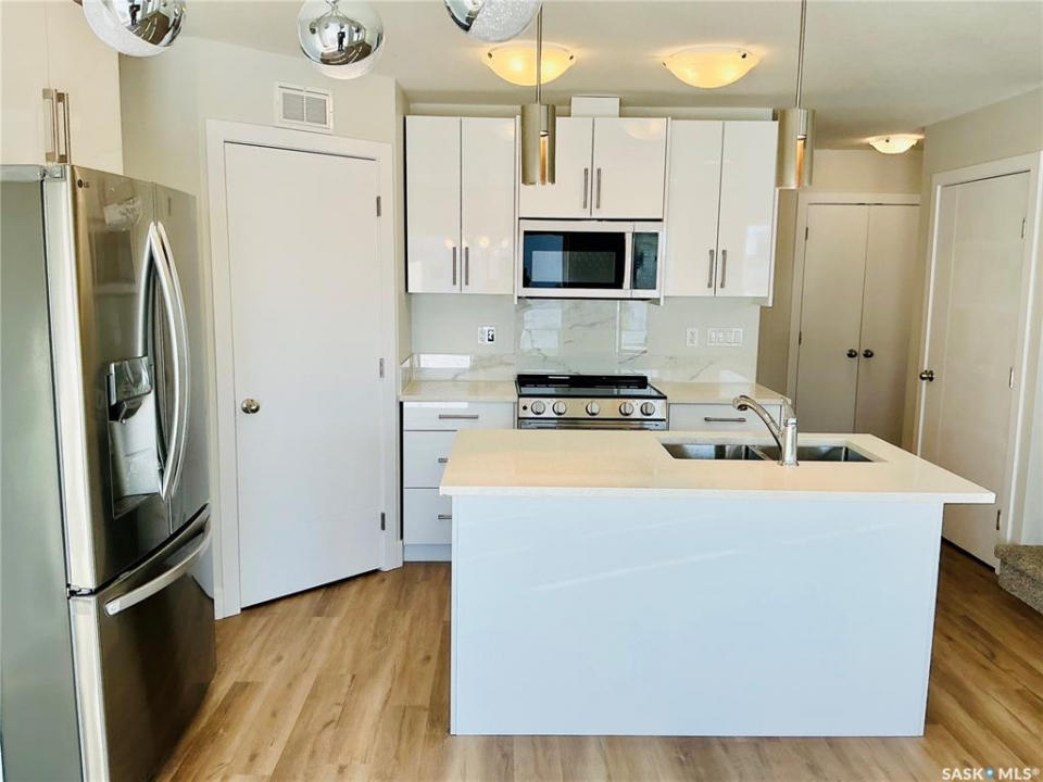 111 Stromberg Crescent – Kensington, Saskatoon Opportunity is knocking. Buyer incentive of 35% cash back from the legal suite development valued at $110,000 1,500 sq. ft. 2-storey with a double attached 22x22 insulated heated garage (9 ft high 16 wide garage door in Saskatoon's thriving Kensington community. The main floor is bright, open, and perfect for both family life and entertaining. The kitchen connects to a walk-through pantry and mudroom — which basically means you'll never have to juggle groceries through the front door again. Upstairs bonus room, three bedrooms, and to 4pc bathrooms, including a spacious primary suite where you can finally escape from the chaos of everyday life (or at least try). Other perks? A finished concrete driveway, modern curb appeal, and a separate entry into a fully developed 1BDR suite. if you want a mortgage helper, Tucked into one of Saskatoon's fastest-growing neighborhoods, you'll be close to schools, parks, and amenities. In short: smart layout, great location. To View come and swing by my OPEN HOUSE SAT & SUN @ 2 to 4 PM Feb 14&15 to discuss the Potential of up to $35,000n cash grant through the Sasakatchewan Secondary Suite Incentive. Seller is willing to provide a receipt to the Buyer for the Rebate Program.