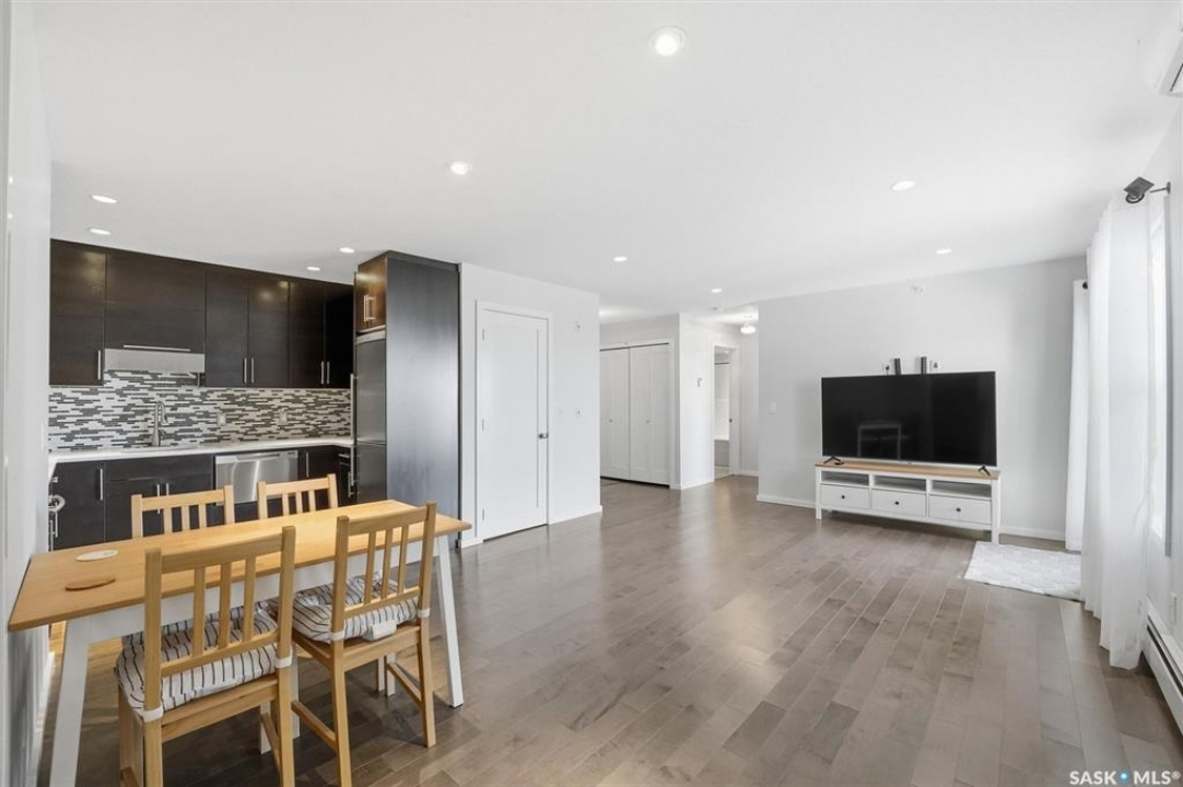 Welcome to suite 408 in the London Flats Condominium. This top floor unit has much to offer. At 1067 sq.ft you will notice the square footage right away and appreciate that it is 2 full bedrooms and 2 full baths plus a large den. Kitchen features dark flat panel cabinetry, quartz countertop, glass tile backsplash, undermount sink, soft closing drawers and top of the line built in appliances (Miele, Fysher and Paykel, Blomberg). The living room and dining room area is a great space for entertaining with patio door off the dining room leading to balcony. Largest balcony in the building with privacy from neighbors. Views of Hyde Park and room for seating and a BBQ (Natural Gas Hookup). Large primary bedroom with a walk-in closet and full ensuite with tub cutout to step in/out with ease. Smart floor plan with 2nd bedroom on opposite side of suite with own additional full bath right across the hall. Don't forget there is a separate den with options for home office, additional TV room, exercise area, extra storage etc. Storage room with in-suite laundry and 2nd fridge/ freezer. Electrified parking space right close to entry of the building. Located in the heart of Lakewood with all your amenities in walking distance. Building is surrounded by Hyde Park with walking paths around the lake. Dog park & kids play park are right there as well. South Costco is only a couple minute drive away. Really everything you need is steps away. Unit shows 10/10 and is lovely to walk through. Call your Realtor today to setup your private viewing. Presentation of offers for Monday February 16,2026 at 12:00pm.