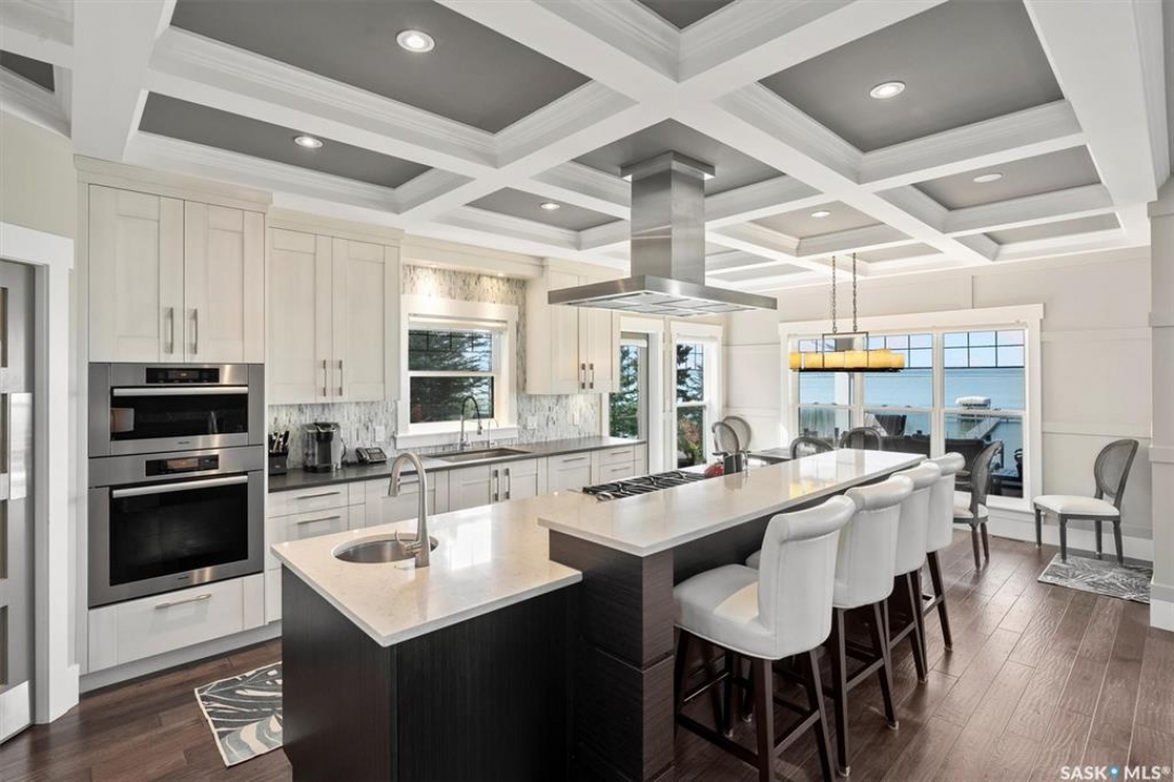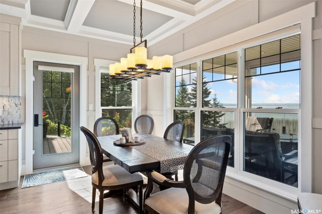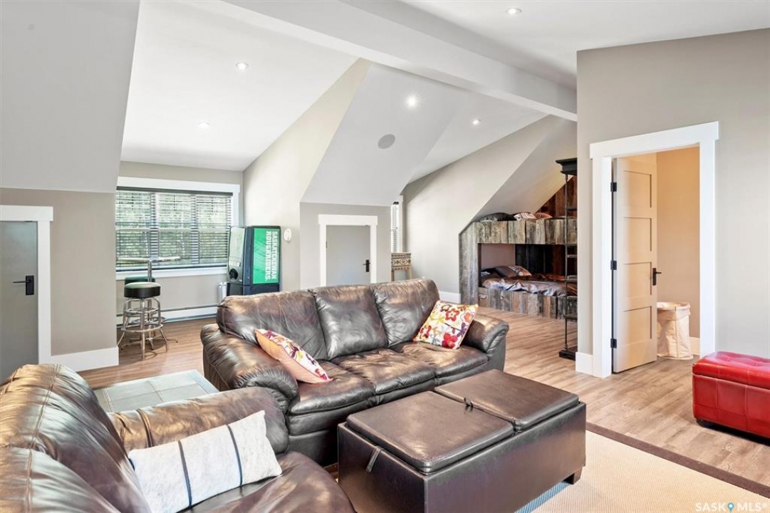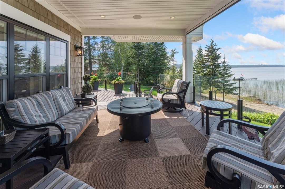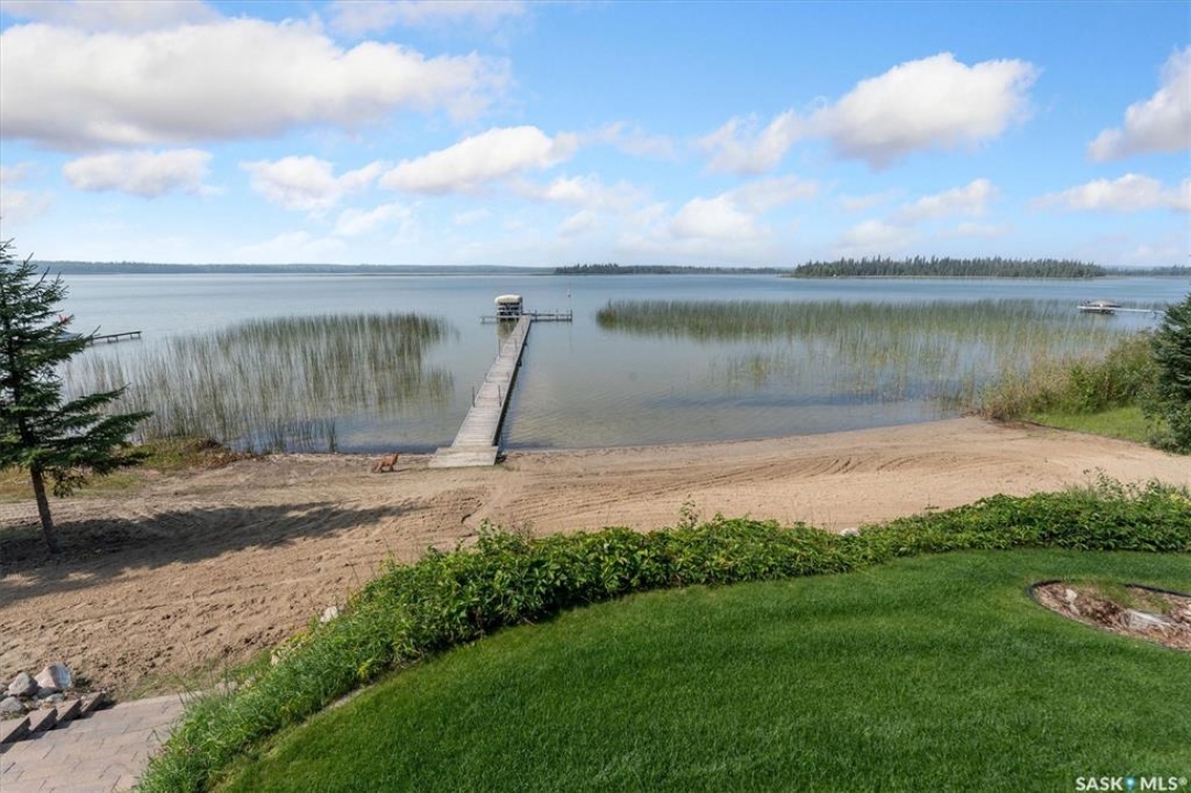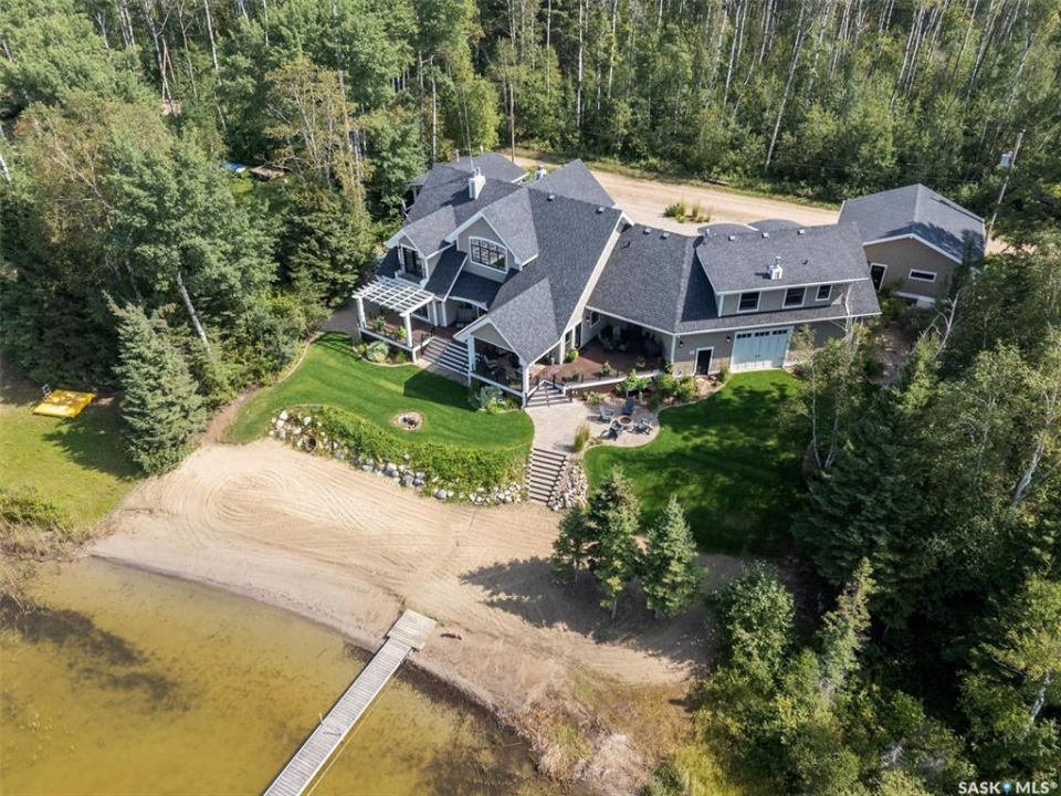Welcome to 210 Okema Trail, a one-of-a-kind custom-built luxury resort property at Emma Lake, completed in 2015 and set on the exclusive third lake with only 32 homes along its pristine shoreline. Boasting 150 feet of private, sandy lakefront across two expansive lots, this 3,737 sq. ft. two-storey masterpiece is designed for entertaining and family gatherings, comfortably sleeping 17+ guests. The main residence features 4 bedrooms, a home study with a balcony and 4 bathrooms, highlighted by a grand foyer with a double-sided gas fireplace, soaring ceilings, and a family room with stunning panoramic lake views. The family room and dining are all open to the kitchen. The gourmet kitchen is a chef's dream, offering top-tier Miele appliances, Wolf 6-burner gas cooktop, dual dishwashers, steam/convection ovens, a wine fridge, and a walk-through butler's pantry. The luxurious master retreat includes a cozy fireplace, a spa-like ensuite with a soaker tub and steam shower, and a private staircase to a personal retreat with beautiful lake views. Additional features include a heated 1,275 sq. ft. attached garage with a bonus suite sleeping 6 with a large family room and games area as well as a 3 piece bathroom. A separate 400 sq. ft. guest house with living quarters, one bedroom and a bathroom all above the single heated garage. There is also another 3-car detached garage for recreational toys, incredible professionally landscaped yards, all with views of the lake, 800 sq. ft. of compost deck area with glass railings facing the lake as well as beautiful sand beach out front. The property also comes with its own dock. Enjoy this luxury home in every season. Amazing groomed snow mobile trails and ski trails in the winter. Golf, Pickle Ball, groceries and shopping amenities all within 10 minutes. The Prince Albert Airport is located 35 minutes away. This exceptional lakeside property redefines luxury and relaxation—schedule your private tour today!