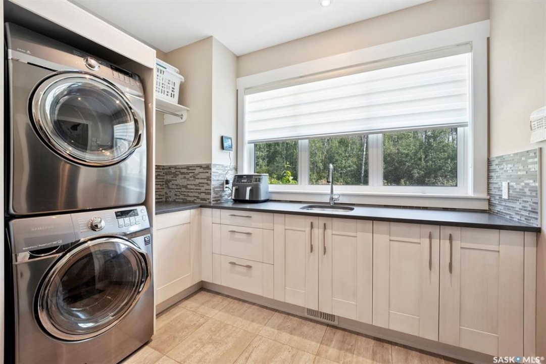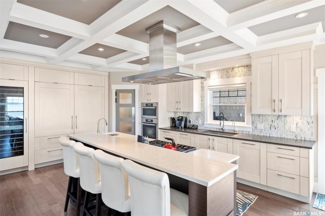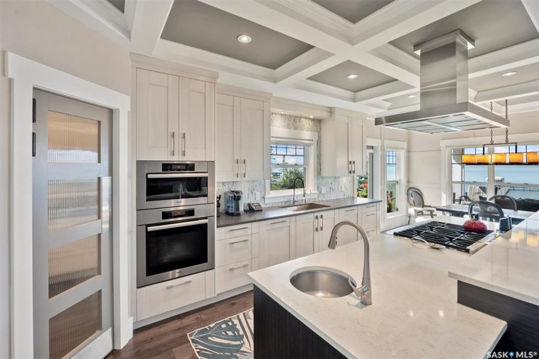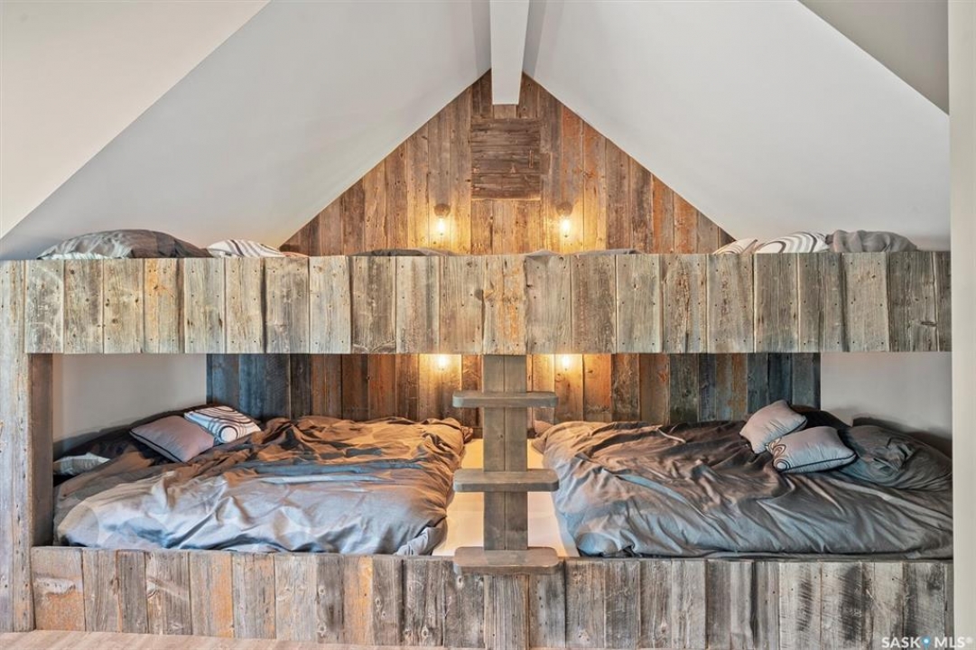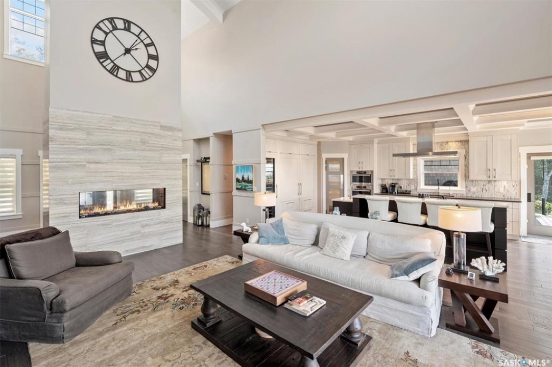 Welcome to 210 Okema Trail, a one-of-a-kind custom-built luxury resort property at Emma Lake, completed in 2015 and set on the exclusive third lake with only 32 homes along its pristine shoreline. Boasting 150 feet of private, sandy lakefront across two expansive lots, this 3,737 sq. ft. two-storey masterpiece is designed for entertaining and family gatherings, comfortably sleeping 17+ guests. The main residence features 4 bedrooms, a home study with a balcony and 4 bathrooms, highlighted by a grand foyer with a double-sided gas fireplace, soaring ceilings, and a family room with stunning panoramic lake views. The family room and dining are all open to the kitchen. The gourmet kitchen is a chef's dream, offering top-tier Miele appliances, Wolf 6-burner gas cooktop, dual dishwashers, steam/convection ovens, a wine fridge, and a walk-through butler's pantry. The luxurious master retreat includes a cozy fireplace, a spa-like ensuite with a soaker tub and steam shower, and a private staircase to a personal retreat with beautiful lake views. Additional features include a heated 1,275 sq. ft. attached garage with a bonus suite sleeping 6 with a large family room and games area as well as a 3 piece bathroom. A separate 400 sq. ft. guest house with living quarters, one bedroom and a bathroom all above the single heated garage. There is also another 3-car detached garage for recreational toys, incredible professionally landscaped yards, all with views of the lake, 800 sq. ft. of compost deck area with glass railings facing the lake as well as beautiful sand beach out front. The property also comes with its own dock. Enjoy this luxury home in every season. Amazing groomed snow mobile trails and ski trails in the winter. Golf, Pickle Ball, groceries and shopping amenities all within 10 minutes. The Prince Albert Airport is located 35 minutes away. This exceptional lakeside property redefines luxury and relaxation—schedule your private tour today!