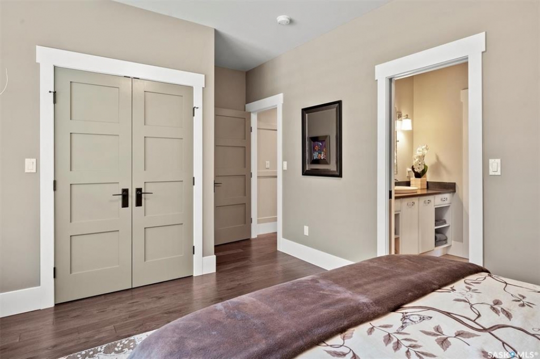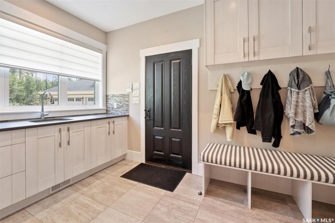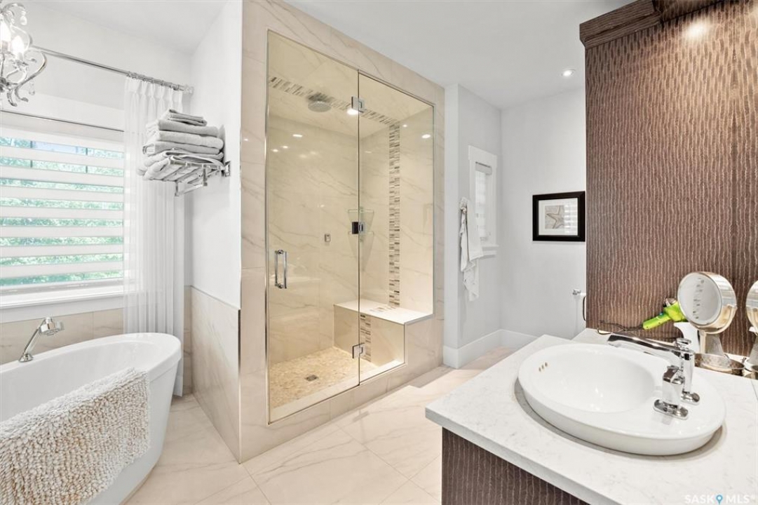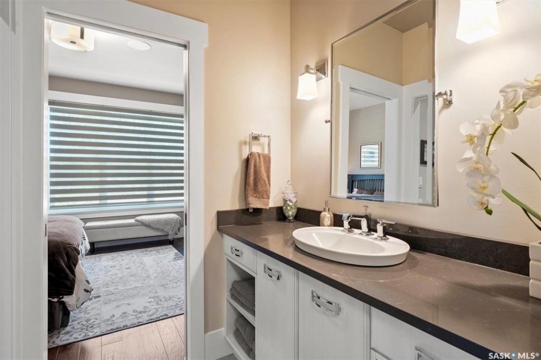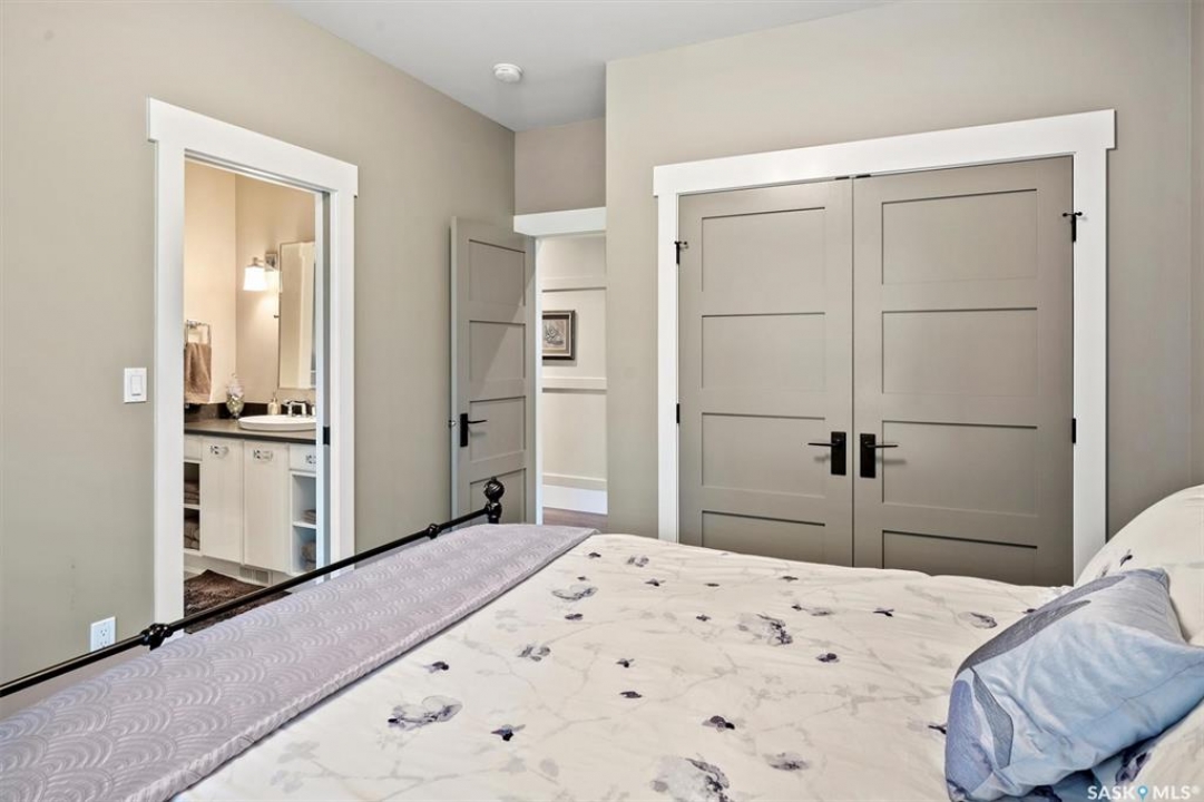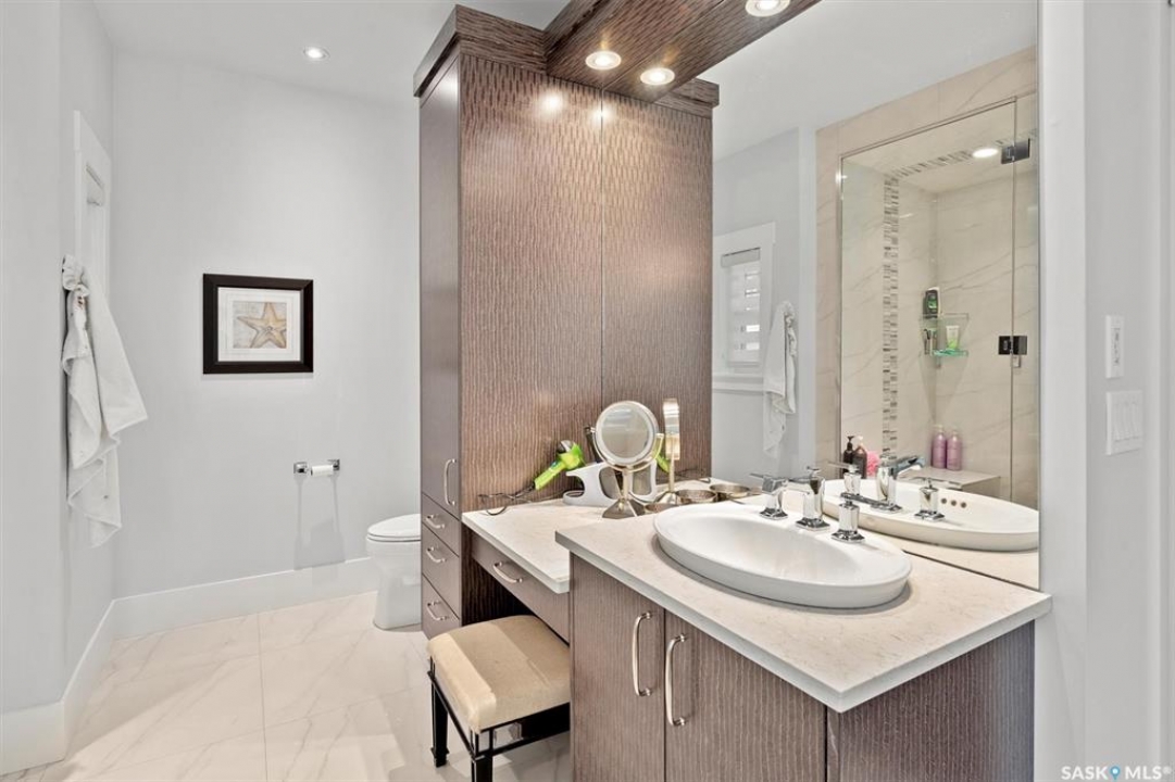 Welcome to 210 Okema Trail, a one-of-a-kind custom-built luxury resort property at Emma Lake, completed in 2015 and set on the exclusive third lake with only 32 homes along its pristine shoreline. Boasting 150 feet of private, sandy lakefront across two expansive lots, this 3,737 sq. ft. two-storey masterpiece is designed for entertaining and family gatherings, comfortably sleeping 17+ guests. The main residence features 4 bedrooms, a home study with a balcony and 4 bathrooms, highlighted by a grand foyer with a double-sided gas fireplace, soaring ceilings, and a family room with stunning panoramic lake views. The family room and dining are all open to the kitchen. The gourmet kitchen is a chef's dream, offering top-tier Miele appliances, Wolf 6-burner gas cooktop, dual dishwashers, steam/convection ovens, a wine fridge, and a walk-through butler's pantry. The luxurious master retreat includes a cozy fireplace, a spa-like ensuite with a soaker tub and steam shower, and a private staircase to a personal retreat with beautiful lake views. Additional features include a heated 1,275 sq. ft. attached garage with a bonus suite sleeping 6 with a large family room and games area as well as a 3 piece bathroom. A separate 400 sq. ft. guest house with living quarters, one bedroom and a bathroom all above the single heated garage. There is also another 3-car detached garage for recreational toys, incredible professionally landscaped yards, all with views of the lake, 800 sq. ft. of compost deck area with glass railings facing the lake as well as beautiful sand beach out front. The property also comes with its own dock. Enjoy this luxury home in every season. Amazing groomed snow mobile trails and ski trails in the winter. Golf, Pickle Ball, groceries and shopping amenities all within 10 minutes. The Prince Albert Airport is located 35 minutes away. This exceptional lakeside property redefines luxury and relaxation—schedule your private tour today!