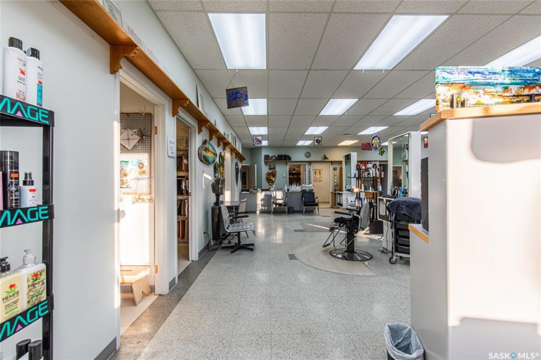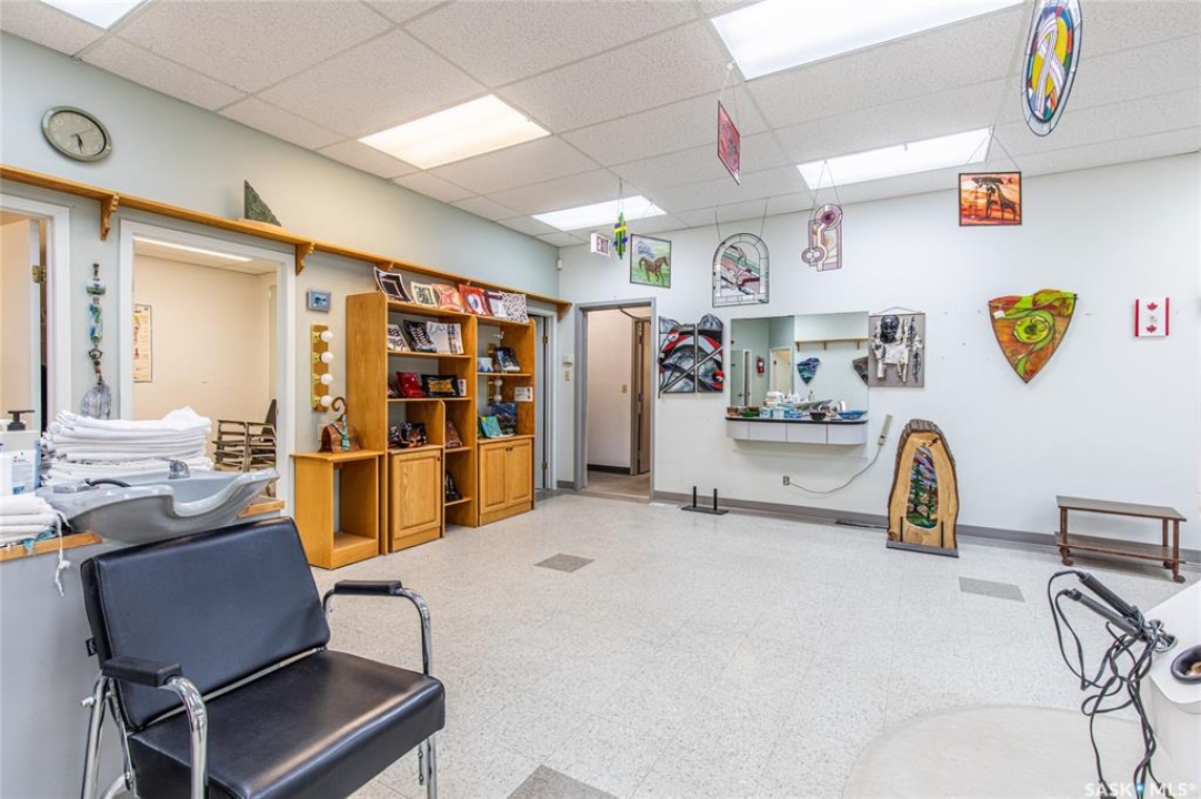 Exceptional opportunity to own a 2,345 sq/ft commercial building zoned C2, offering incredible flexibility for a wide range of business uses including office space, retail store, personal services, medical services, pet grooming, or a photography studio to name a few. Located in a high-traffic area with excellent visibility and steady foot traffic, this property is surrounded by amenities including restaurants, pharmacies, and a grocery store—making it a convenient and accessible destination for clients and staff alike. The building is currently operating as a hair salon and features six additional rooms presently used for storage, office space, supplies, and a kitchenette—providing adaptable space to suit your business needs. Additional highlights include: Off-street parking at the rear for 5–6 customer/staff vehicles, Wheelchair accessible entrance, South-side addition (2002) with grade door, in-floor heat, and ample shelving — ideal for workshop or garage use, & a washer & dryer included in “as is” condition. This well-maintained property offers strong exposure, functional layout, and versatile zoning—an excellent investment for owner-operators or entrepreneurs looking to establish or expand their business. Building is not for lease.