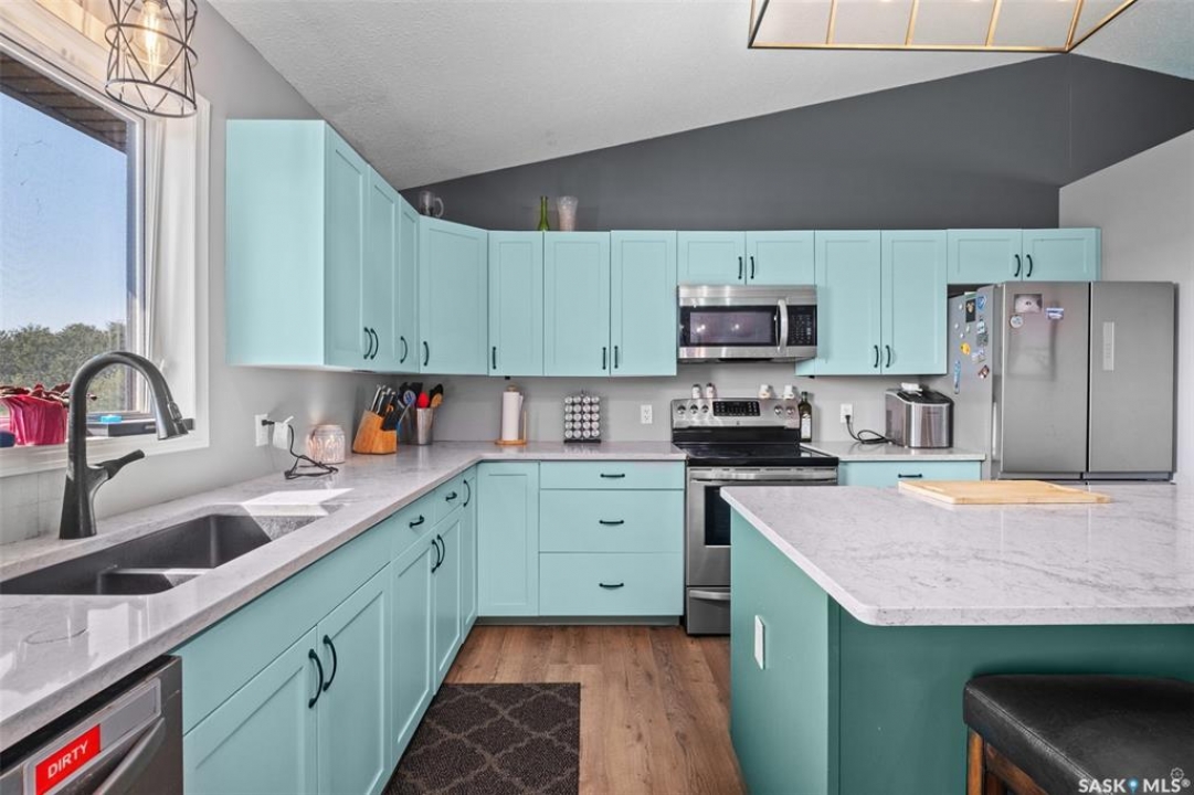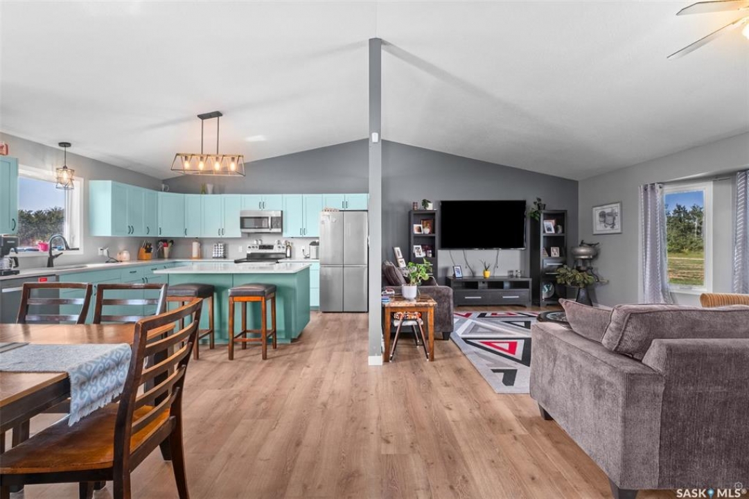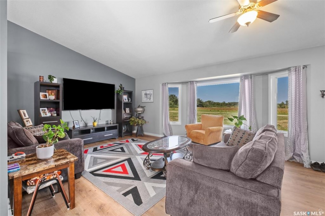 The perfect acreage does exist! Move in ready, the 4 bedroom, 3 bathroom residence is the perfect bridge way between the lake life and city living. The main level provides a huge front living room, massive custom kitchen with stone counter tops, soaring vaulted ceilings and a ton of natural lighting throughout. The lower level comes fully developed with an awesome recreational/family room, a den, loads of storage and a walk out access. The exterior of the property supplies 14.47 acres of land with a large insulated shop, many sheds, spacious front and rear decks.