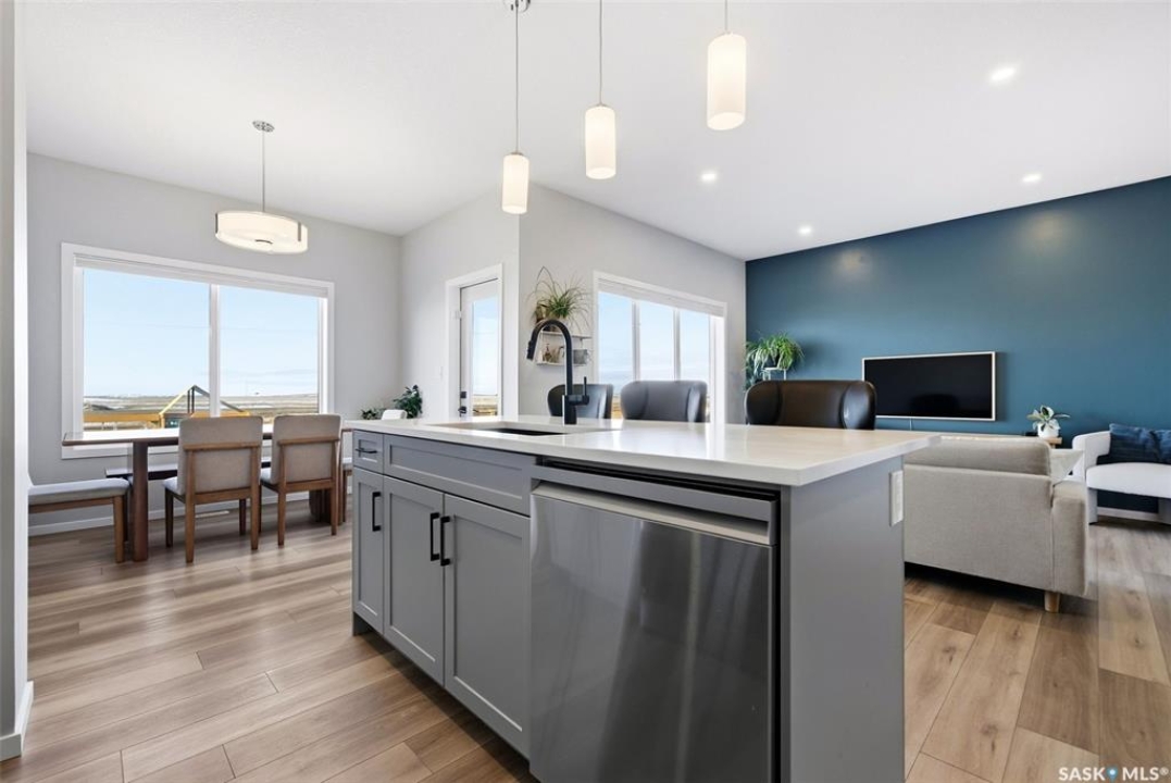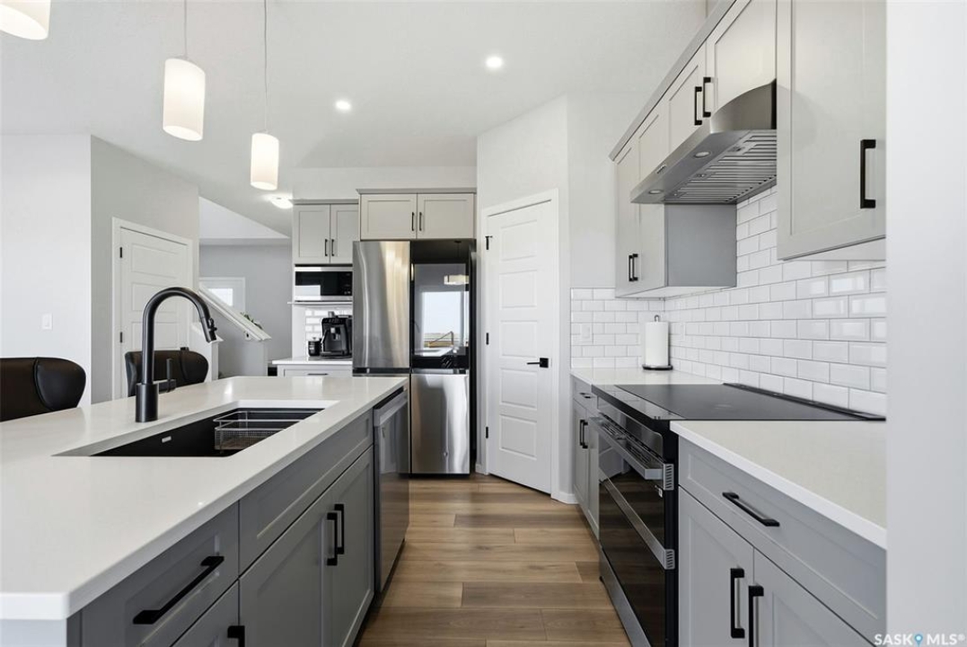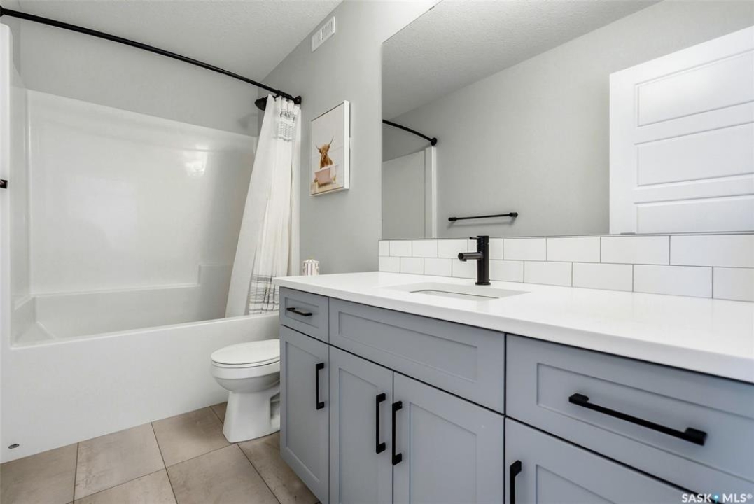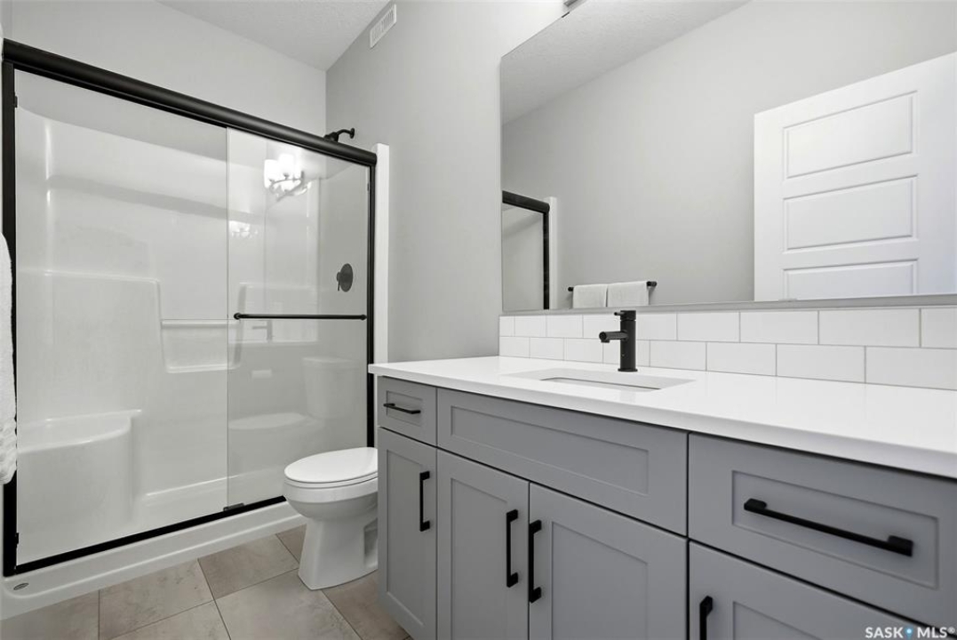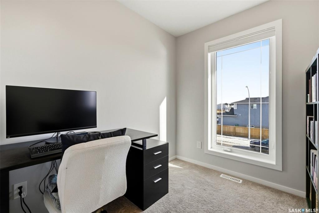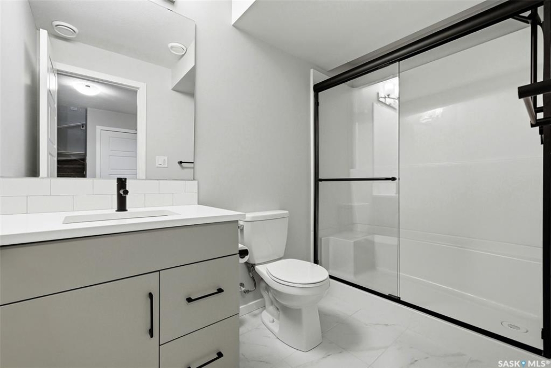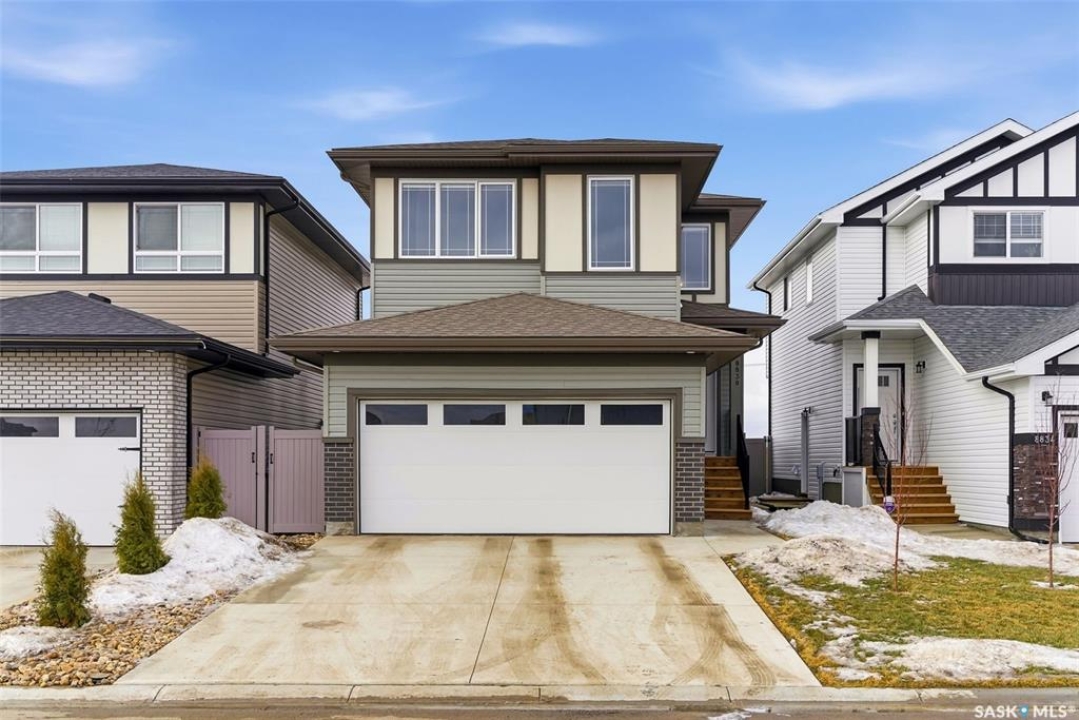Welcome to Westerra. New-build energy… without the new-build wait. This fully finished two-storey offers the space, flexibility, and upgrades today's buyers are searching for, all move-in ready. Step inside to a bright and inviting main floor featuring durable luxury vinyl plank flooring throughout. The heart of the home is the beautiful kitchen, complete with quartz countertops, stainless steel appliances, and ample cabinetry, flowing seamlessly into the dining and living areas. Large windows flood the space with natural light, creating a warm and airy feel. The main floor also offers a versatile bedroom and a full 3-piece bathroom, ideal for guests, in-laws, a home office, or a dedicated playroom. Upstairs, you'll find a spacious primary suite with a walk-in closet and a luxurious 5-piece ensuite. Two additional bedrooms, a 4-piece bathroom, a dedicated office space, and the convenience of upstairs laundry make this level as functional as it is comfortable. The fully finished basement adds incredible value, featuring a separate side entrance, a large recreation area currently set up as a gym and family room, an additional bedroom, and another full bathroom. This space offers excellent flexibility for extended family, and guests. Outside, the fully fenced backyard is ready to enjoy, the front yard is landscaped, and the insulated double garage is equipped with an EV charger. Stylish, spacious, and truly turnkey, this home is ready and waiting for its next owners to move in and make it their own. Westerra is a wonderful place to call home, offering a welcoming community feel with a local park and daycare nearby, all while providing quick and convenient access to everything Regina has to offer.