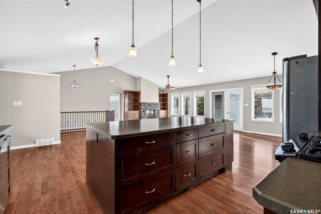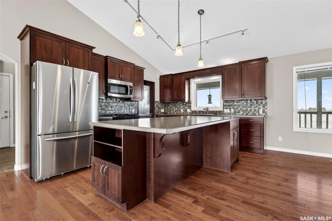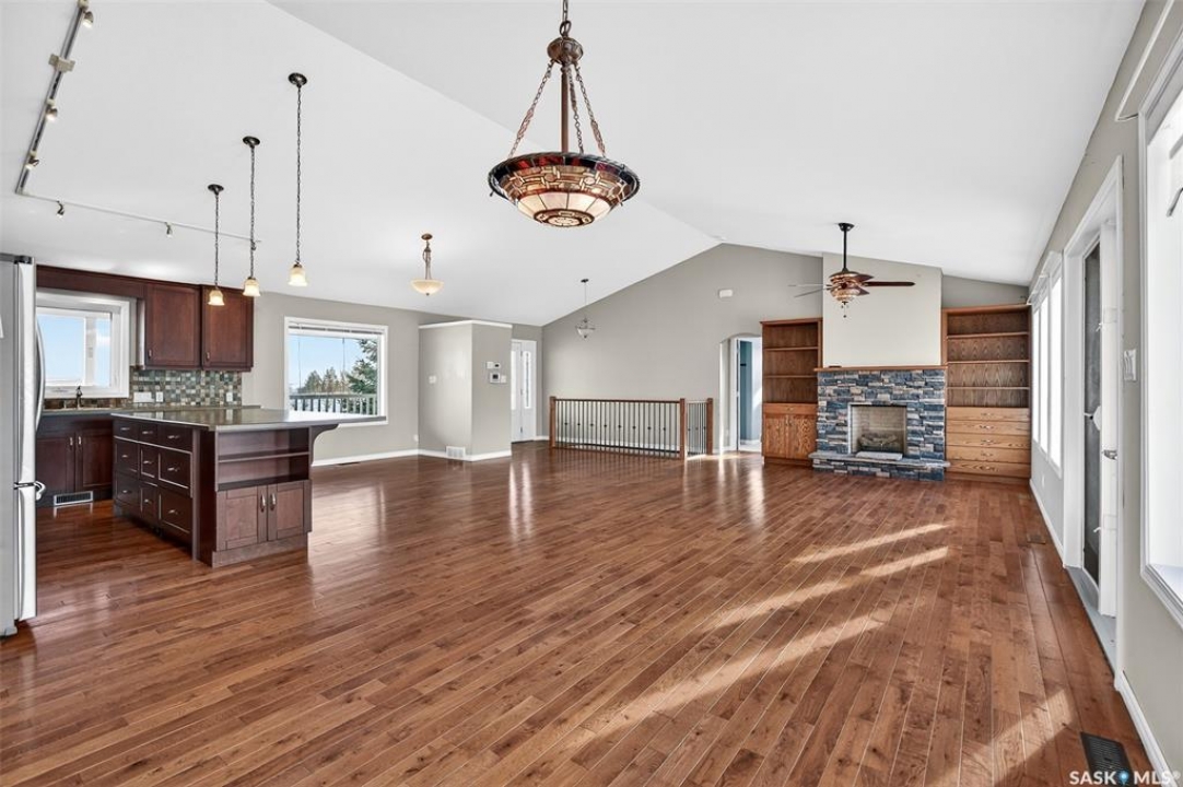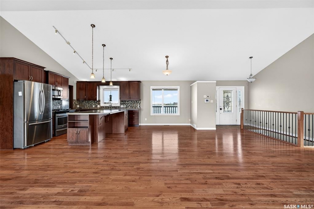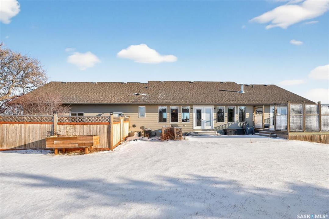 Welcome to country living on the edge of the Village of Mortlach! This home is East facing with a sunrise view of pasture & open fields from your front veranda while you sip your morning coffee! This spacious Bungalow sits on a large lot & just feels like “home”. The main Living Area is open concept & is anchored with a gas fireplace on one wall & stunning Kitchen at the opposite end. The Kitchen is well appointed with ample cabinetry, large island, gas range & a walk-in Pantry (noted in room sizes as “other”). The space allows room for a formal Dining Area along the wall of windows & space for a breakfast nook overlooking the front deck. At one end of the main floor is the Primary Suite with garden doors to separate deck, a walk-in closet & Ensuite with separate shower, jetted tub & heated floors. At the opposite end of the home, you will find a Mudroom with 2 pc Bath & Laundry adjacent to the attached heated double Garage (man doors at 2 sides for easy access to a fenced area perfect for dog run). The lower level is finished with options for more living space with a Family Room, 2 Bedrooms, 4 pc Bath & 3 other rooms that could be utilized as office, craft/hobby space, home gym or whatever suits your needs best! You will love the in-floor heat in basement & garage! Outside is a shed that would work well for a potting shed or playhouse! Come discover what this home has to offer along with the amenities the Village of Mortlach provides including K-12 school (steps away!), post office, rink, spray park & golf course along with small town hospitality!