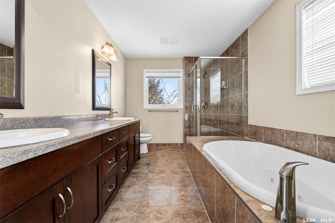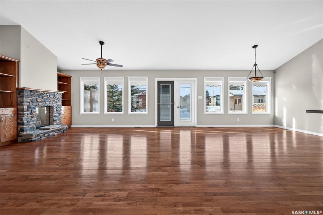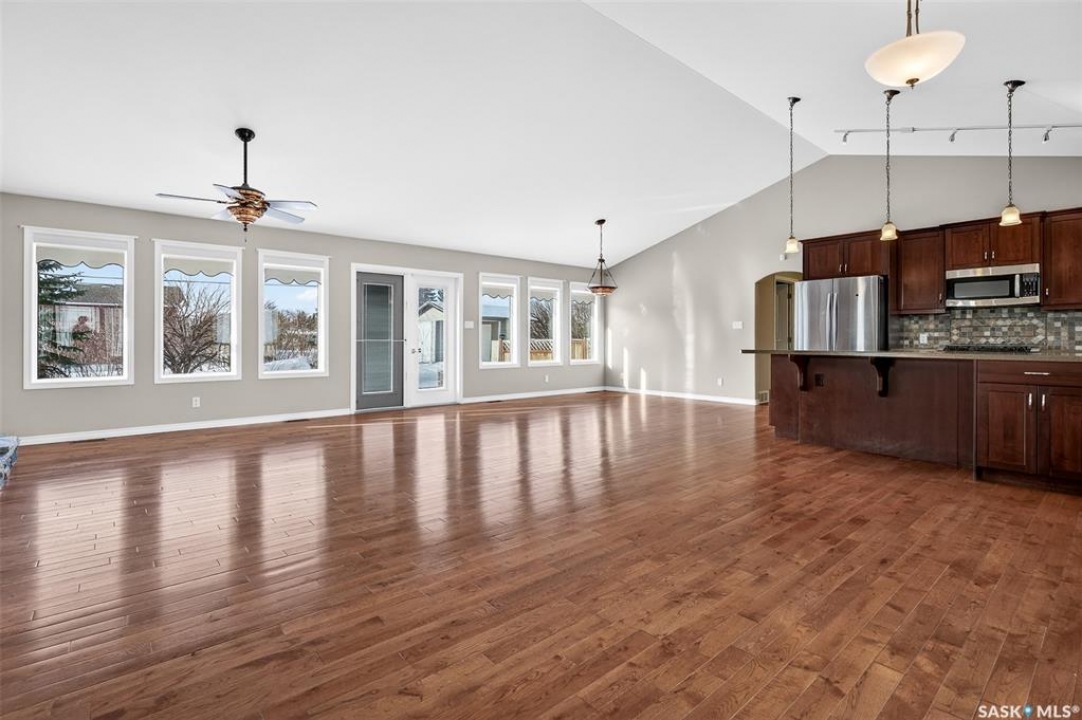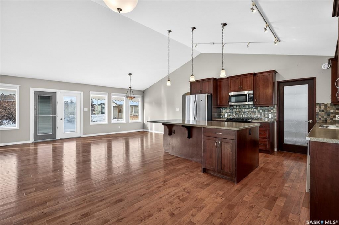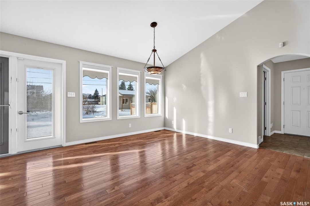 Welcome to country living on the edge of the Village of Mortlach! This home is East facing with a sunrise view of pasture & open fields from your front veranda while you sip your morning coffee! This spacious Bungalow sits on a large lot & just feels like “home”. The main Living Area is open concept & is anchored with a gas fireplace on one wall & stunning Kitchen at the opposite end. The Kitchen is well appointed with ample cabinetry, large island, gas range & a walk-in Pantry (noted in room sizes as “other”). The space allows room for a formal Dining Area along the wall of windows & space for a breakfast nook overlooking the front deck. At one end of the main floor is the Primary Suite with garden doors to separate deck, a walk-in closet & Ensuite with separate shower, jetted tub & heated floors. At the opposite end of the home, you will find a Mudroom with 2 pc Bath & Laundry adjacent to the attached heated double Garage (man doors at 2 sides for easy access to a fenced area perfect for dog run). The lower level is finished with options for more living space with a Family Room, 2 Bedrooms, 4 pc Bath & 3 other rooms that could be utilized as office, craft/hobby space, home gym or whatever suits your needs best! You will love the in-floor heat in basement & garage! Outside is a shed that would work well for a potting shed or playhouse! Come discover what this home has to offer along with the amenities the Village of Mortlach provides including K-12 school (steps away!), post office, rink, spray park & golf course along with small town hospitality!
