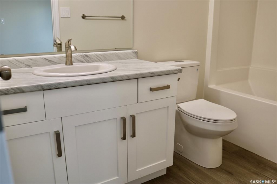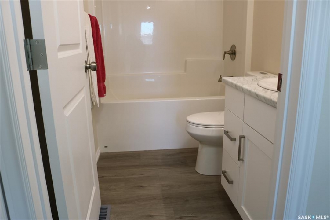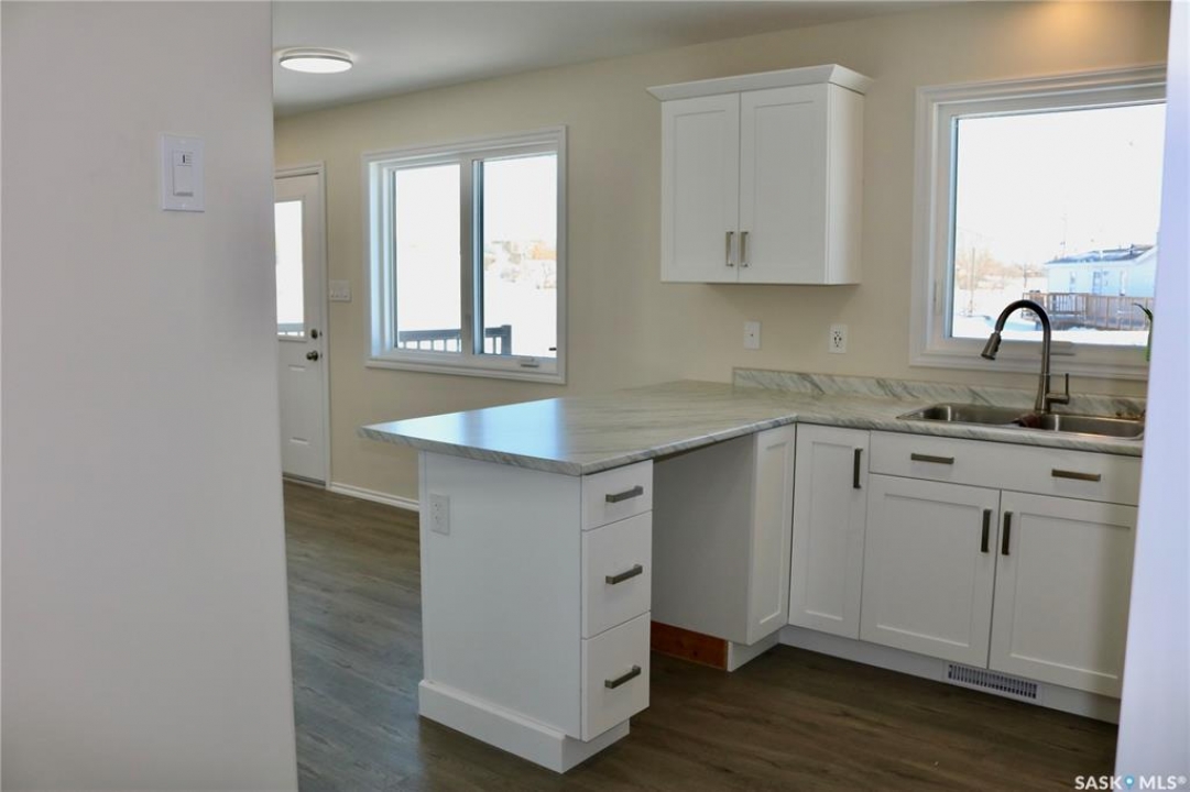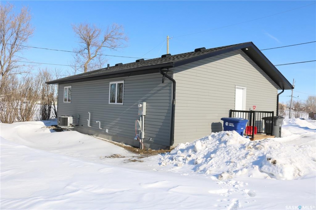 A great find! This brand NEW home in Wapella on a half acre lot is ready for you! Quality construction built by Deneschuk Homes. A thoughtful floor plan has everything you need on one level. Come in through the front door and be wowed by all the space that is flooded with natural light. Large living room, dining area and crisp white kitchen flow together for a very open feel. Main floor laundry is set up for a stacking unit and linen storage in the hallway. The primary bedroom has a beautiful ensuite and walk in closet. The second bedroom is the same size with a great closet, and the main bathroom is perfect with fixtures that match the ensuite. Vinyl plank flooring and matching cabinetry/countertops throughout give a cohesive feel. The crawlspace foundation is well insulated and houses the utility area. 200 amp electrical panel. Outside is a beautiful yard with mature trees and lots of room for a garden, additional parking, and space to enjoy. Designed with a future garage in mind on the south end. This is your chance to have a brand new home without the headaches of construction and the long wait! Contact your agent to view!