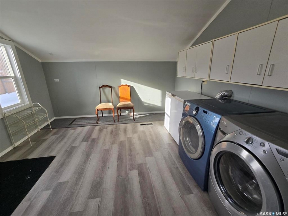 806 Pheasant Street, Grenfell ... a great starter home for a family. Located in the heart of a progressive town not far from all the amenities and 2 schools. A solid home with recent paint and flooring and is vacant and ready for a New Beginning. Could this property be for you? With 3 bedrooms on the second floor and a spacious 4 piece bath , and a 1/2 bath located on the main level , it provides great living and sleeping space in a combined total of 1018 sq ft. The back entry is sunny and bright , a huge area for all your storage needs and main floor laundry. Enter the basement from here to find a small area , partially finished to use as desired. Step into the "Galley Style " kitchen with fresh classic white cabinets. Dining room has a built in cabinet and the living room has lots of natural light filtering in. Assets to include: 100 amp panel, most vinyl windows replaced, new flooring, painted neutral upstairs and down, fenced yard for your furry friends, power vent water heater, NG HE furnace, Shingles are newer and back shed has been painted. STARTER comfortable home and all it really needs is YOU!