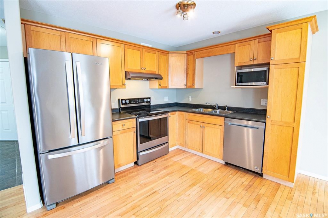Welcome to Harrington Townhomes — an impeccably maintained, cozy retreat nestled within the highly sought-after Crescent Acres community. This elegant three-level Townhouse blends modern comfort with refined living, offering 3 bedrooms, 3 bathrooms, and thoughtfully designed spaces throughout. Step inside through the spacious foyer with sleek coat cupboard , where direct access to the attached garage adds everyday convenience. The main floor opens into a bright, open-concept living, dining, and kitchen area, ideal for both entertaining and relaxed evenings at home. From here, step out onto your private deck, perfect for summer barbecues and quiet morning coffee. Upstairs, you'll find three generous bedrooms, including a serene primary retreat, along with a spacious 4-piece bathroom, dedicated laundry, and a well-organized linen closet. The fully developed lower level offers a large recreation room—a versatile space for movie nights, a home gym, or a stylish lounge—along with a neatly finished utility room and an additional 3-piece bathroom. Located in one of Prince Albert's most desirable school zones, Crescent Acres offers an exceptional lifestyle with access to the community club featuring tennis and pickleball courts, baseball diamonds, basketball, a hockey rink, and the scenic Rotary Trail for peaceful evening walks. A rare chance to embrace low-maintenance, yet affordable sophisticated living within a dynamic, family-oriented community. (Some photos are virtually staged)