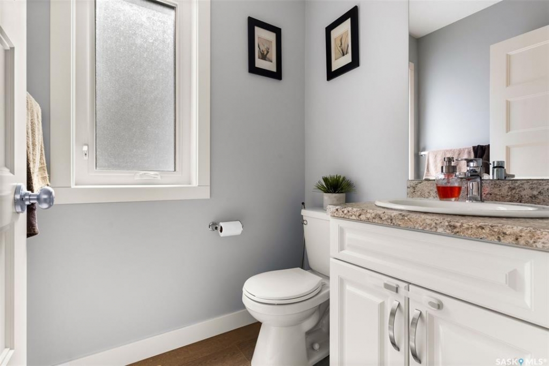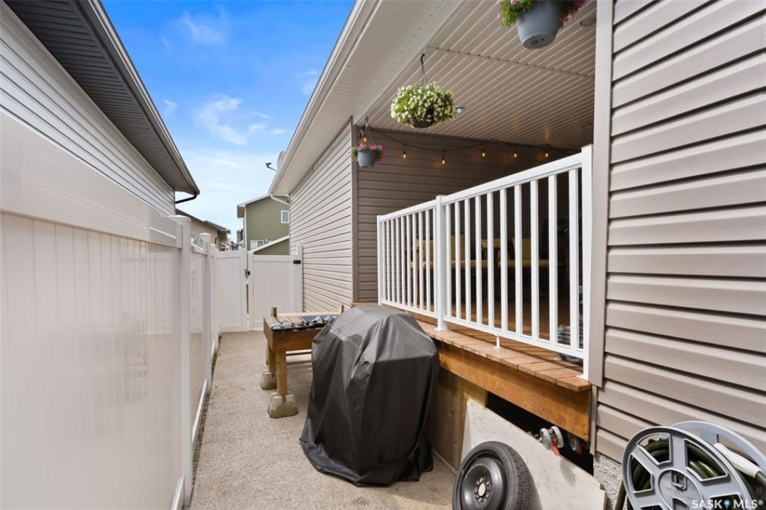 Welcome to 5113 Crane Crescent, a beautifully maintained two-storey home located in the heart of Harbour Landing—one of Regina's most vibrant and family-friendly communities. Offering 1,454 sq ft of thoughtfully designed living space, this home exudes pride of ownership with a bright, stylish, and highly functional layout perfect for modern living. The main floor showcases rich laminate flooring, a welcoming living room with a custom built-in TV nook, and front-facing windows that fill the space with warm natural light. A convenient 2-piece powder room adds everyday practicality. The dining area is ideal for entertaining and flows seamlessly into a crisp white kitchen featuring stainless steel appliances, tile backsplash, walk-in pantry, and an abundance of cabinetry for storage. A valuable upgrade to this home is the added side entrance, providing excellent flexibility for future development potential or enhanced privacy and accessibility. Upstairs, you'll find three comfortable bedrooms, including a spacious primary suite complete with a walk-in closet and 4-piece ensuite, along with a full main bath and the convenience of second-floor laundry. The fully developed basement expands your living space with a cozy recreation room, a fourth bedroom, and an additional 4-piece bathroom—perfect for guests, teens, or extended family. Step outside to enjoy a private covered deck, creating the perfect outdoor retreat for relaxing or hosting. A double attached garage completes this exceptional property. Ideally situated near parks, walking paths, schools, and all south-end amenities, this home offers the perfect blend of comfort, style, and location in sought-after Harbour Landing.