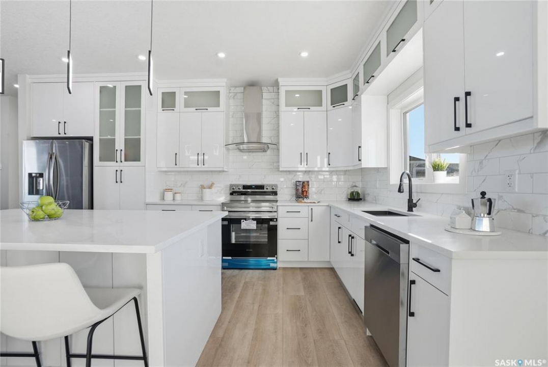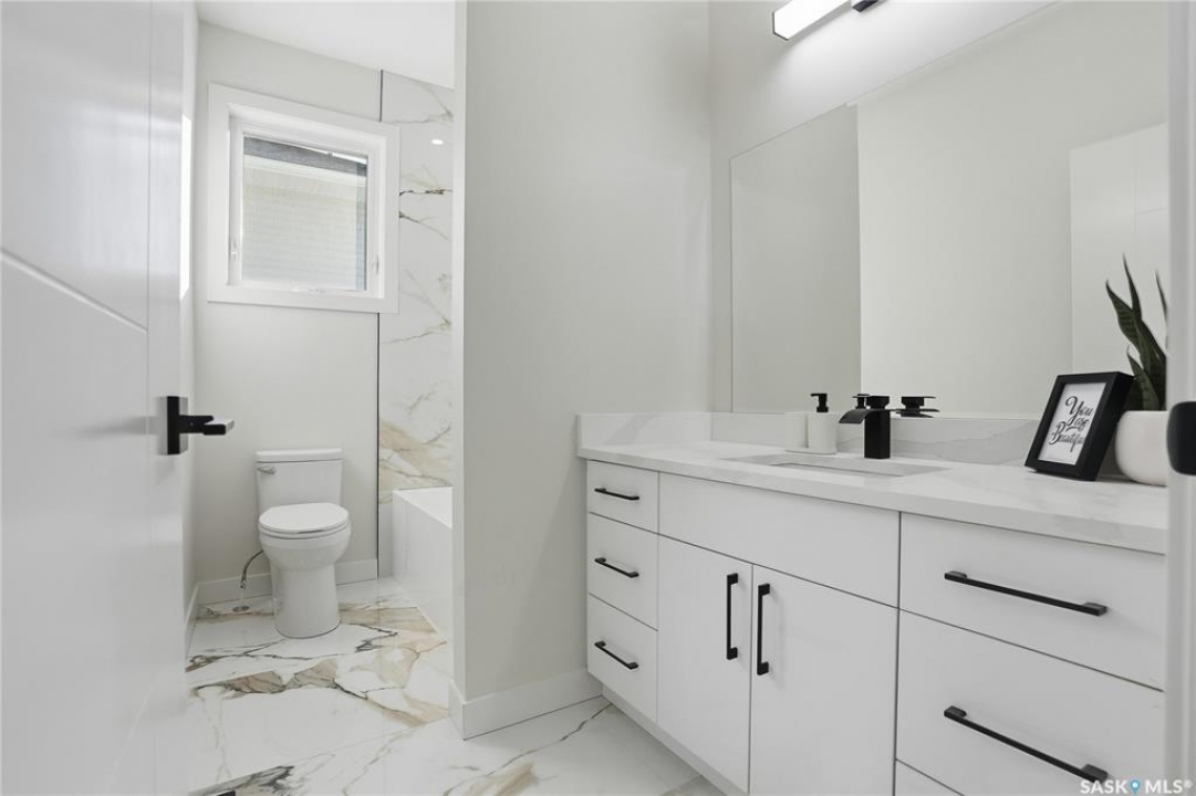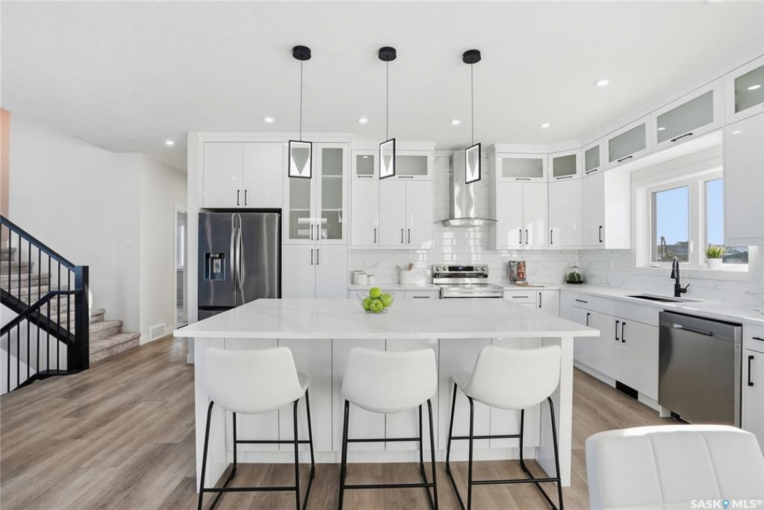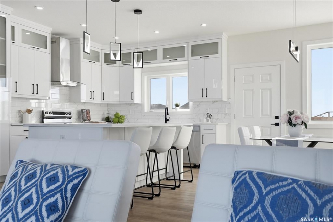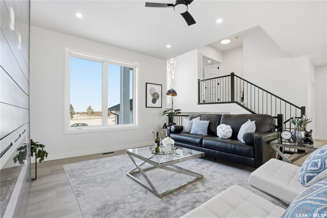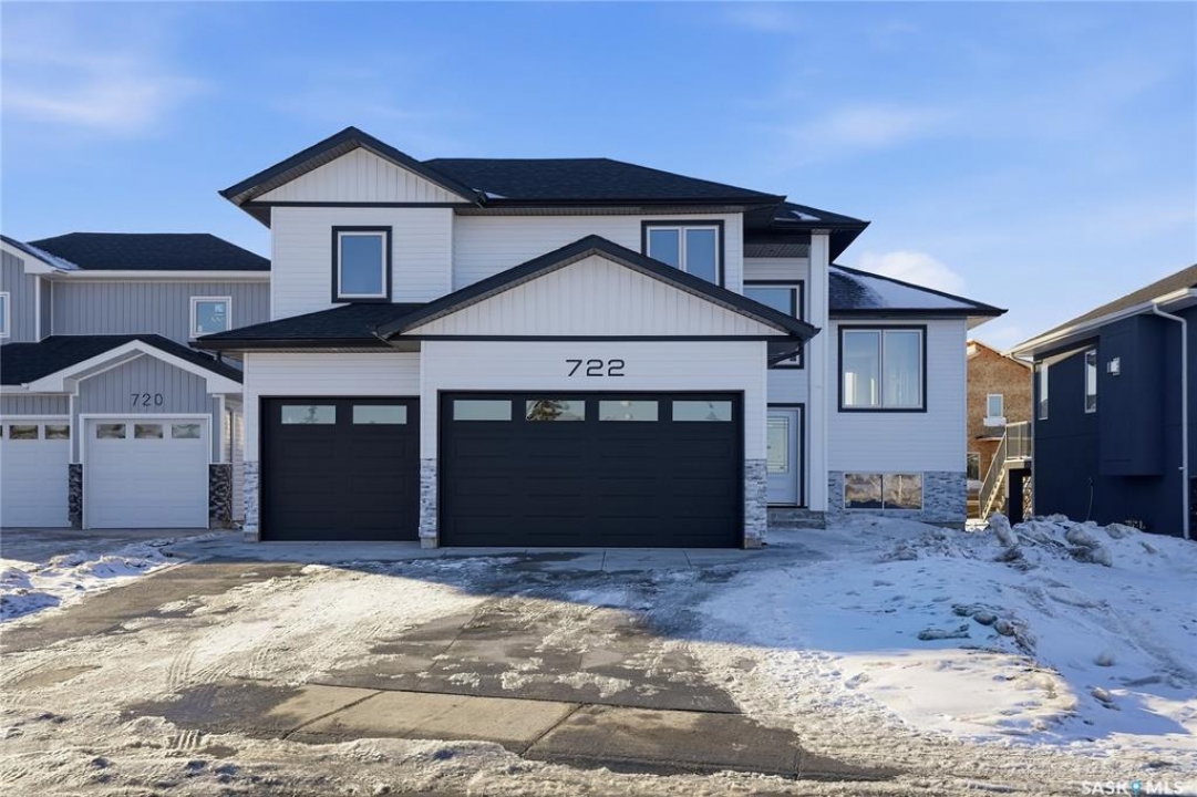 Welcome to this brand new 1,737 sq. ft. modified bi-level located at 722 Weir Crescent, perfectly positioned with views of The Legends Golf Course. This thoughtfully designed home offers 3 bedrooms and 2 bathrooms, along with a heated, insulated, and drywalled oversized triple attached garage and concrete triple driveway — ideal for additional parking, storage, or workspace. Upon entering, you're welcomed by a tiled front entry complete with a convenient coat closet. Head upstairs to the main living area, finished in luxury vinyl plank flooring throughout. The spacious living room is highlighted by large east-facing windows that bring in an abundance of natural light, along with an electric fireplace featuring a shiplap surround. The kitchen is equipped with high-gloss cabinetry, quartz countertops, a hood fan, and stainless steel appliances, offering both modern design and functionality. Large quartz island with hidden storage and bar stool space. Two spacious bedrooms are located on the main floor, along with a 4-piece bathroom complete with a tiled tub/shower surround and Delta fixtures. Finishing the main floor is the convenient placed laundry room. The oversized primary bedroom offers a private retreat with large windows with views of the Legends golf course. Complete with a walk-in closet and a beautifully finished 5-piece tiled ensuite featuring a soaker tub, stand-up shower with sliding glass doors, and dual vanities. The basement is currently unfinished and open for future development, allowing for customization to suit your needs. The builder is available to complete basement development — contact for pricing and options. Exterior features include central air conditioning and a rear deck finished with aluminum railing (no steps) and Duradek, overlooking the large backyard with convenient back alley access. GST & PST included in the purchase price and backed by New Home Warranty.