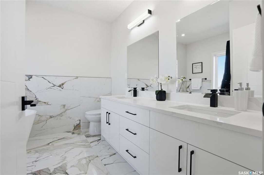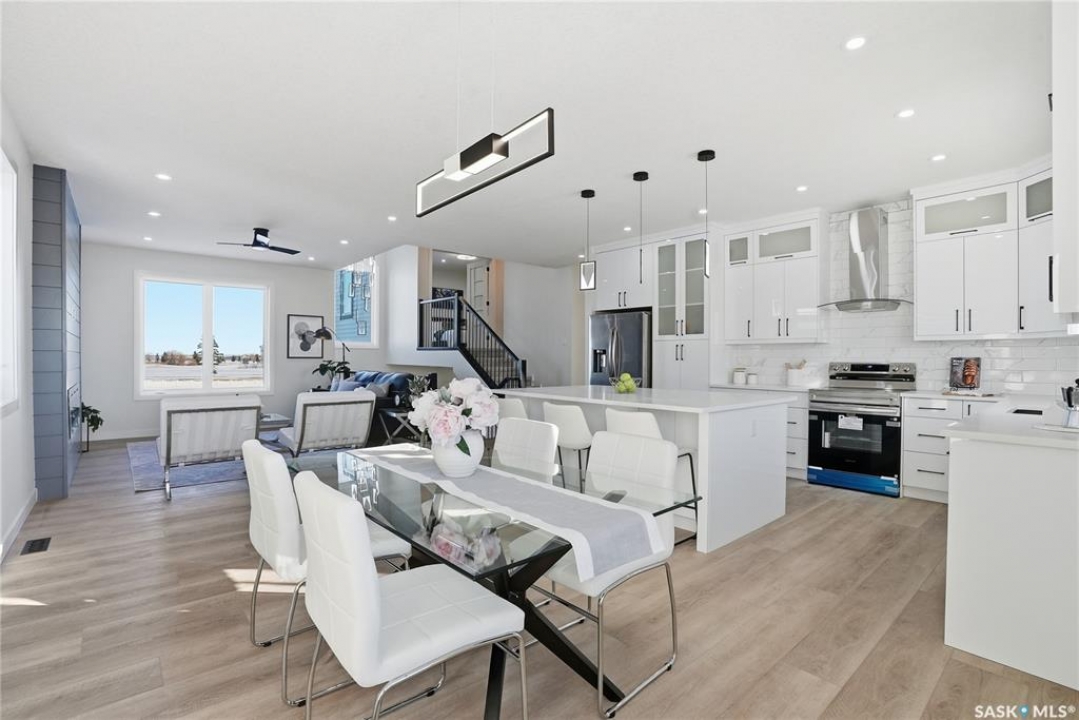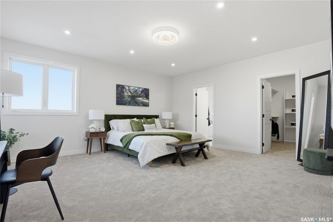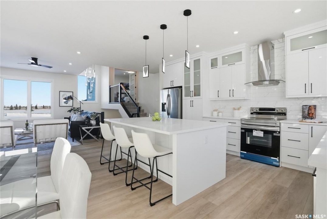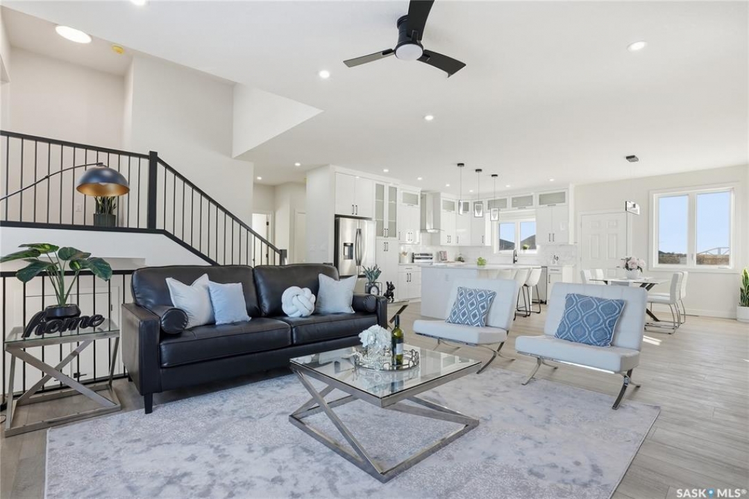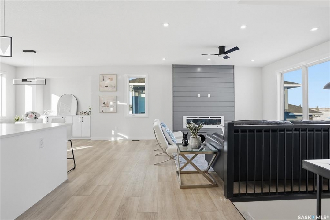 Welcome to this brand new 1,737 sq. ft. modified bi-level located at 722 Weir Crescent, perfectly positioned with views of The Legends Golf Course. This thoughtfully designed home offers 3 bedrooms and 2 bathrooms, along with a heated, insulated, and drywalled oversized triple attached garage and concrete triple driveway — ideal for additional parking, storage, or workspace. Upon entering, you're welcomed by a tiled front entry complete with a convenient coat closet. Head upstairs to the main living area, finished in luxury vinyl plank flooring throughout. The spacious living room is highlighted by large east-facing windows that bring in an abundance of natural light, along with an electric fireplace featuring a shiplap surround. The kitchen is equipped with high-gloss cabinetry, quartz countertops, a hood fan, and stainless steel appliances, offering both modern design and functionality. Large quartz island with hidden storage and bar stool space. Two spacious bedrooms are located on the main floor, along with a 4-piece bathroom complete with a tiled tub/shower surround and Delta fixtures. Finishing the main floor is the convenient placed laundry room. The oversized primary bedroom offers a private retreat with large windows with views of the Legends golf course. Complete with a walk-in closet and a beautifully finished 5-piece tiled ensuite featuring a soaker tub, stand-up shower with sliding glass doors, and dual vanities. The basement is currently unfinished and open for future development, allowing for customization to suit your needs. The builder is available to complete basement development — contact for pricing and options. Exterior features include central air conditioning and a rear deck finished with aluminum railing (no steps) and Duradek, overlooking the large backyard with convenient back alley access. GST & PST included in the purchase price and backed by New Home Warranty.