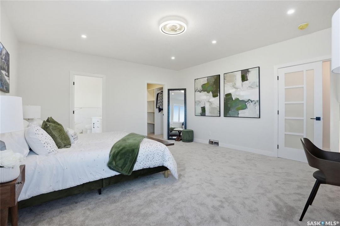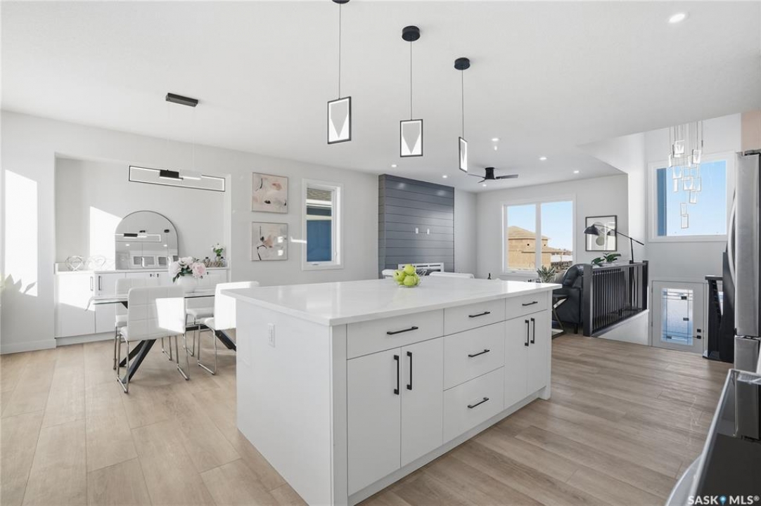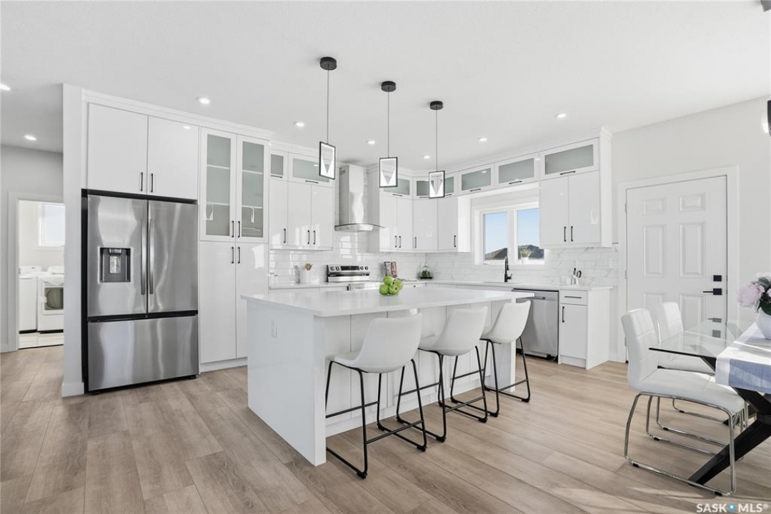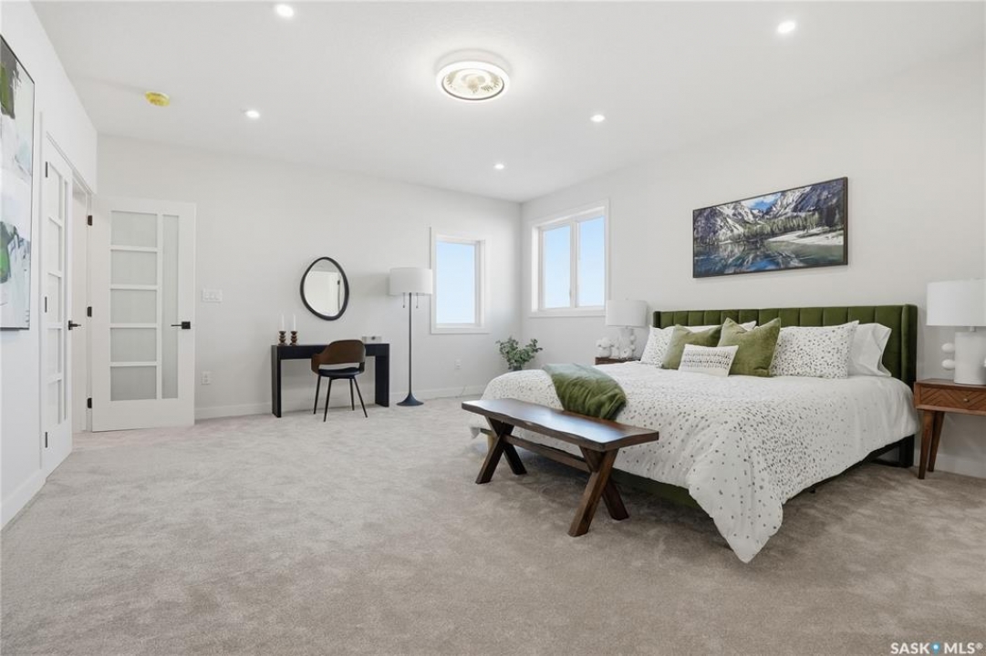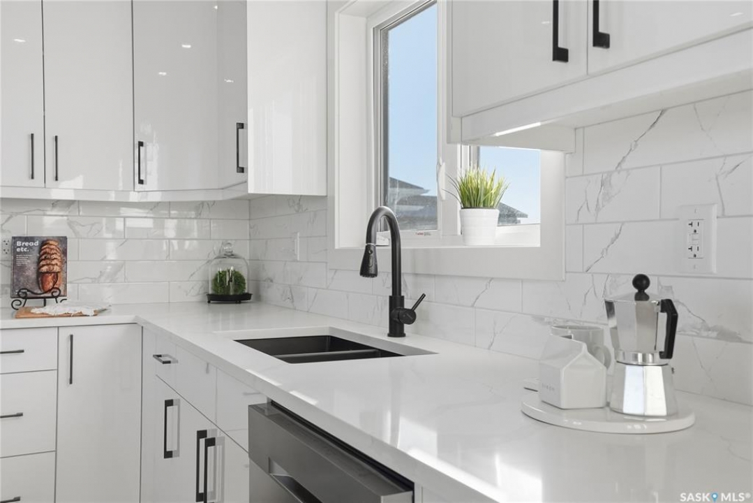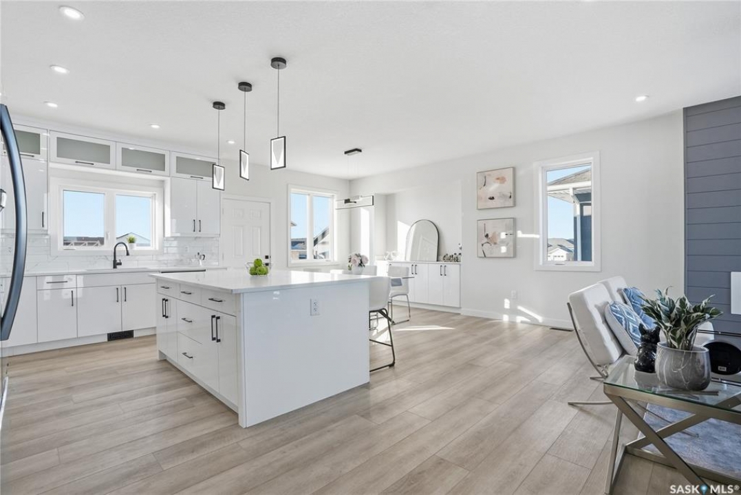 Welcome to this brand new 1,737 sq. ft. modified bi-level located at 722 Weir Crescent, perfectly positioned with views of The Legends Golf Course. This thoughtfully designed home offers 3 bedrooms and 2 bathrooms, along with a heated, insulated, and drywalled oversized triple attached garage and concrete triple driveway — ideal for additional parking, storage, or workspace. Upon entering, you're welcomed by a tiled front entry complete with a convenient coat closet. Head upstairs to the main living area, finished in luxury vinyl plank flooring throughout. The spacious living room is highlighted by large east-facing windows that bring in an abundance of natural light, along with an electric fireplace featuring a shiplap surround. The kitchen is equipped with high-gloss cabinetry, quartz countertops, a hood fan, and stainless steel appliances, offering both modern design and functionality. Large quartz island with hidden storage and bar stool space. Two spacious bedrooms are located on the main floor, along with a 4-piece bathroom complete with a tiled tub/shower surround and Delta fixtures. Finishing the main floor is the convenient placed laundry room. The oversized primary bedroom offers a private retreat with large windows with views of the Legends golf course. Complete with a walk-in closet and a beautifully finished 5-piece tiled ensuite featuring a soaker tub, stand-up shower with sliding glass doors, and dual vanities. The basement is currently unfinished and open for future development, allowing for customization to suit your needs. The builder is available to complete basement development — contact for pricing and options. Exterior features include central air conditioning and a rear deck finished with aluminum railing (no steps) and Duradek, overlooking the large backyard with convenient back alley access. GST & PST included in the purchase price and backed by New Home Warranty.