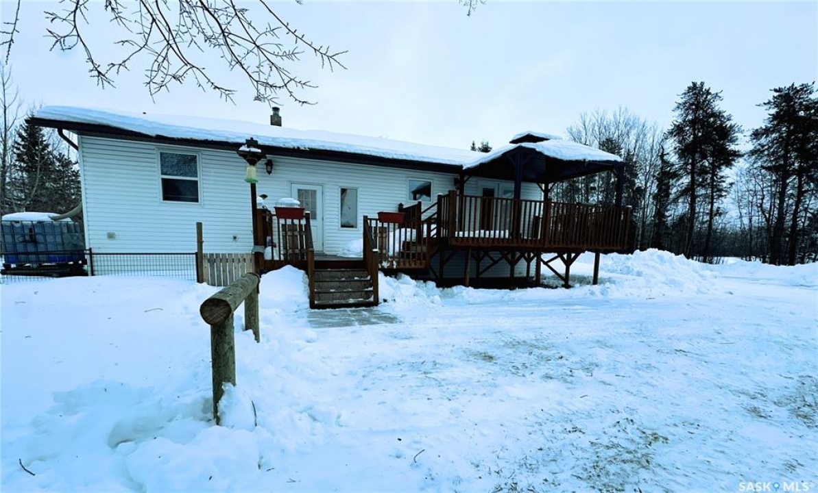 If a turn-key home, wide open skies, horses in the pasture and Northern Saskatchewan adventure are calling your name, this 159.14-acre acreage delivers the lifestyle to match. The 1,288 sq ft home is warm, welcoming and thoughtfully updated. A bright and spacious living room offers plenty of natural light and room to gather, while the adjoining kitchen and dining area create a comfortable, functional heart of the home. The dining area has garden doors that open to a new gazebo covered deck to extend your summertime dining area... or to enjoy happy-hour at the end of a busy day. Three main floor bedrooms, including a well-sized primary, provide practical family living, complemented by a full 4-piece bath and convenient 2-piece bath right off the back door. Downstairs, the expansive family room gives you flexibility for entertaining, games, movie nights or a cozy retreat after a long day outdoors. An additional bedroom, den, laundry area, utility and ample storage complete the lower level. Recent updates include fresh paint & flooring throughout the main floor, floor painted in basement, updated bathrooms, closets, updated shingles, garage build in 2023, windows, baseboards re-installed and a new air conditioner - offering both modern comfort and peace of mind. The home is squeaky clean, refreshed and truly move-in ready! Outdoors helps make this property truly shine. Designed with equestrian lovers in mind, you'll find a large barn with fenced areas, 95 acres of hay land to support any furry loved ones, a spacious, heated and insulated shop, newer garage with lean-to and multiple outbuildings for storage and flexibility. With 159.14 acres, there is room to ride, roam and grow. Conveniently located just minutes from the Candle Lake turnoff, Tobin Lake and the gateway to Northern Saskatchewan's lakes, this property offers the perfect blend of rural functionality and outdoor lifestyle. Space, comfort and freedom - all in one remarkable setting.