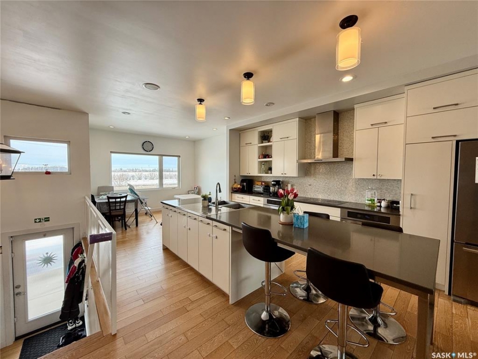 Welcome to 926 Wilkins Court Saskatoon SK, this 1,365 sq ft bi-level with open concept floor plan.The entryway is large and inviting and leads to the double attached and heated garage. large foyer welcomes you in, the kitchen with quartz countertops with large prep island, tile backsplash, crisp white cabinets and upgraded stainless appliances including an induction cooktop, convection/speed microwave, warming drawer, convection wall oven, built-in dishwasher, and fridge. The primary bedroom with big walk in closet with built-in organizers and ensuite bath with a tile shower and added storage. An additional in the hallway for your computer. Basement with family room with a gas fireplace west facing windows, laundry room with cabinetry and laundry sink. Two additional bedrooms, a 4 piece bathroom, and plenty of storage complete the space. Outside is fully landscaped and ready for you to enjoy! Upgrades include solid core doors, pacific white oak hardwood floors, heated bathroom tile floors, sound system throughout, and 9' ceilings upstairs and down.