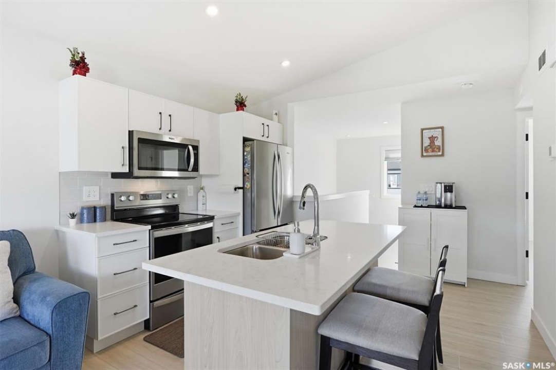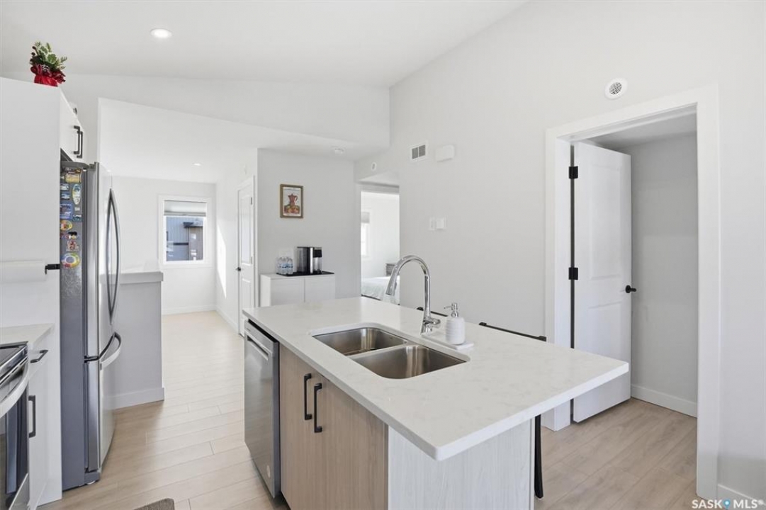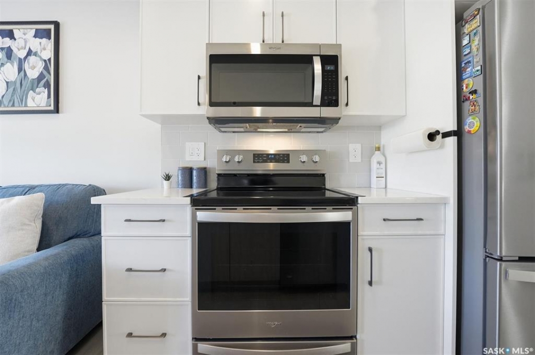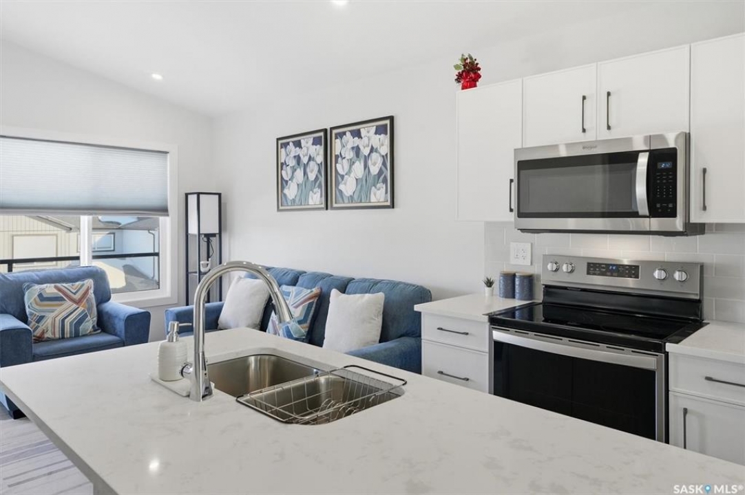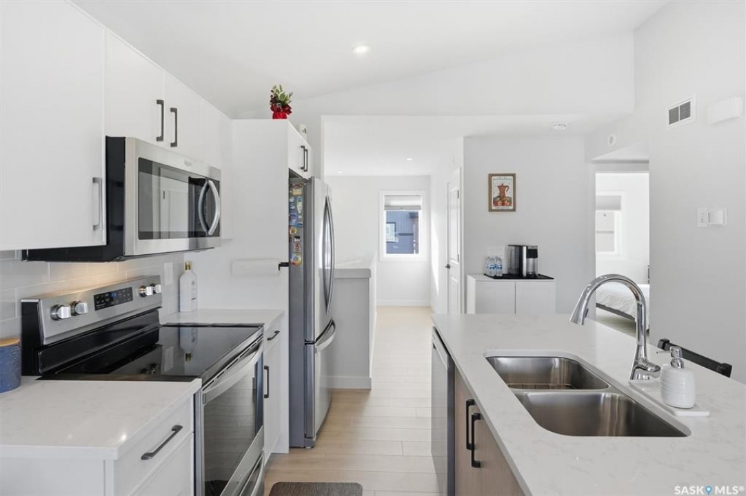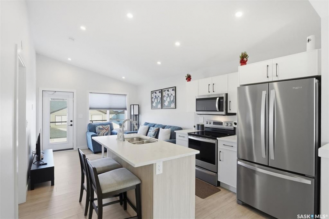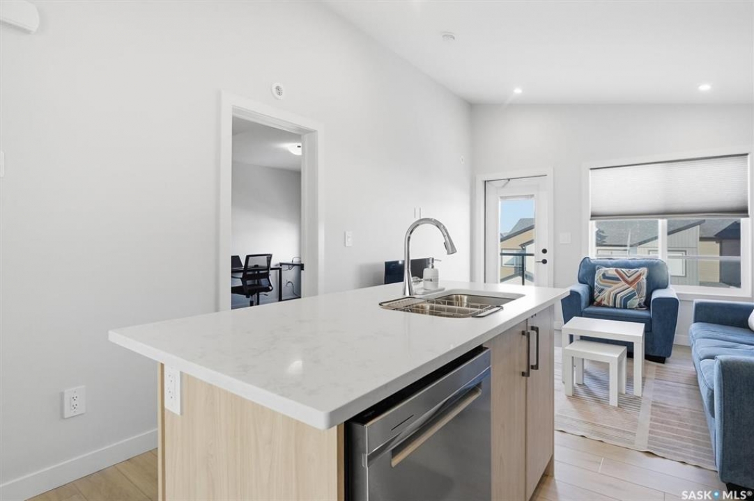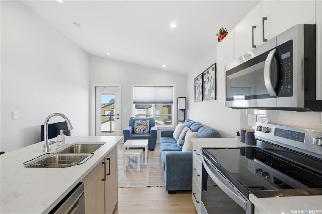 Exceptional 2 bedroom townhouse located at the "North Ridge Towns Dubois" community in Brighton! This 1011 square foot home with single attached garage is in show like condition and has been meticulously kept from top to bottom complete with many stylish finishes including vinyl plank flooring throughout the living spaces! This top floor condo has an open concept design that includes a gorgeous kitchen, a spacious living room, 2 good sized bedrooms, laundry, storage, and a full 4-pce bath. With vaulted ceilings and natural light welcoming you first thing in the morning and into the evening, this home provides a bright and airy feel any time of the day. All construction was complete in 2025 at the North Ridge Towns Dubois project providing a peaceful surrounding for you to enjoy. Located directly across the street from Brighton Core Park, this prime location is only a few minute walk to trails, splash park, playground, sports fields, and future school. Includes kitchen appliances, washer and dryer, central air conditioning, and all window coverings. Call to view!