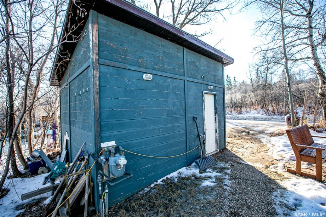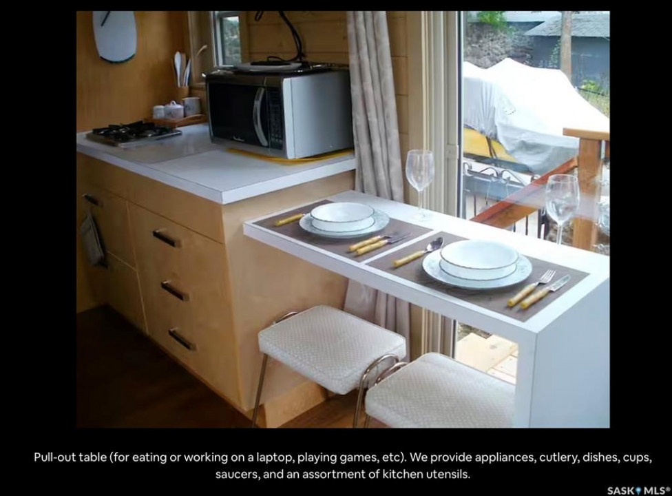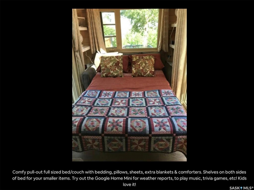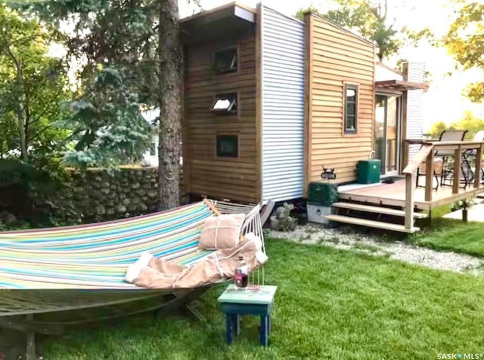 Unique opportunity for a four season lake property located on a quiet crescent with natural gas, plus a custom built "Tiny Home" for additional rental income. Main home includes functional kitchen. Living-room with patio doors to deck. Three bedrooms, updated four piece bath and sun room which is currently setup as a dining area. Seller states exterior was redone with 1.5" styrofoam insulation. Natural gas fireplace, plus supplemental electric heaters. Wood fireplace in primary bedroom. Newer garage. Crawlspace has been spray foamed. DragonFly Tiny House This accessory building was completely permitted by the Township and placed on the property in mid-June 2018. It is completely self-contained with propane heater, a propane cook top, 3-way fridge (runs on propane, 12V or 110V power), kitchen sink, hot water heater (electric 3 gallon), and three-piece bathroom with full shower. It has a pull out couch and a loft area (sleeps 3 adults very comfortably). The DragonFly Tiny House was designed by renowned architect, John Robinson of Robinson Residential in Regina. It is built with SIP panels, that provide an R40 insulation rating. It is 159 sq. ft. with ample windows and skylights and main deck area. The tiny house was outfitted with Nest Temperature Sensors, motion sensor light, key lock box and all smart house light switches (that can be remote controlled).
