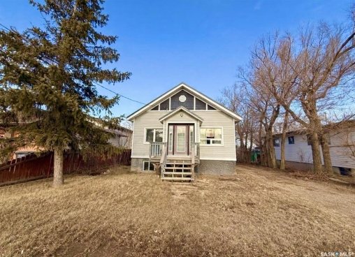 This 1929 raised bungalow with a basement suite offers a great opportunity for homeowners or investors looking for flexibility and income potential. Live on the main floor while the lower suite helps offset your mortgage, or add this property to your investment portfolio. In past years, the home has seen several important updates, including metal roofing and siding, PVC windows, mechanical improvements, and (seller states) an updated ICF basement, adding durability and efficiency. The main level features an open-concept living, dining, and kitchen area with updated cabinetry, granite countertops, refrigerator, gas stove, dishwasher, and durable vinyl tile flooring through much of the space. There are two bedrooms plus an updated four-piece bathroom with convenient in-bath laundry. The lower-level suite offers good natural light with large windows and an open layout. It includes an updated kitchen with granite countertops, stainless steel appliances, vinyl flooring, a den, a three-piece bathroom, plus an energy-efficient furnace (less than 10 years old) and newer hot water heater. Situated on a generous 52.5' x 197' lot, the property also features a detached 16' x 18.5' shed, ideal for storage, hobbies, or workshop use. Located directly across from the Herbert Integrated Health Facility and close to local amenities including a skating rink, shopping, and everyday services, this property offers affordable small-town living with practical upside. Great potential, key updates, and income possibilities — a smart buy in a welcoming community.