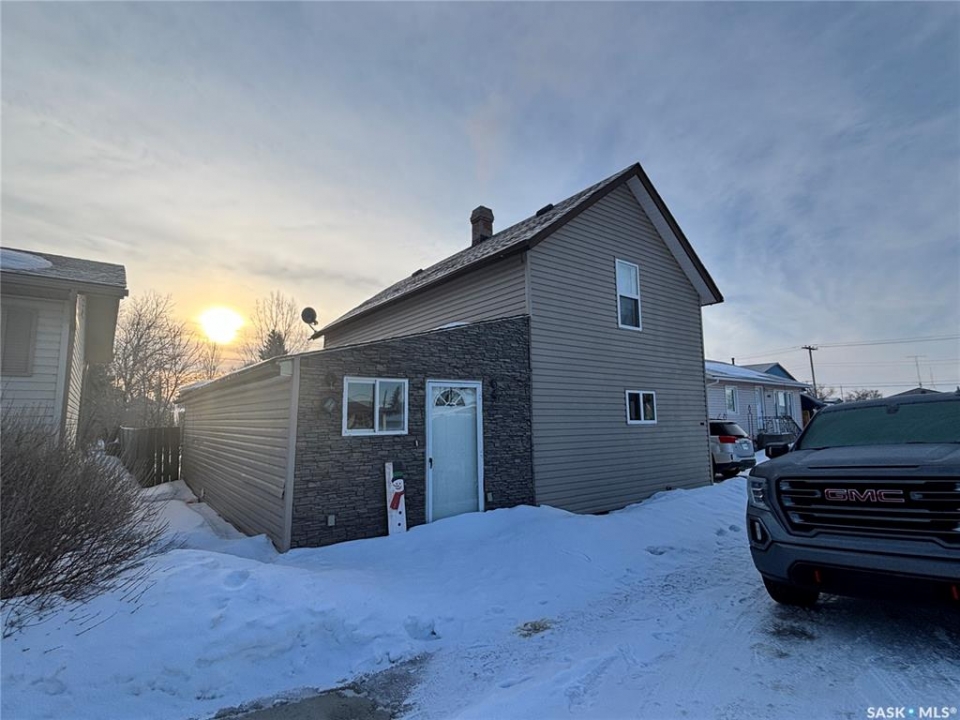 Charming character meets modern convenience in this beautifully updated 1 �-storey home located in the welcoming community of Bruno. Originally built in 1910, this property has seen numerous upgrades inside and out, including a fully refreshed exterior with updated windows, offering peace of mind while preserving timeless appeal. Set on a generous 50 × 132 lot, the home features a newer constructed 23 × 26 detached garage complete with a large overhead door, full insulation, and a 220-volt plug—perfect for hobbyists, storage, or year-round parking. The spacious backyard provides plenty of room to relax, garden, or entertain. Inside, you'll find a bright open-concept kitchen and dining area highlighted by newer cabinetry and sleek stainless steel appliances. The inviting living room overlooks the backyard and connects conveniently to the primary bedroom. A full 4-piece bathroom along with a large mudroom and laundry area complete the functional main floor layout. Upstairs offers two additional spacious bedrooms plus an oversized storage room or walk-in closet for added flexibility. The basement houses mechanical equipment and provides excellent storage space. Enjoy small-town living with easy access to nearby amenities—just 20 minutes to Humboldt and 45 minutes to Saskatoon—making this location ideal for commuters seeking quiet surroundings with convenient highway travel. A wonderful opportunity to own a move-in-ready home full of character, updates, and practical features in a peaceful Saskatchewan community.