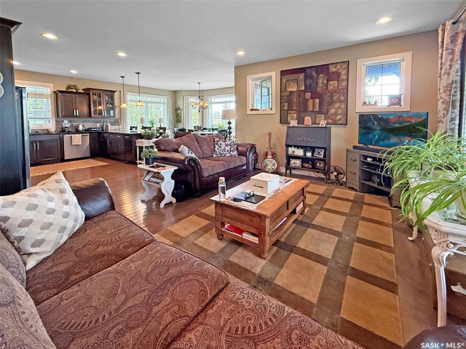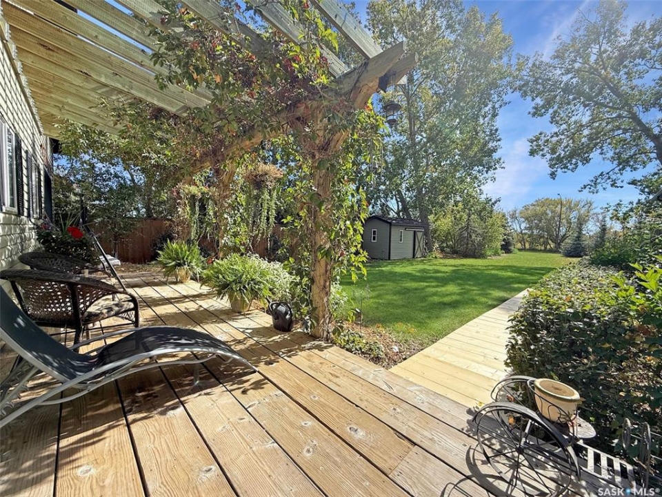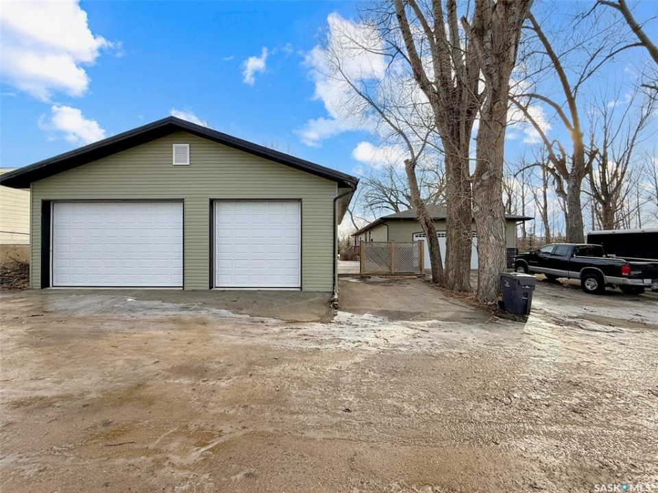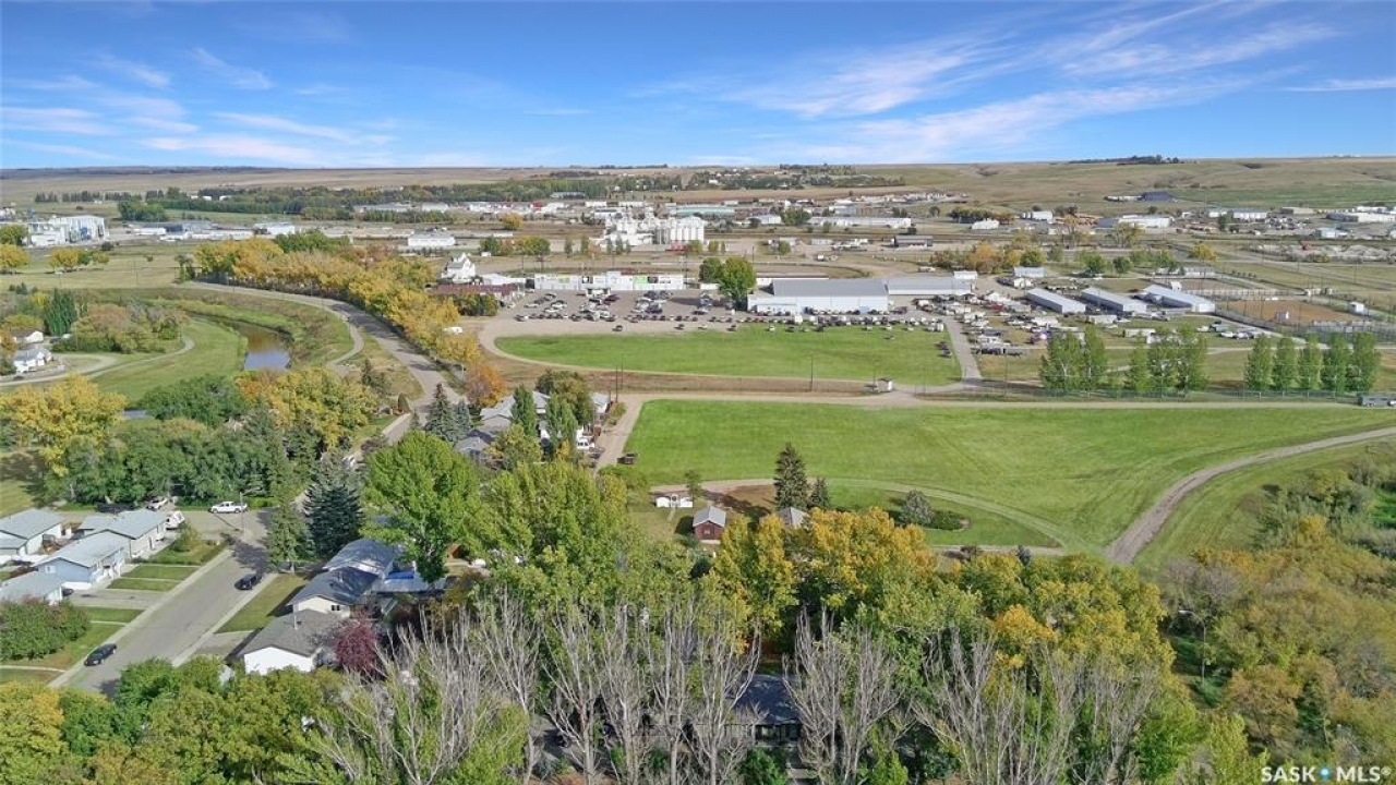 Set on four city lots at the edge of Swift Current, this exceptional custom-built bungalow delivers the privacy and “acreage-in-the-city” feel you've been dreaming of—without sacrificing proximity to amenities. Tucked into a mature shelter belt and overlooking the creek and open field beyond, the setting is tranquil and secluded, yet you're just steps to walking paths, tennis courts, and minutes to downtown. Spanning 1,709 sq. ft., this luxurious home was designed by a contractor as their primary residence, with quality evident throughout. Inside, 9' ceilings, oversized windows, hardwood flooring, and pot lights create an elevated, airy atmosphere. The kitchen is a standout—granite countertops, an inviting sit-up island, and bright east-facing windows make it as functional as it is beautiful: truly a kitchen “for her.” The dining area is wrapped in windows with serene yard views, flowing seamlessly into the spacious living room. You'll also appreciate the main-floor laundry, plus a discreet 2-piece powder room. Three main-floor bedrooms include a generous primary suite, with a walk-in closet and ensuite. The second main floor bedroom also houses a walk-in closet and en suite, both rooms enhanced with added insulation for exceptional privacy. Downstairs offers a large flex space ideal for a gym or games area, a spacious family room, two additional bedrooms with large windows, and a full bath with tiled walk-in shower.For him, the parking and shop space are simply unmatched: a 26' x 26' heated, insulated attached garage and an incredible 30' x 50' heated shop (2014) with 7-vehicle capacity, 12' ceilings, tinned interior, washroom, kitchenette/man-cave. Outdoors, enjoy sitting areas on three sides, two substantially covered decks, underground sprinklers, additional asphalt parking, and peace of mind with optimal grading—raised above regulation. Subdivision potential into two lots adds even more value to this rare offering. Call to request the detailed information pkg