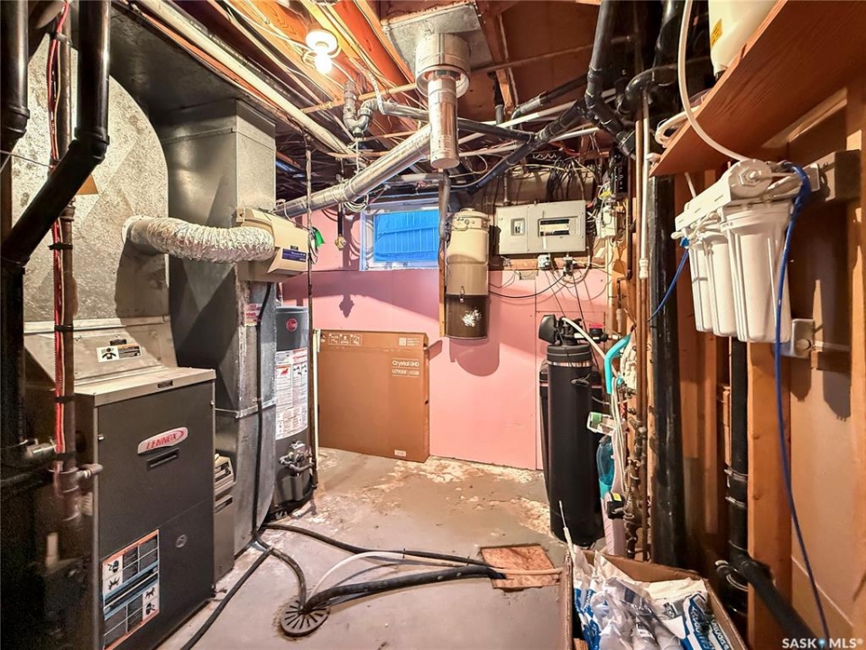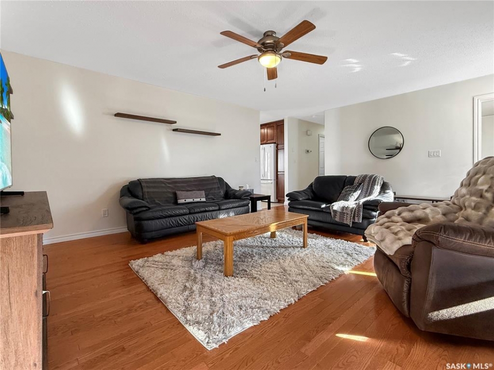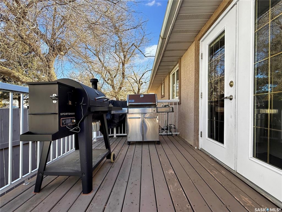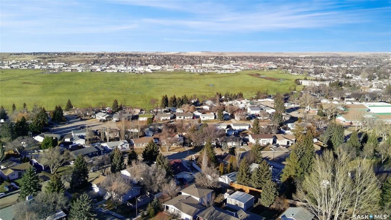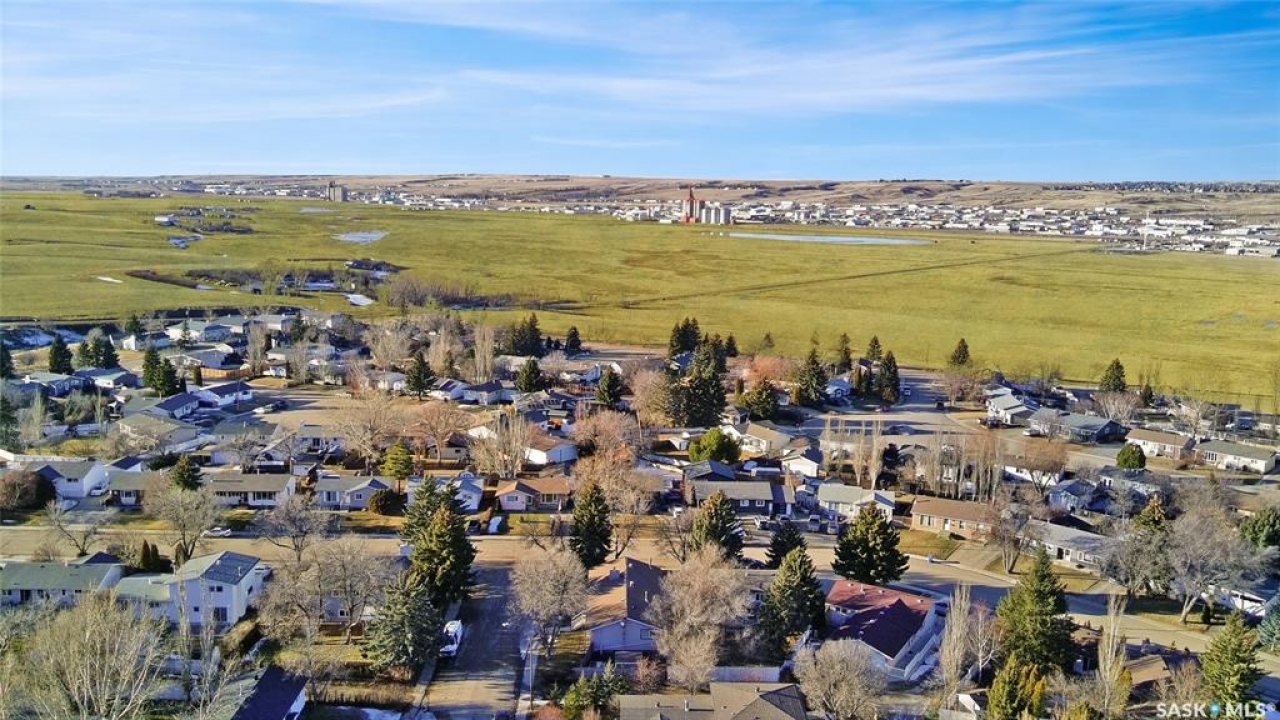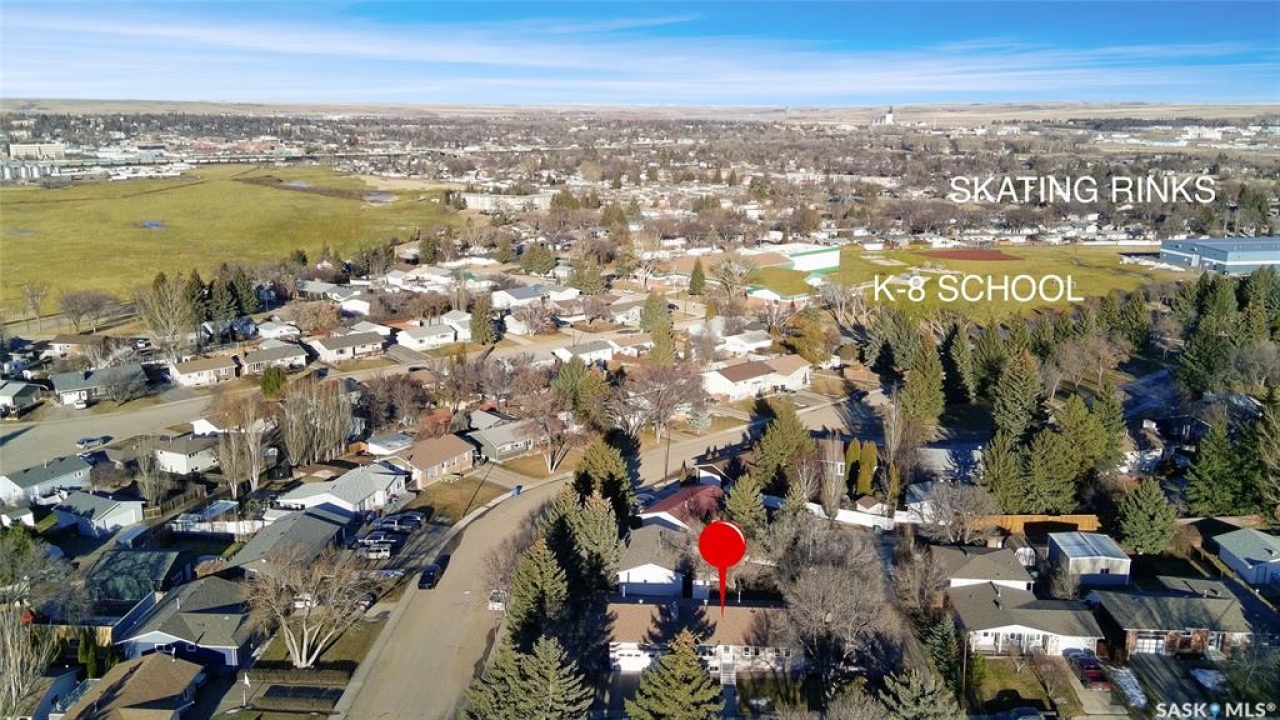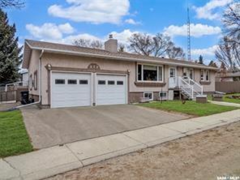 Welcome to Swift Current's desirable Southwest—an established neighbourhood known for its parks, mature trees, indoor skating rinks, swimming pool, nearby grocery store and schools. Tucked into the corner of a quiet cul-de-sac, this spacious bungalow sits on an impressive lot with RV parking, garden space, and exceptional outdoor living, including deck and lower patio conveniently located off the dining area. An oversized, heated attached double garage adds everyday comfort and practicality. Inside, the updated kitchen is both functional and inviting, featuring ample cabinetry, generous counter space, updated backsplash, lighting, and fixtures, plus room for a dining table. Enjoy a clear view of the backyard and direct access to the main-floor laundry. The main level is completed by three well-sized bedrooms (or two bedrooms and a home office), including the primary suite with a 3-piece ensuite, along with a 4-piece main bathroom. Downstairs, a chair lift offers added accessibility and leads to a wide-open family room with plenty of space for entertaining. A large fourth bedroom and a renovated bathroom complete the lower level. Recent updates include refreshed flooring and improvements in the mechanical room, with an energy-efficient furnace, reverse osmosis system, water heater (2020), central air and water softener. Additional highlights include PVC windows on the main floor with vertical blinds, hardwood flooring, updated paint, a well-maintained deck, fully fenced yard, and multiple planter boxes. Meticulously cared for and move-in ready. Call today for more information or to book your personal viewing!