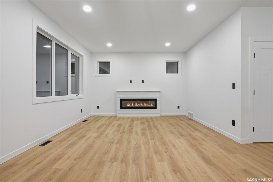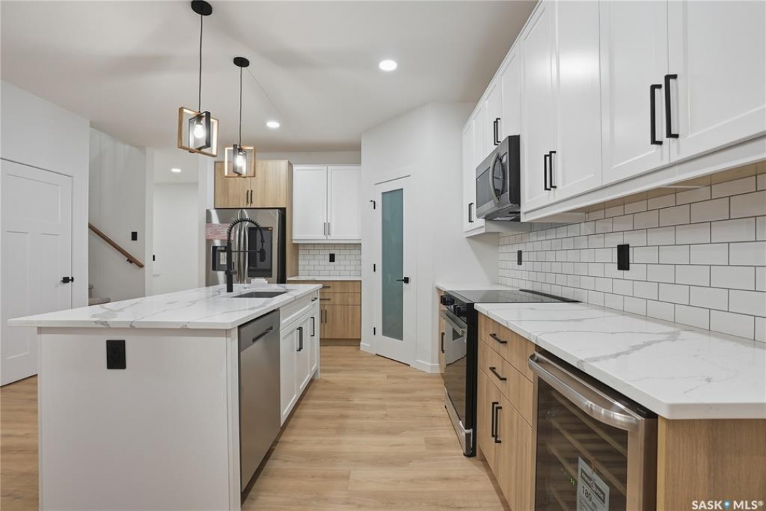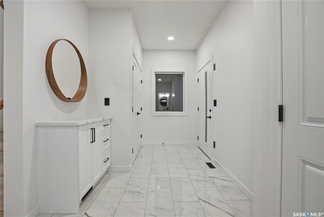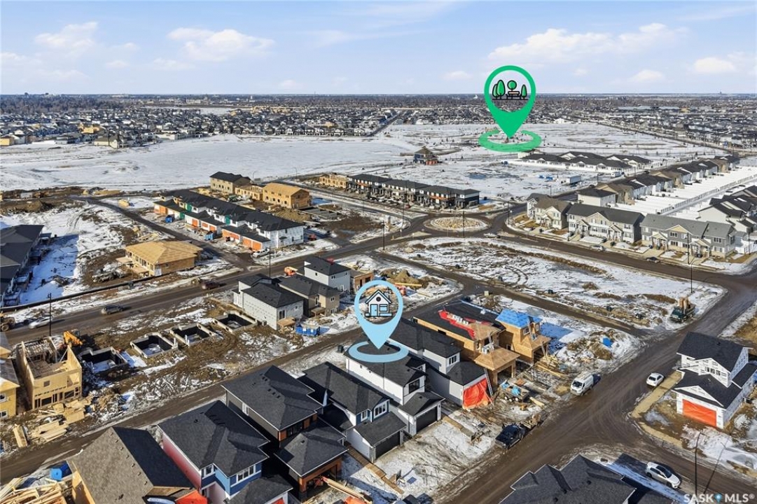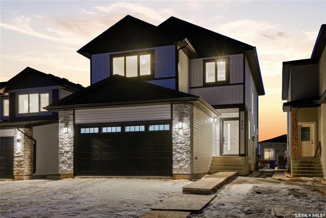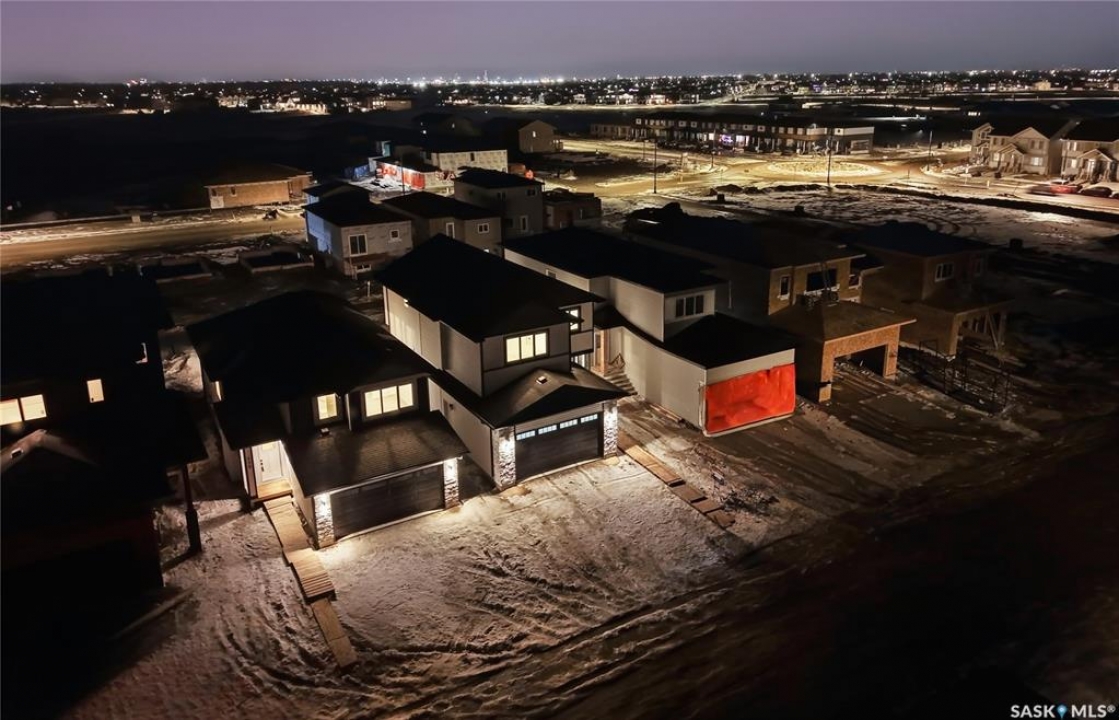 Welcome to refined living in the prestigious community of Brighton, one of Saskatoon's most desirable and architecturally stunning neighbourhoods. This impeccably crafted 1,875 square foot executive two-storey home offers sophisticated design, premium finishes, and exceptional investment potential. The main level features an elegant open-concept layout anchored by a striking contemporary fireplace and a designer-inspired chef's kitchen, complete with quartz countertops, upgraded stainless steel appliances, and a built-in beverage fridge — perfect for entertaining. Upstairs, you'll find a spacious bonus room, three beautifully appointed bedrooms, and a spa-inspired primary retreat featuring a luxurious five-piece ensuite with dual vanities, a walk-in glass shower, and a deep soaker tub. The double attached garage, concrete driveway, finished front landscaping, and private side entrance to the lower level elevate both convenience and long-term value. With the potential for a legal two-bedroom suite and eligibility for the Saskatchewan Secondary Suite Incentive, this home offers incredible income opportunity. Luxury. Functionality. Investment potential. This is elevated living in Brighton. Book your private tour today. GST/PST included in the purchase price with the rebate to builder.