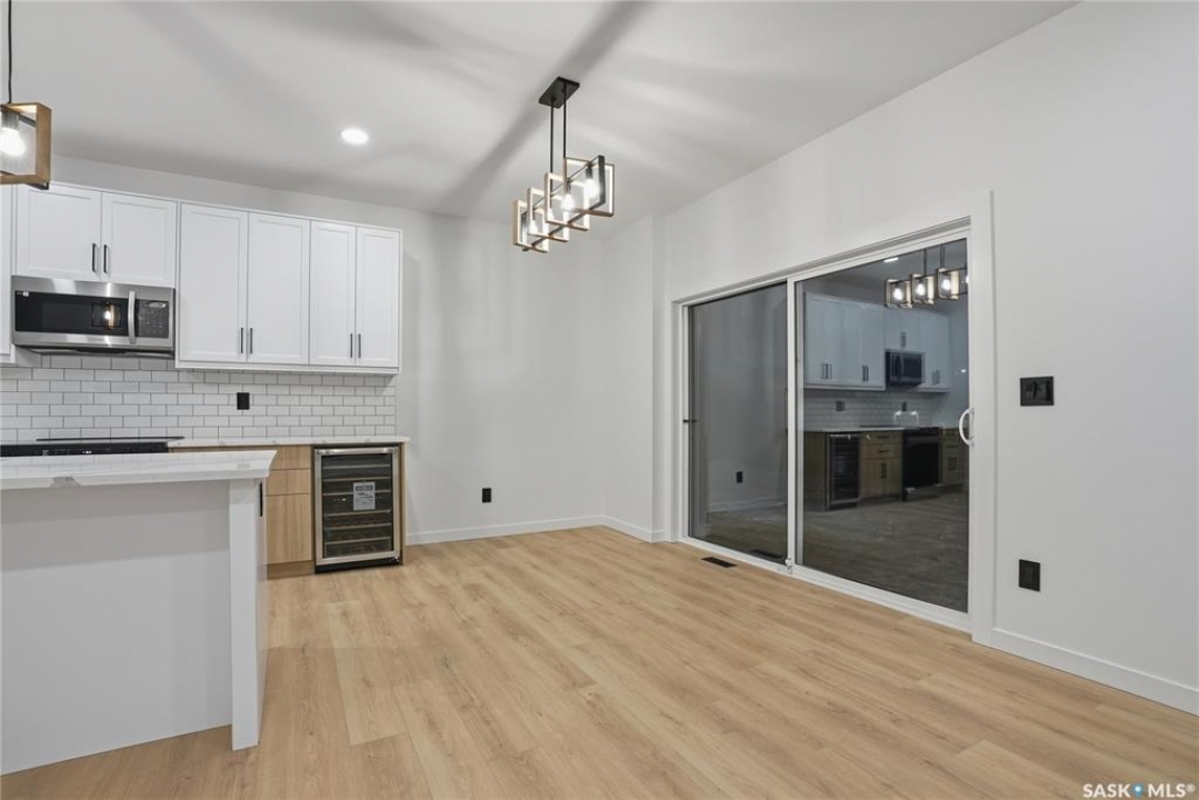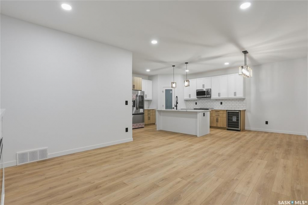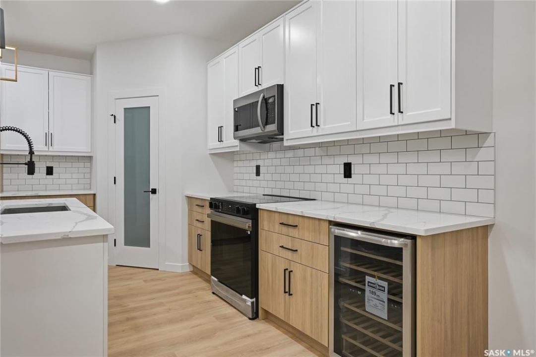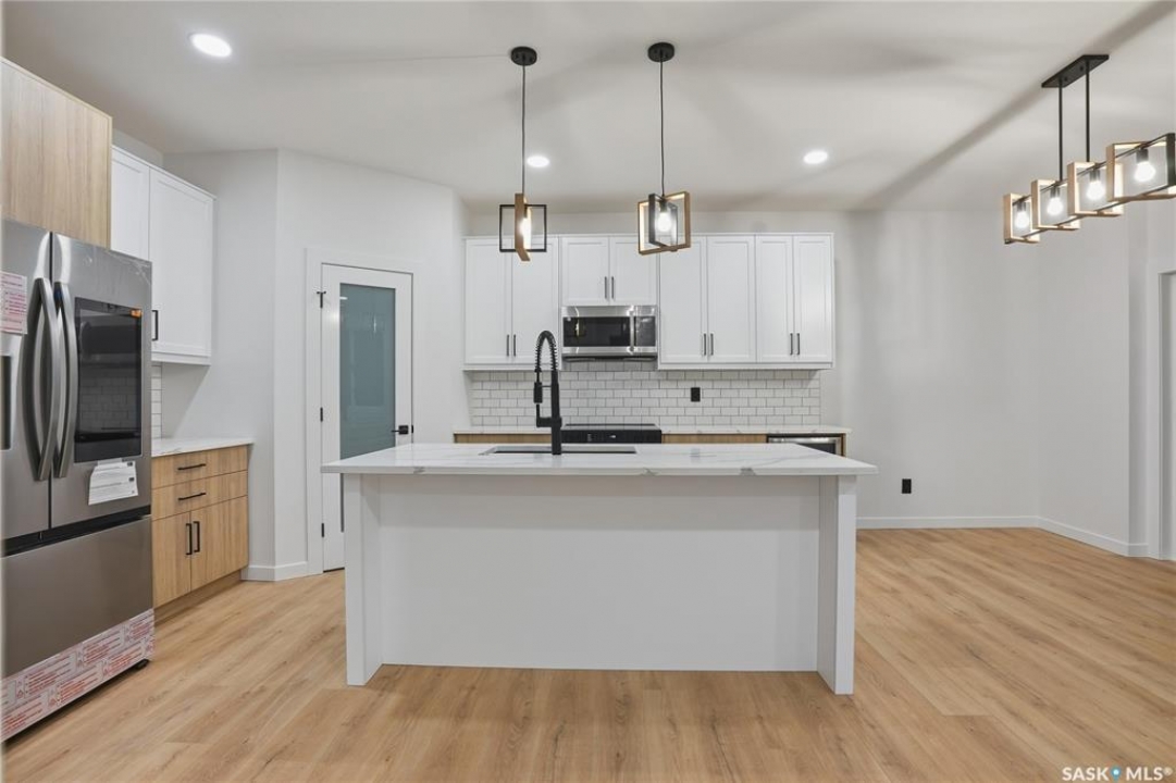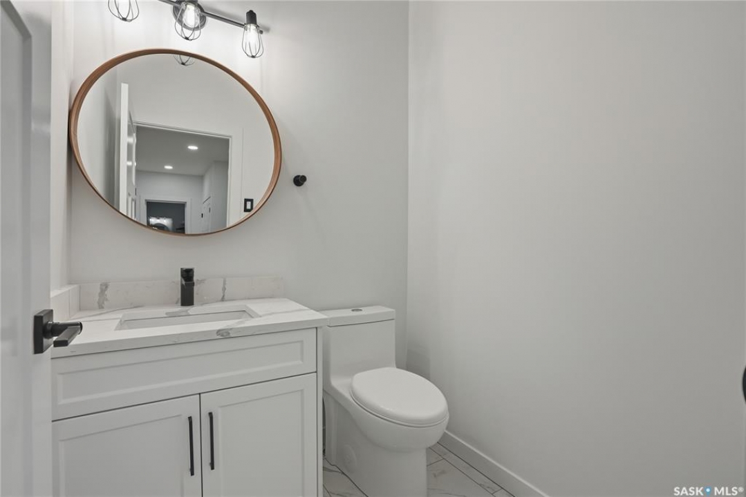 Welcome to refined living in the prestigious community of Brighton, one of Saskatoon's most desirable and architecturally stunning neighbourhoods. This impeccably crafted 1,875 square foot executive two-storey home offers sophisticated design, premium finishes, and exceptional investment potential. The main level features an elegant open-concept layout anchored by a striking contemporary fireplace and a designer-inspired chef's kitchen, complete with quartz countertops, upgraded stainless steel appliances, and a built-in beverage fridge — perfect for entertaining. Upstairs, you'll find a spacious bonus room, three beautifully appointed bedrooms, and a spa-inspired primary retreat featuring a luxurious five-piece ensuite with dual vanities, a walk-in glass shower, and a deep soaker tub. The double attached garage, concrete driveway, finished front landscaping, and private side entrance to the lower level elevate both convenience and long-term value. With the potential for a legal two-bedroom suite and eligibility for the Saskatchewan Secondary Suite Incentive, this home offers incredible income opportunity. Luxury. Functionality. Investment potential. This is elevated living in Brighton. Book your private tour today. GST/PST included in the purchase price with the rebate to builder.