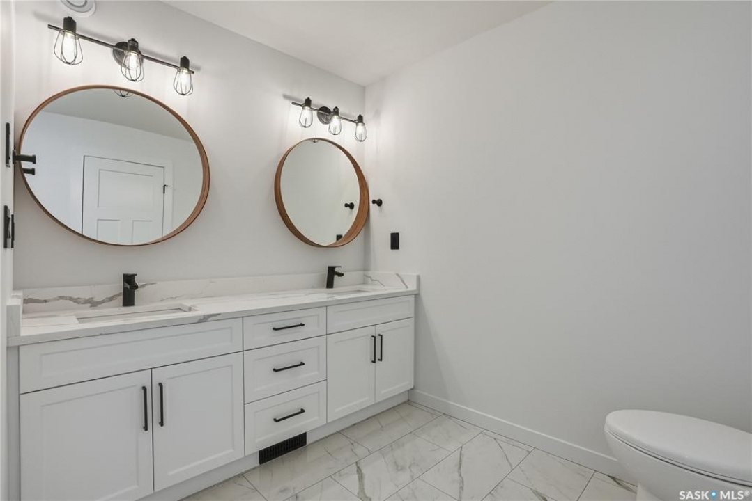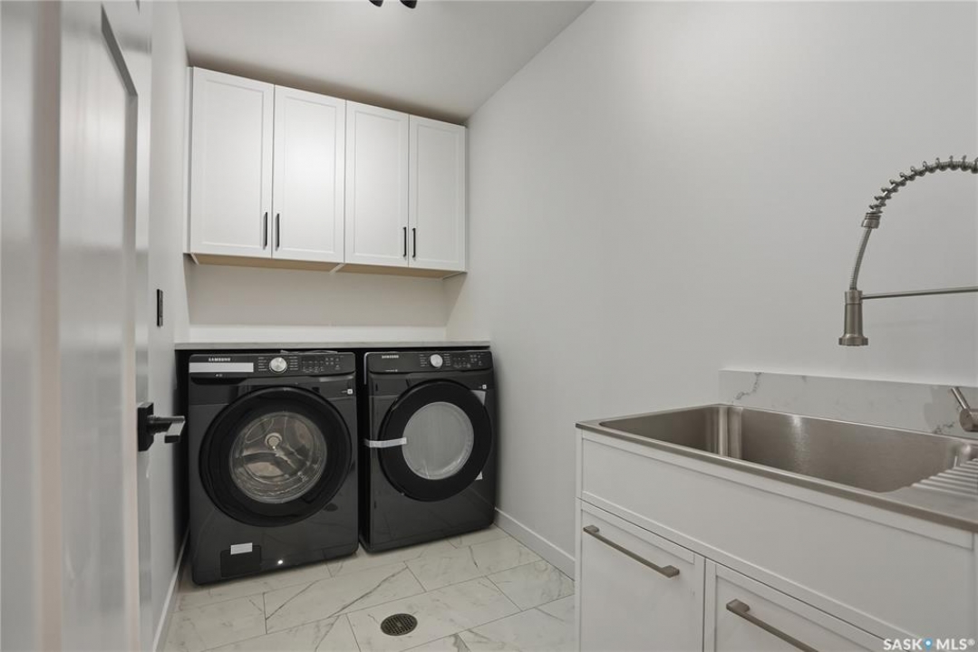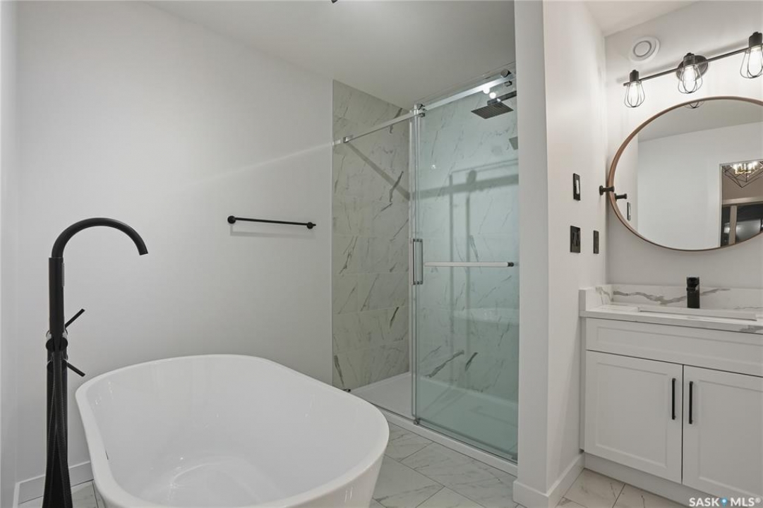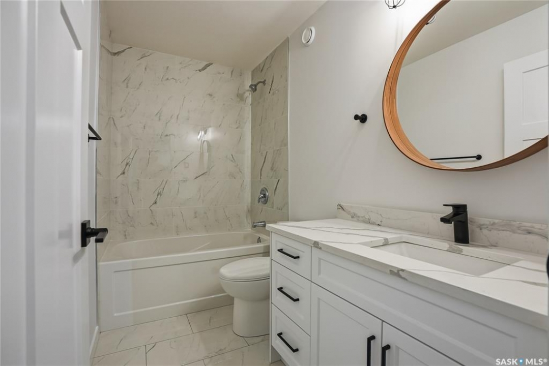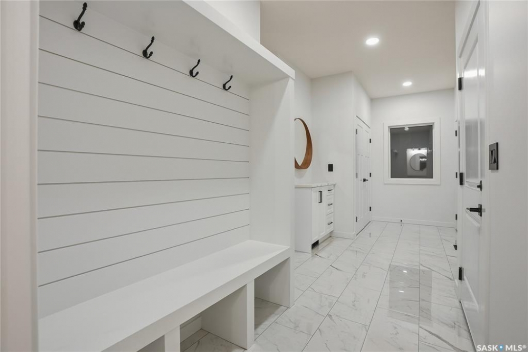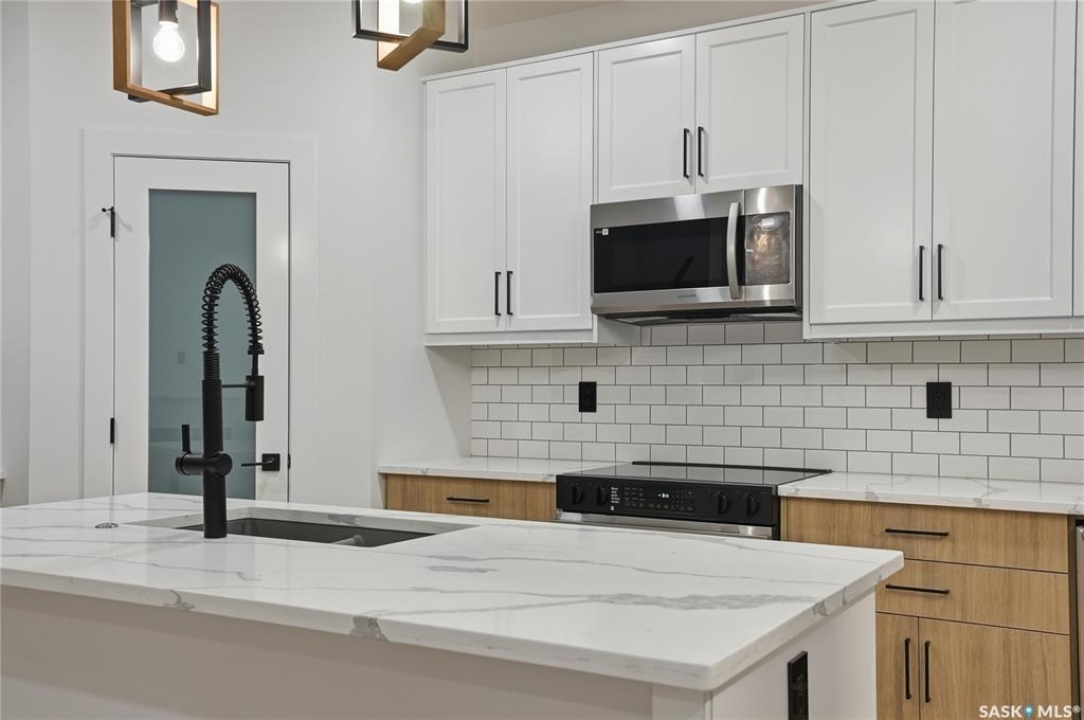 Welcome to refined living in the prestigious community of Brighton, one of Saskatoon's most desirable and architecturally stunning neighbourhoods. This impeccably crafted 1,875 square foot executive two-storey home offers sophisticated design, premium finishes, and exceptional investment potential. The main level features an elegant open-concept layout anchored by a striking contemporary fireplace and a designer-inspired chef's kitchen, complete with quartz countertops, upgraded stainless steel appliances, and a built-in beverage fridge — perfect for entertaining. Upstairs, you'll find a spacious bonus room, three beautifully appointed bedrooms, and a spa-inspired primary retreat featuring a luxurious five-piece ensuite with dual vanities, a walk-in glass shower, and a deep soaker tub. The double attached garage, concrete driveway, finished front landscaping, and private side entrance to the lower level elevate both convenience and long-term value. With the potential for a legal two-bedroom suite and eligibility for the Saskatchewan Secondary Suite Incentive, this home offers incredible income opportunity. Luxury. Functionality. Investment potential. This is elevated living in Brighton. Book your private tour today. GST/PST included in the purchase price with the rebate to builder.